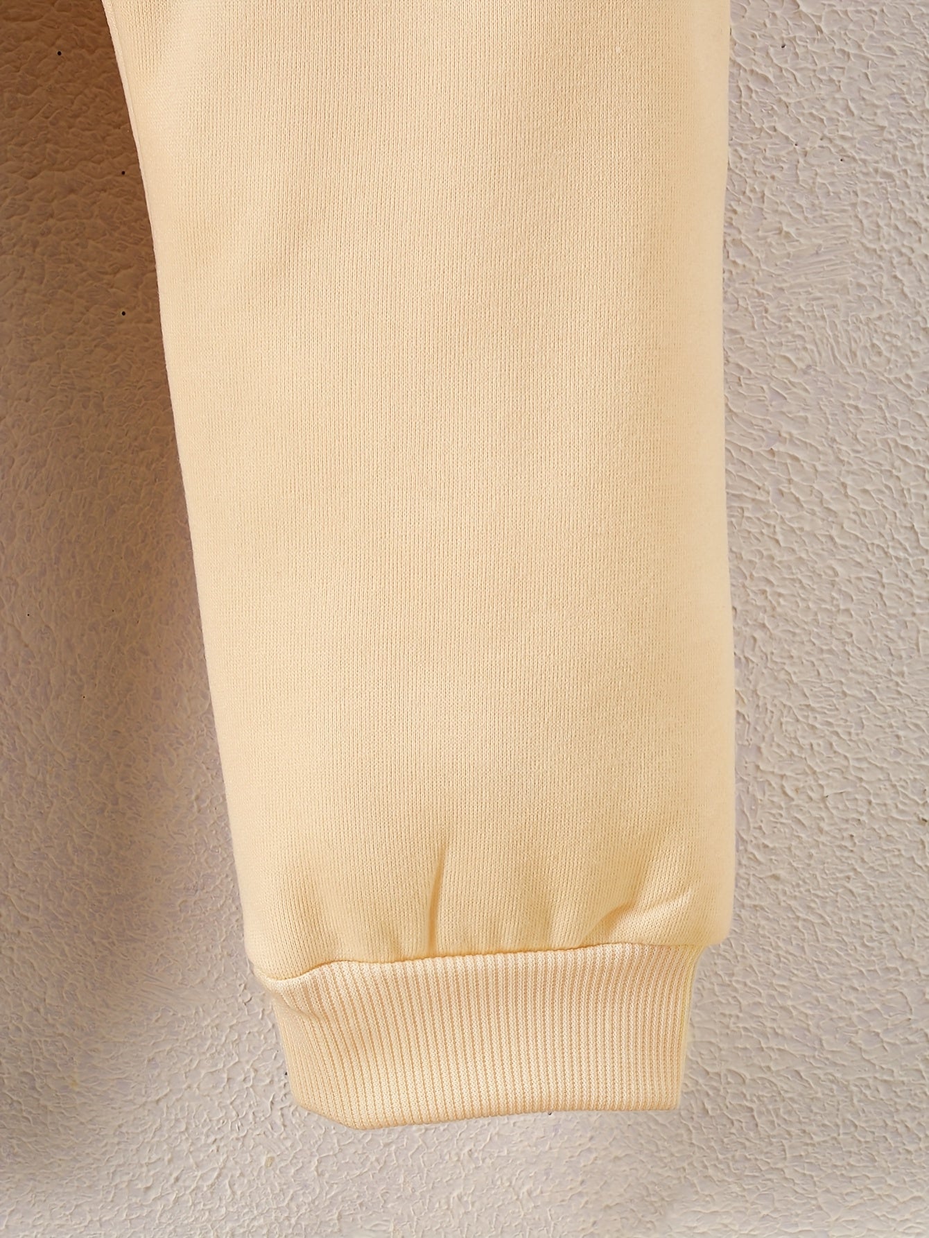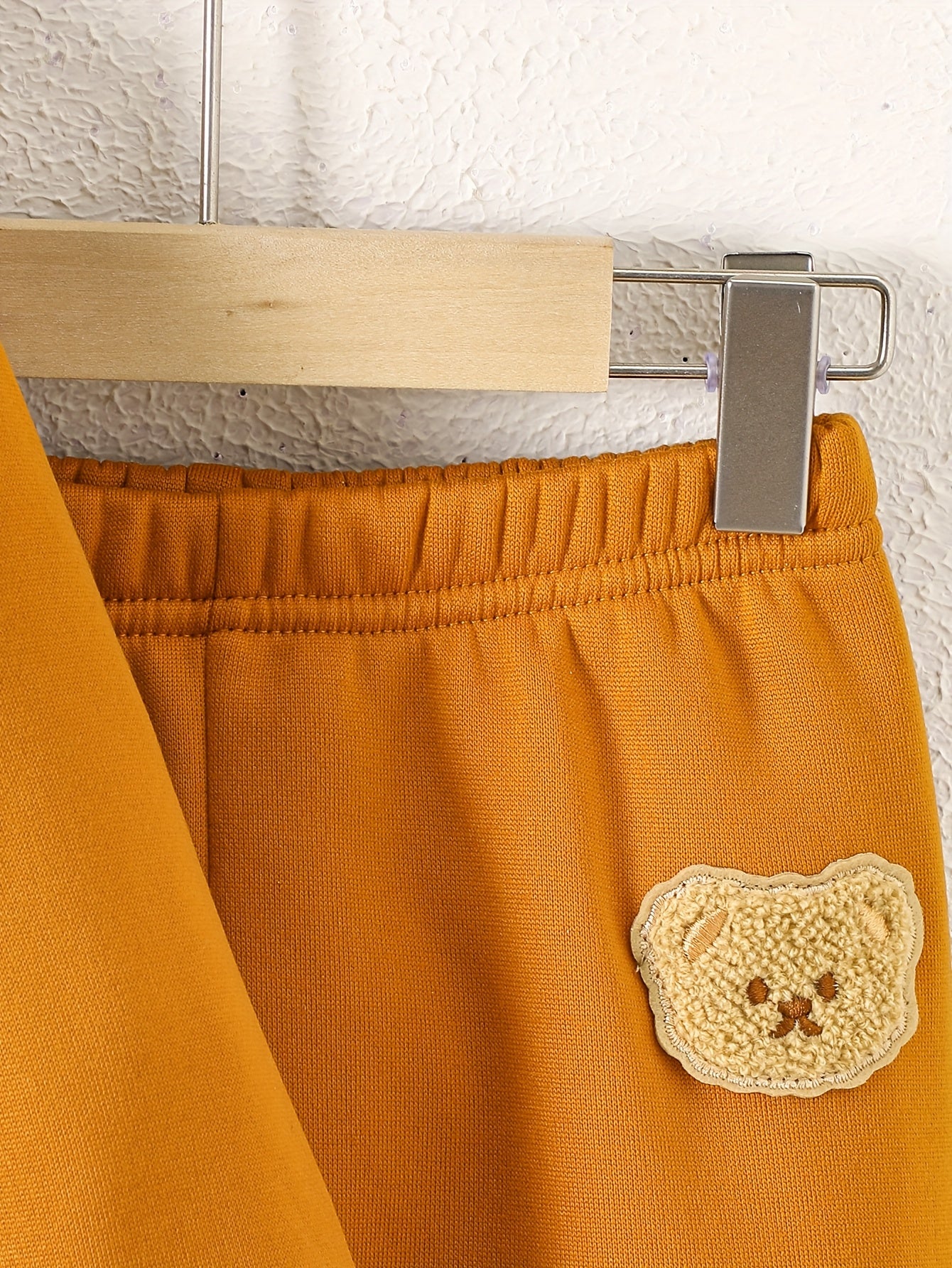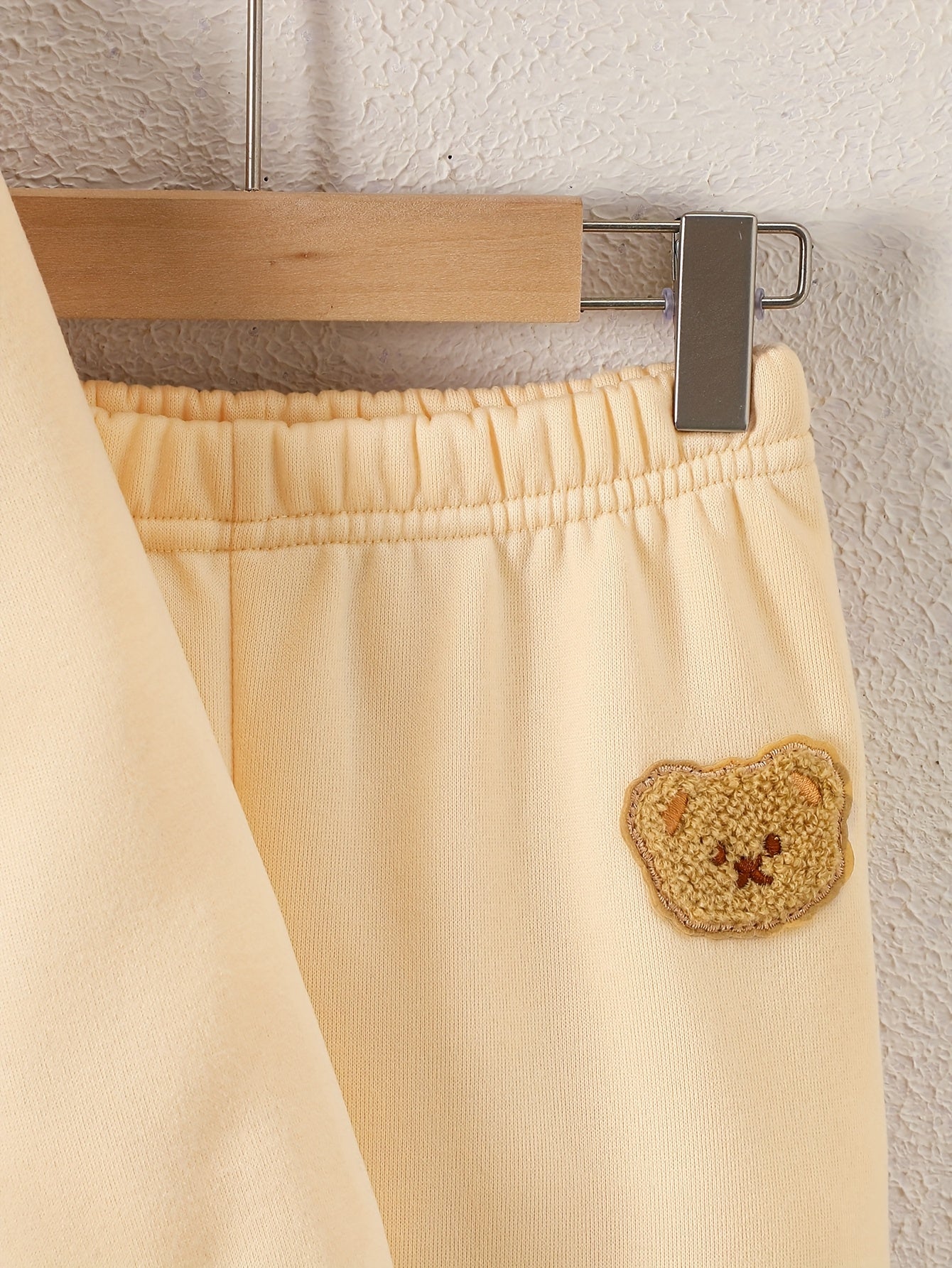 2pcs, Boys' Round Neck Sweatshirt Set, Suitable for Boys Aged 1-8, Fashionable Cartoon Bear Patch, Slightly Stretchy Fabric, Warm Fleece-Lined for Autumn and Winter, Ideal for Casual Sports Wear, Minimalist Style Perfect as a