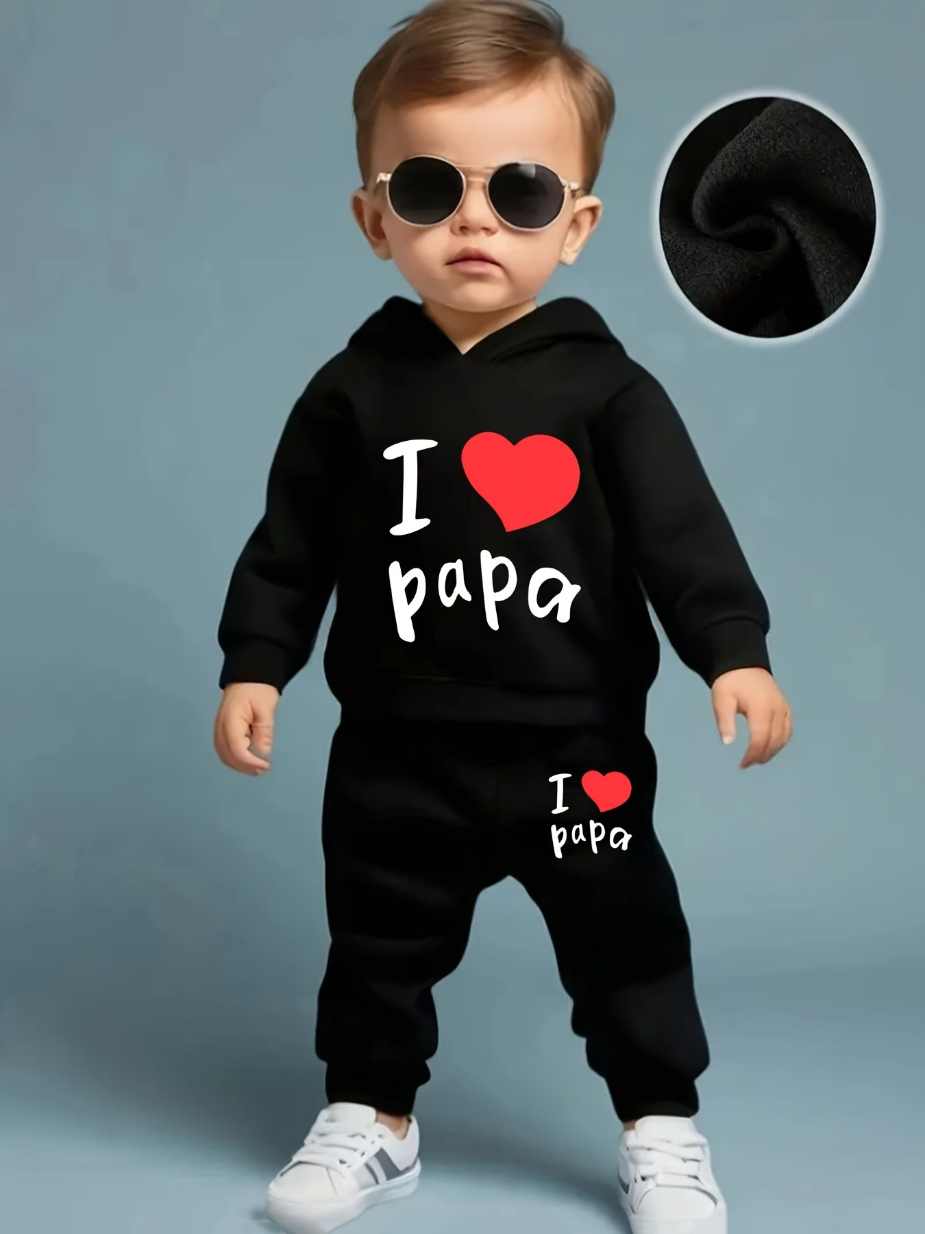 2pcs I Love Papa Print Kids Hoodie & Pants Set, Polyester Casual Raglan Sleeve Long Sleeve Hooded Sweatshirt & Pants for Toddler & Infant Boy'S & Girl'S Clothes, for Outdoor