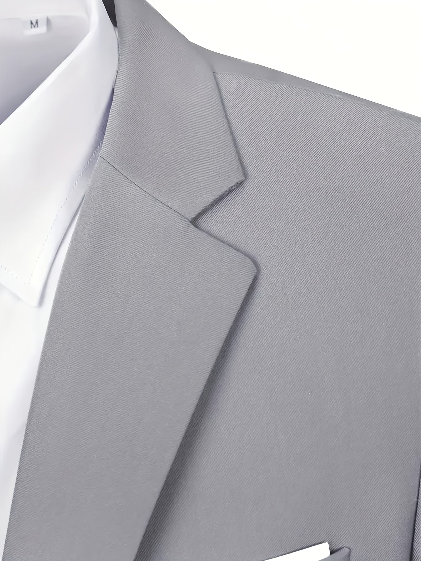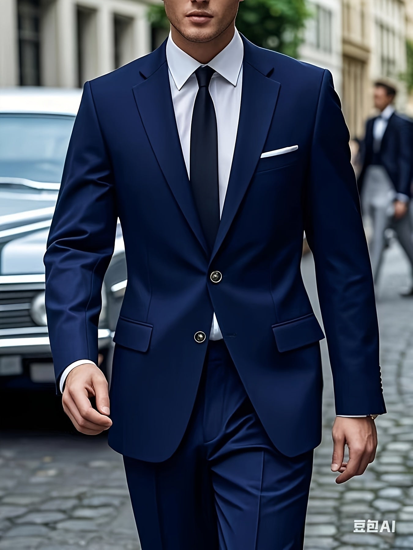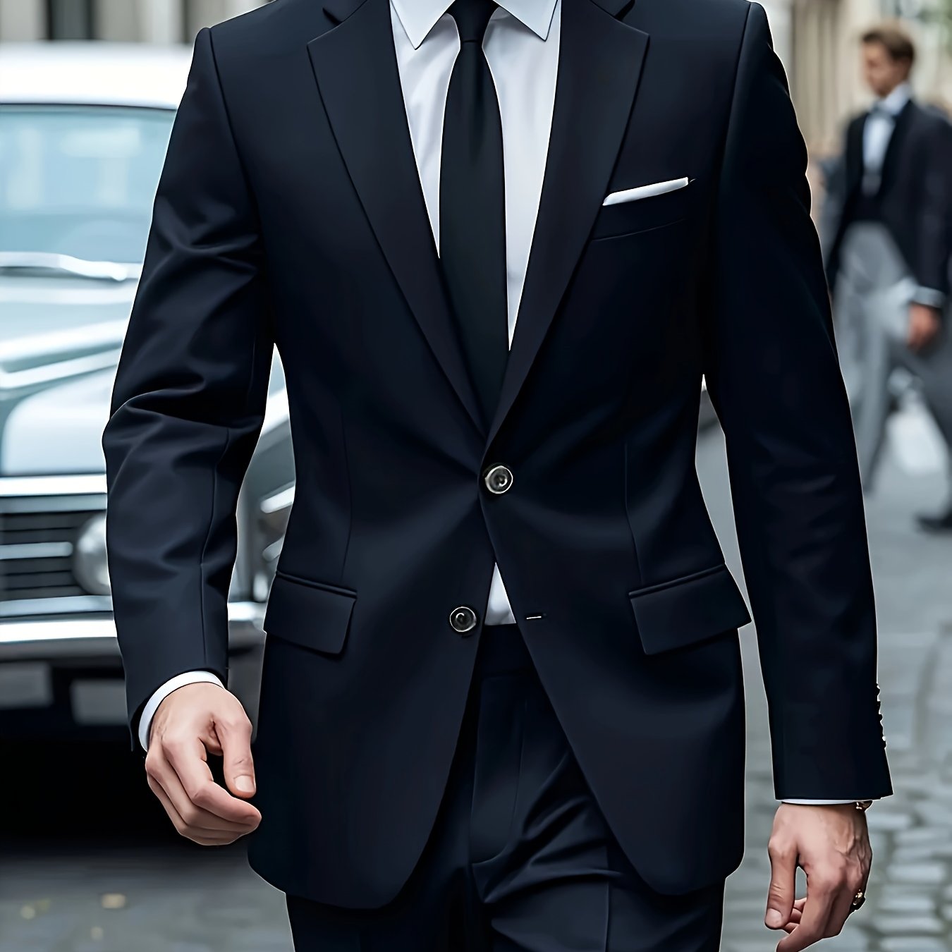 2pcs Luxury Classic Men'S Solid Color Suit - Notched Lapel Blazer and Pants, Regular Fit, Long Sleeve, Traditional Silhouette, Ideal for Weddings, Business Meetings - High-Quality Fabric, Comfortable Wear, Stylish Design, Wed
