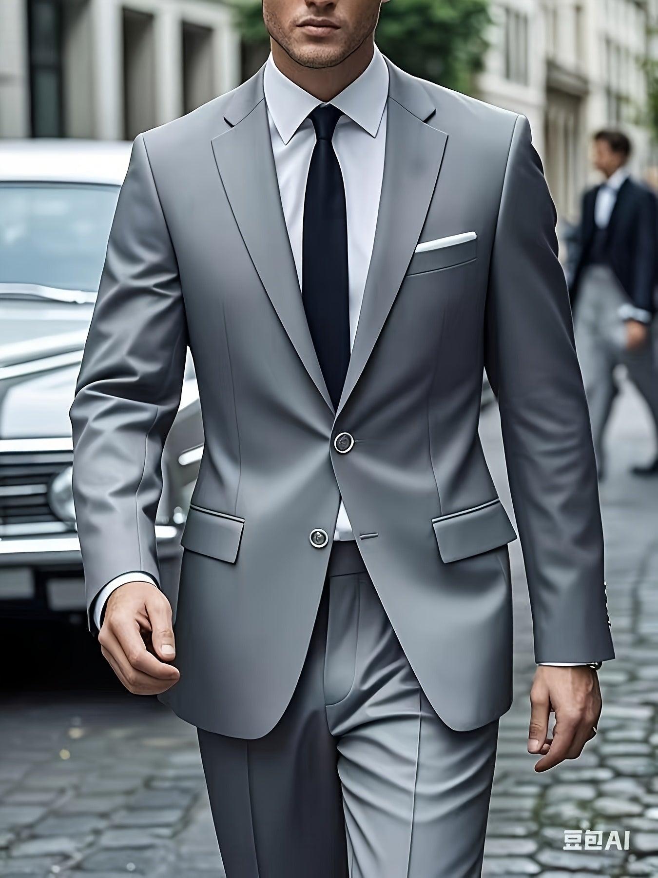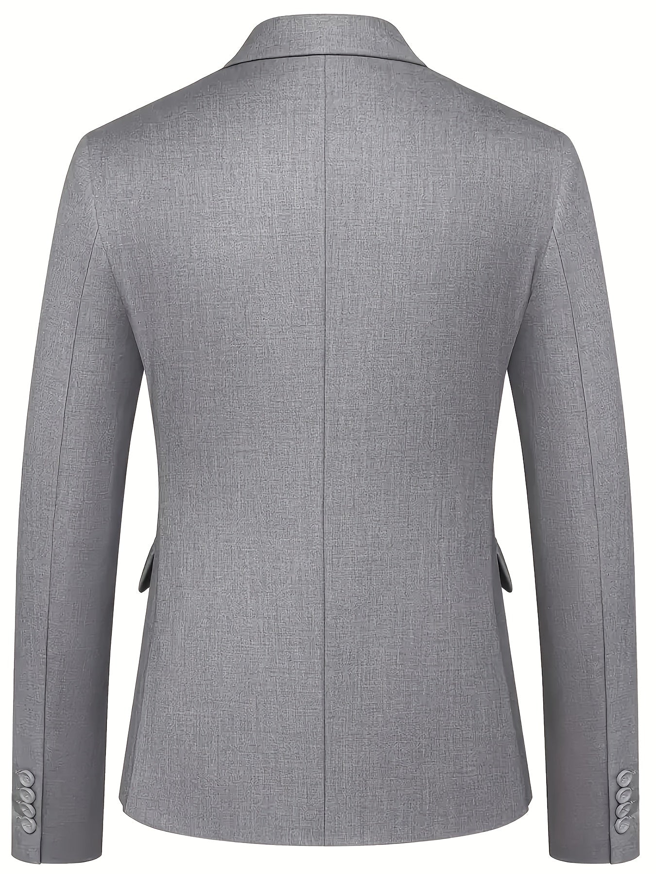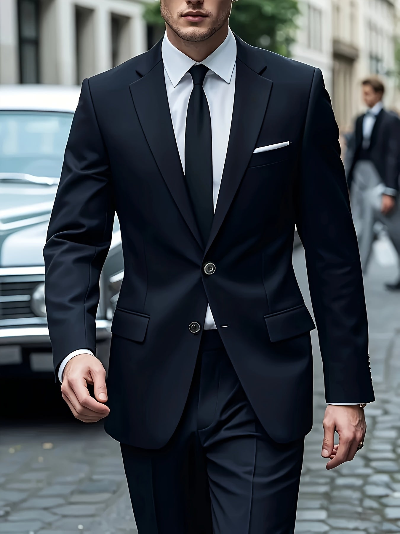 2pcs Luxury Classic Men'S Solid Color Suit - Notched Lapel Blazer and Pants, Regular Fit, Long Sleeve, Traditional Silhouette, Ideal for Weddings, Business Meetings - High-Quality Fabric, Comfortable Wear, Stylish Design, Wed