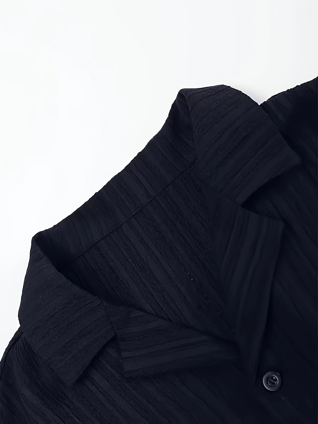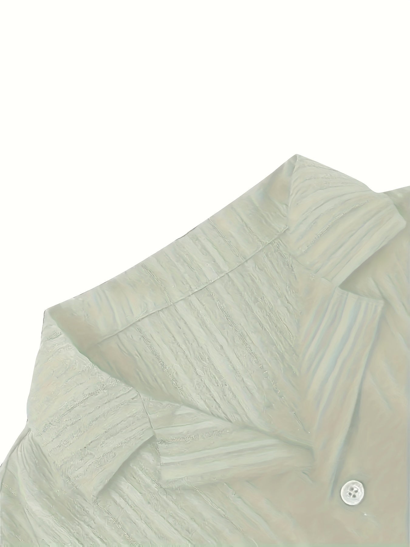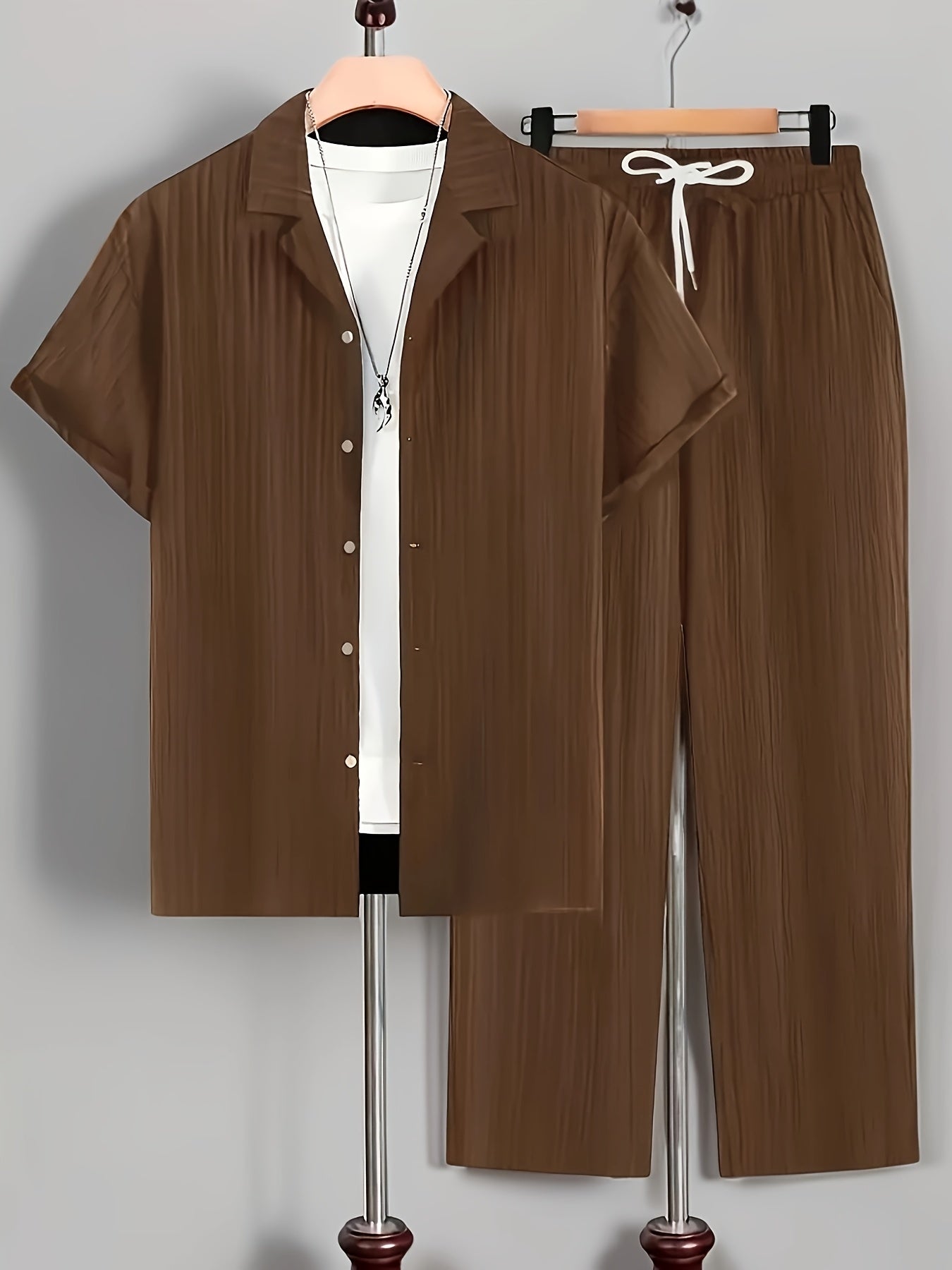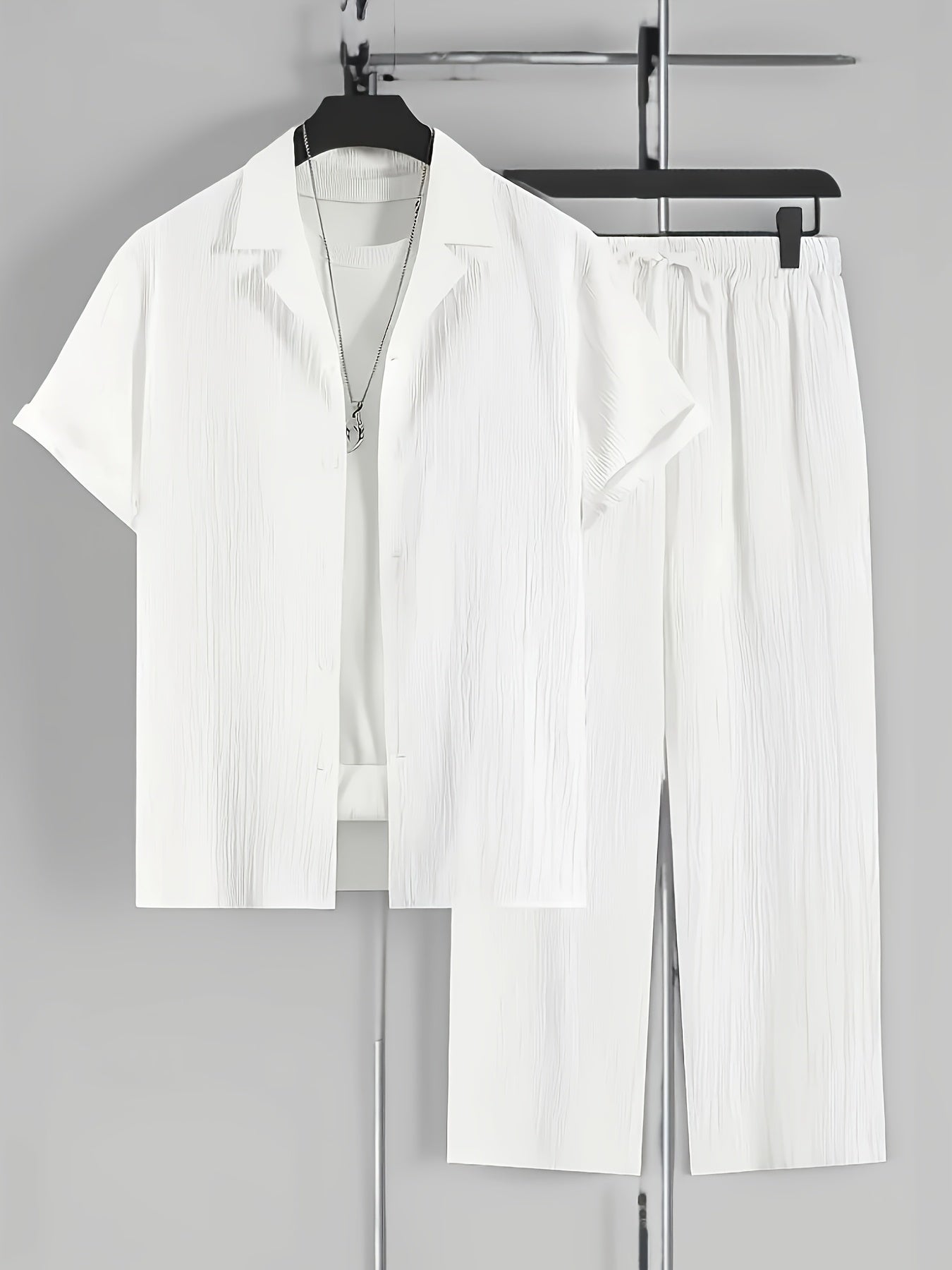 2pcs Men'S Casual Summer Set - Short Sleeve Button-Up Cuban Collar Shirt and Drawstring Waist Pants, Polyester Blend, Solid Color, Regular Fit, Breathable Fabric, Lightweight for Daily Wear