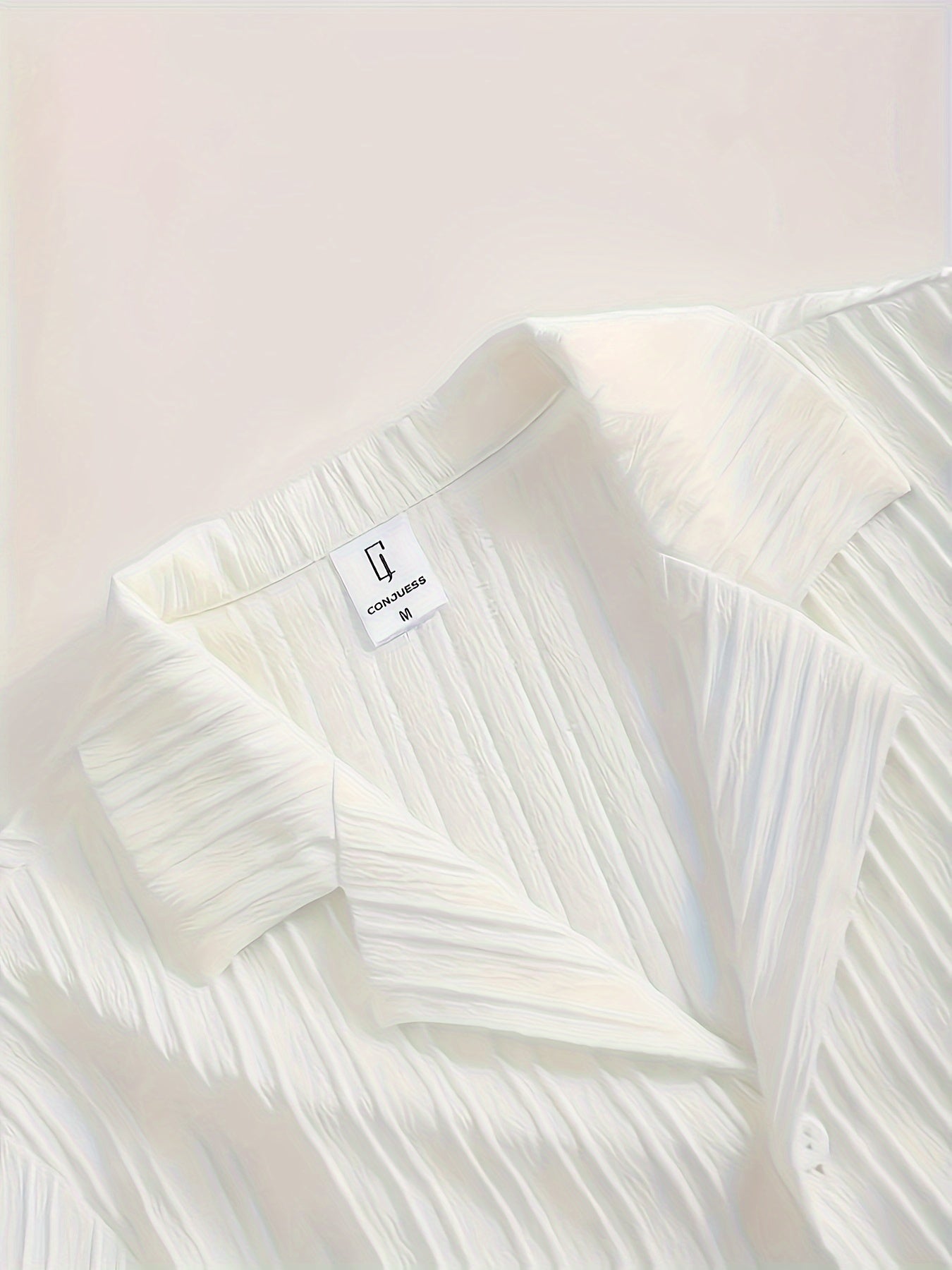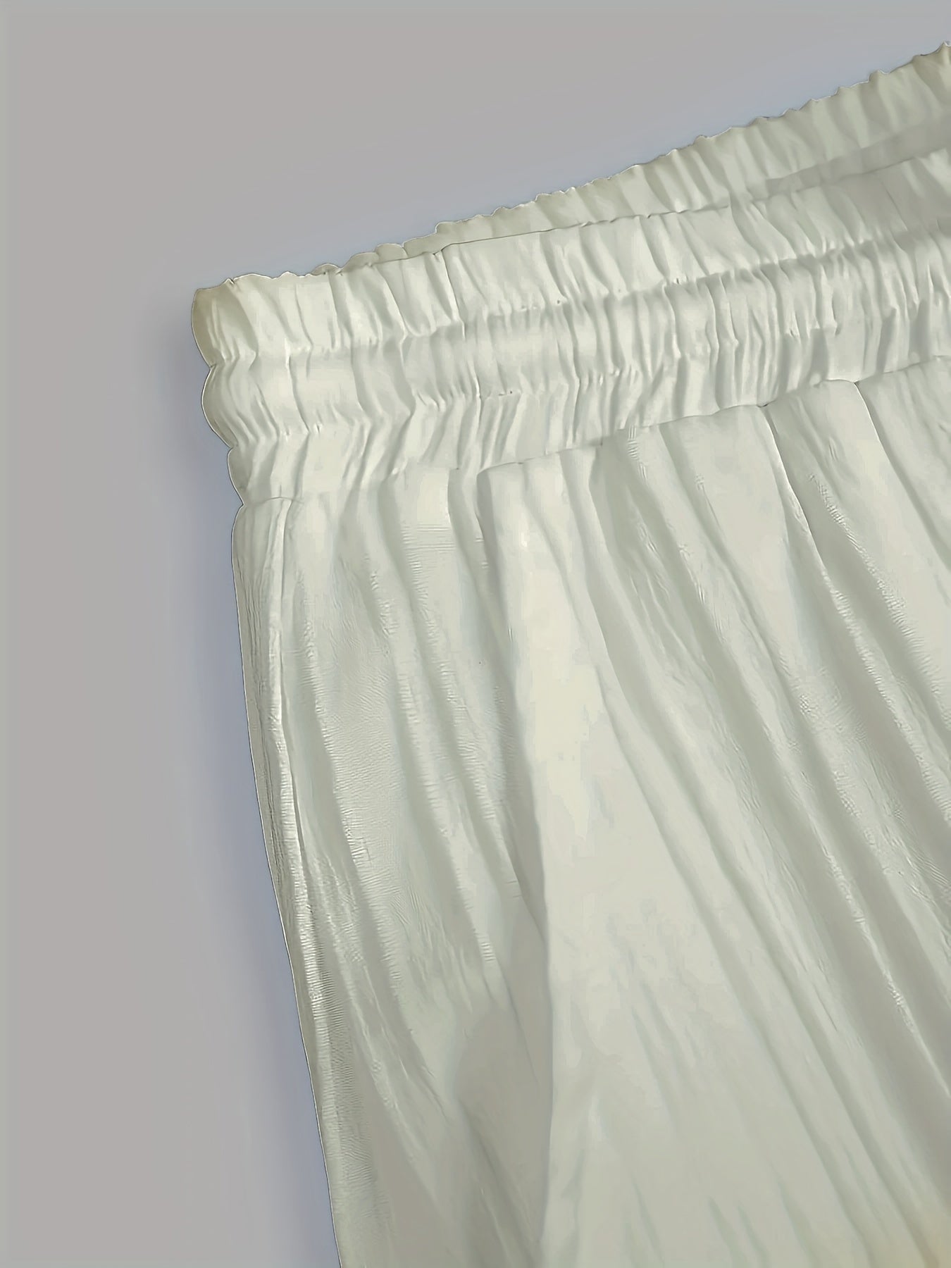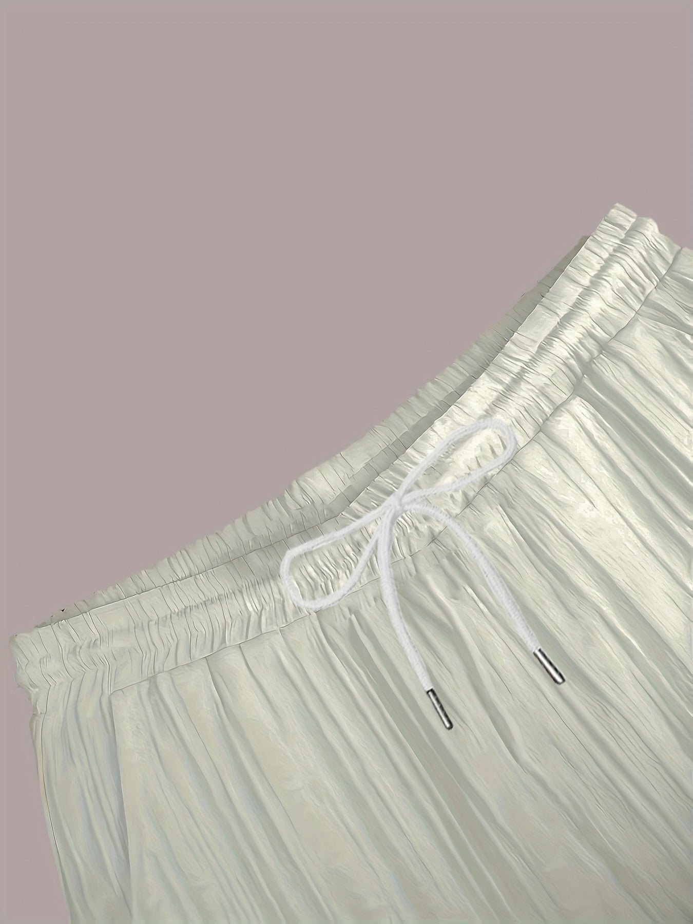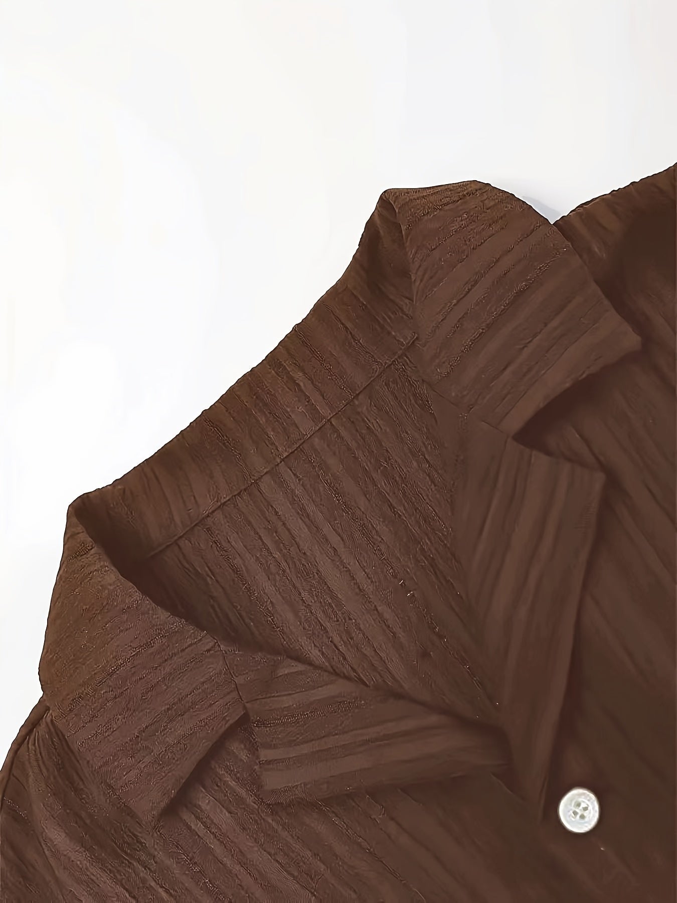 2pcs Men'S Casual Summer Set - Short Sleeve Button-Up Cuban Collar Shirt and Drawstring Waist Pants, Polyester Blend, Solid Color, Regular Fit, Breathable Fabric, Lightweight for Daily Wear