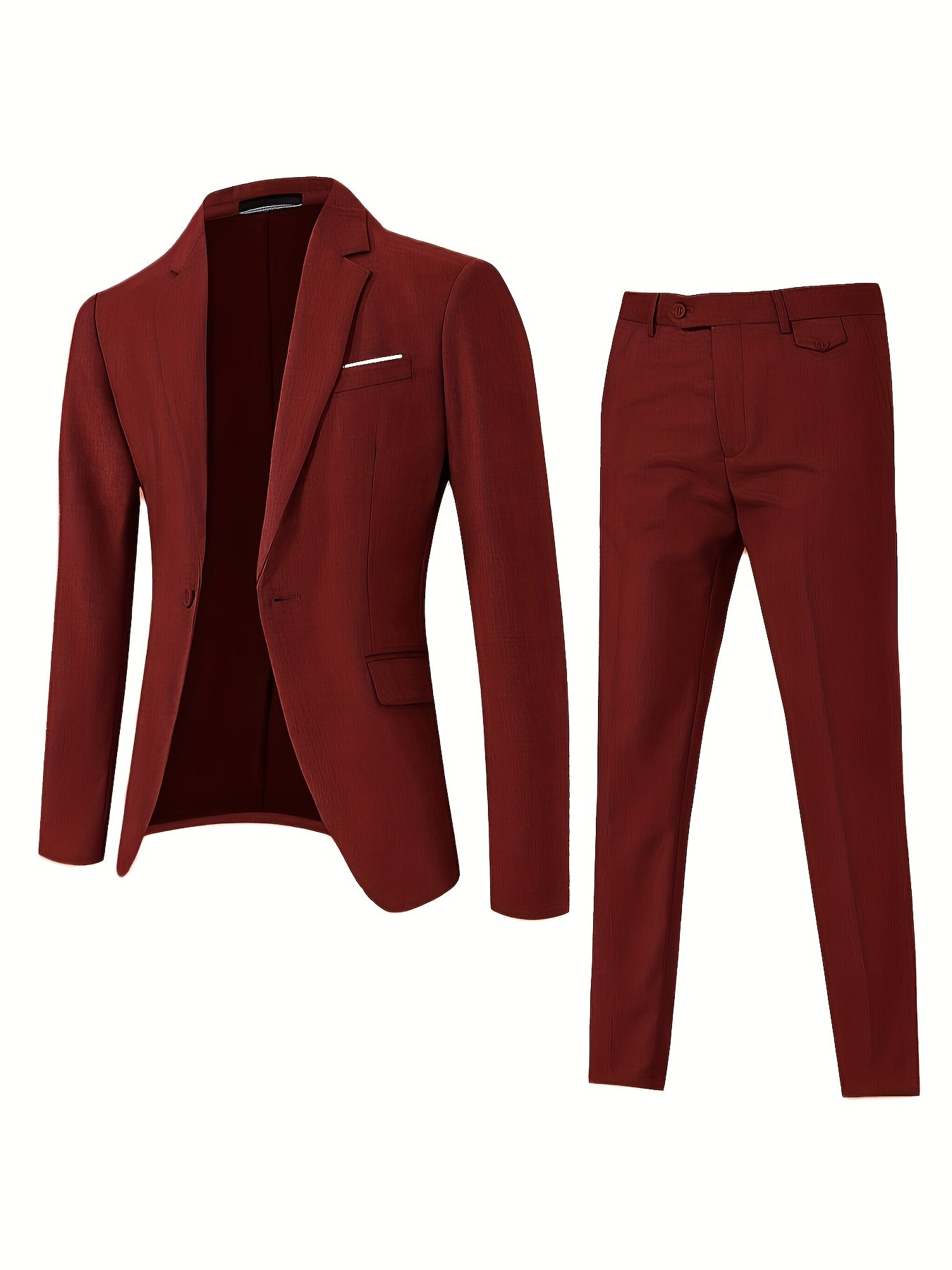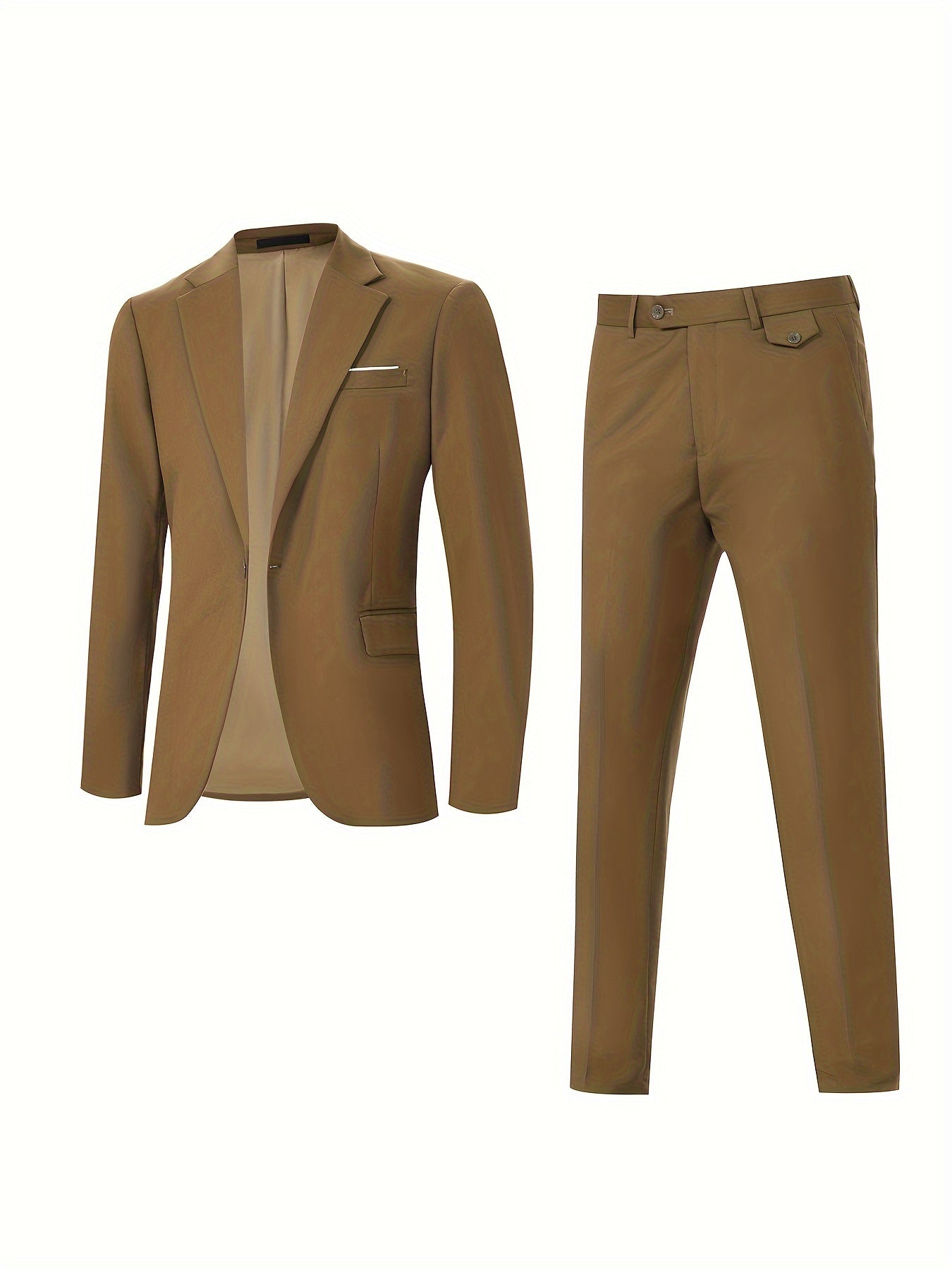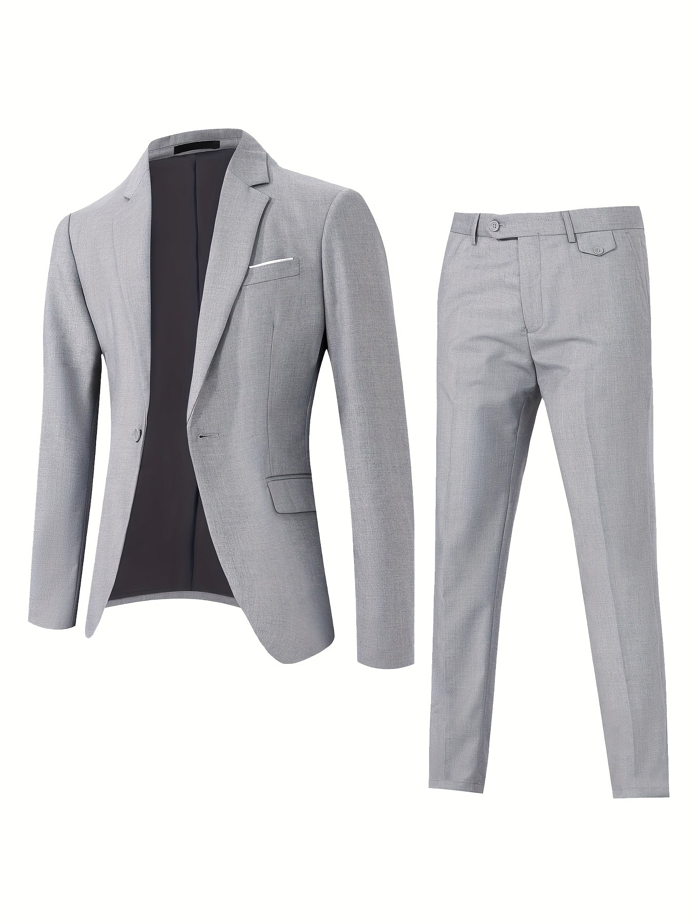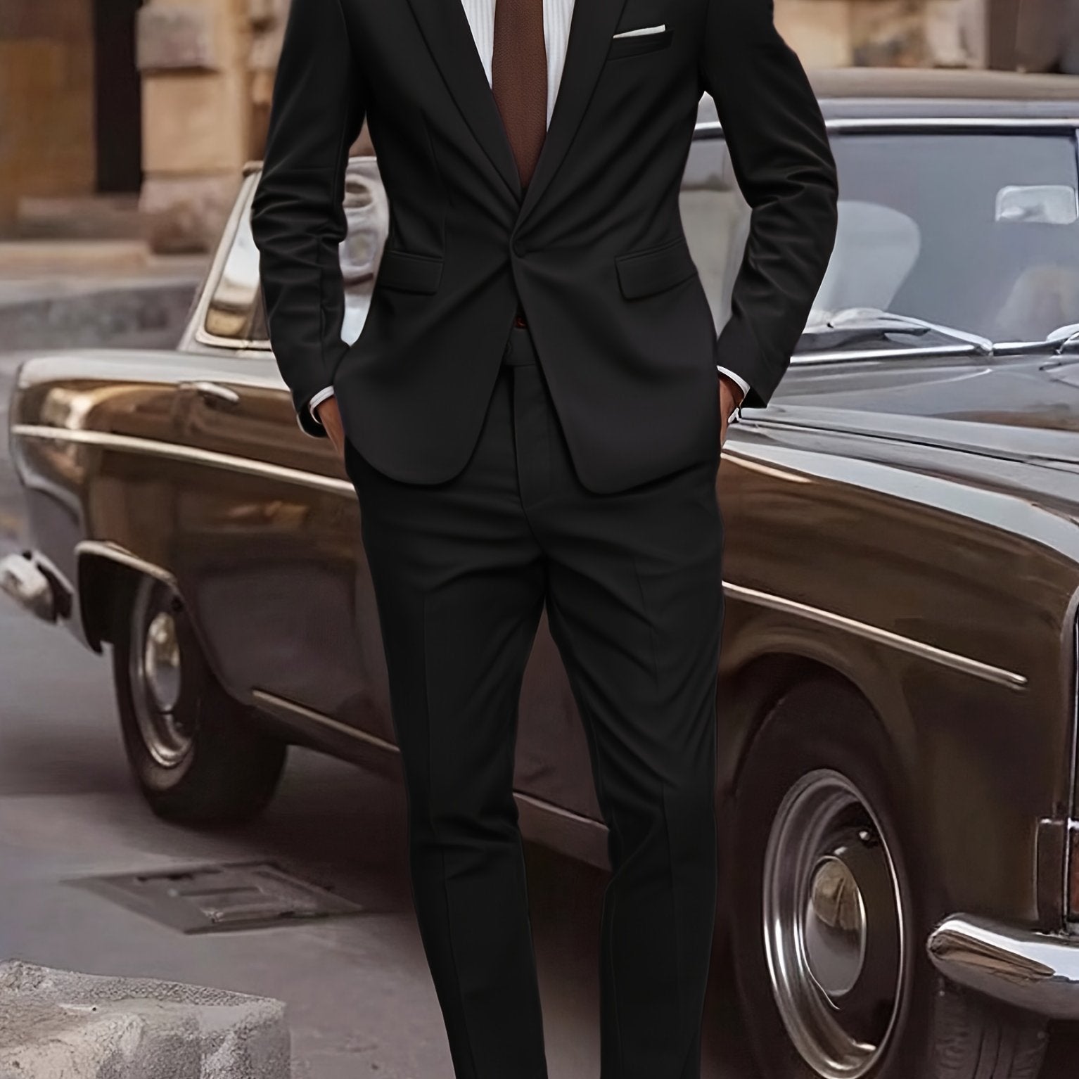 2pcs Men's Elegant Business Casual Suit Set - Includes Classic Lapel Blazer & Dress Pants, Polyester/Rayon Blend, with Pockets - Perfect for Weddings & Formal Occasions