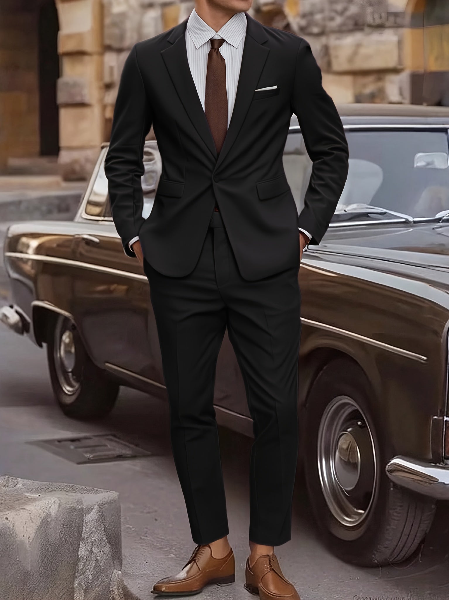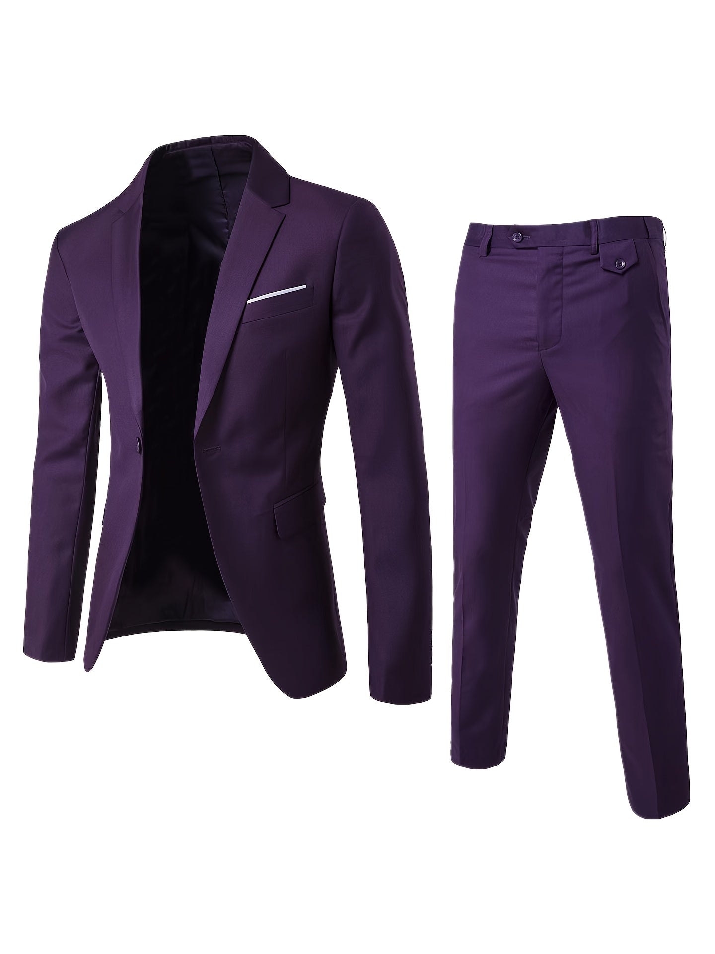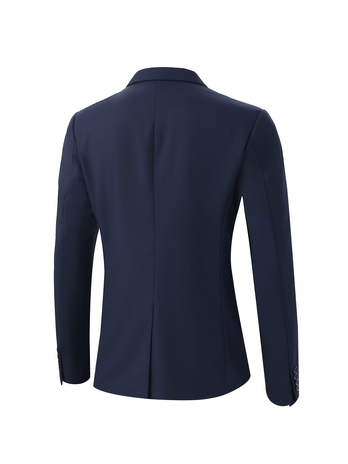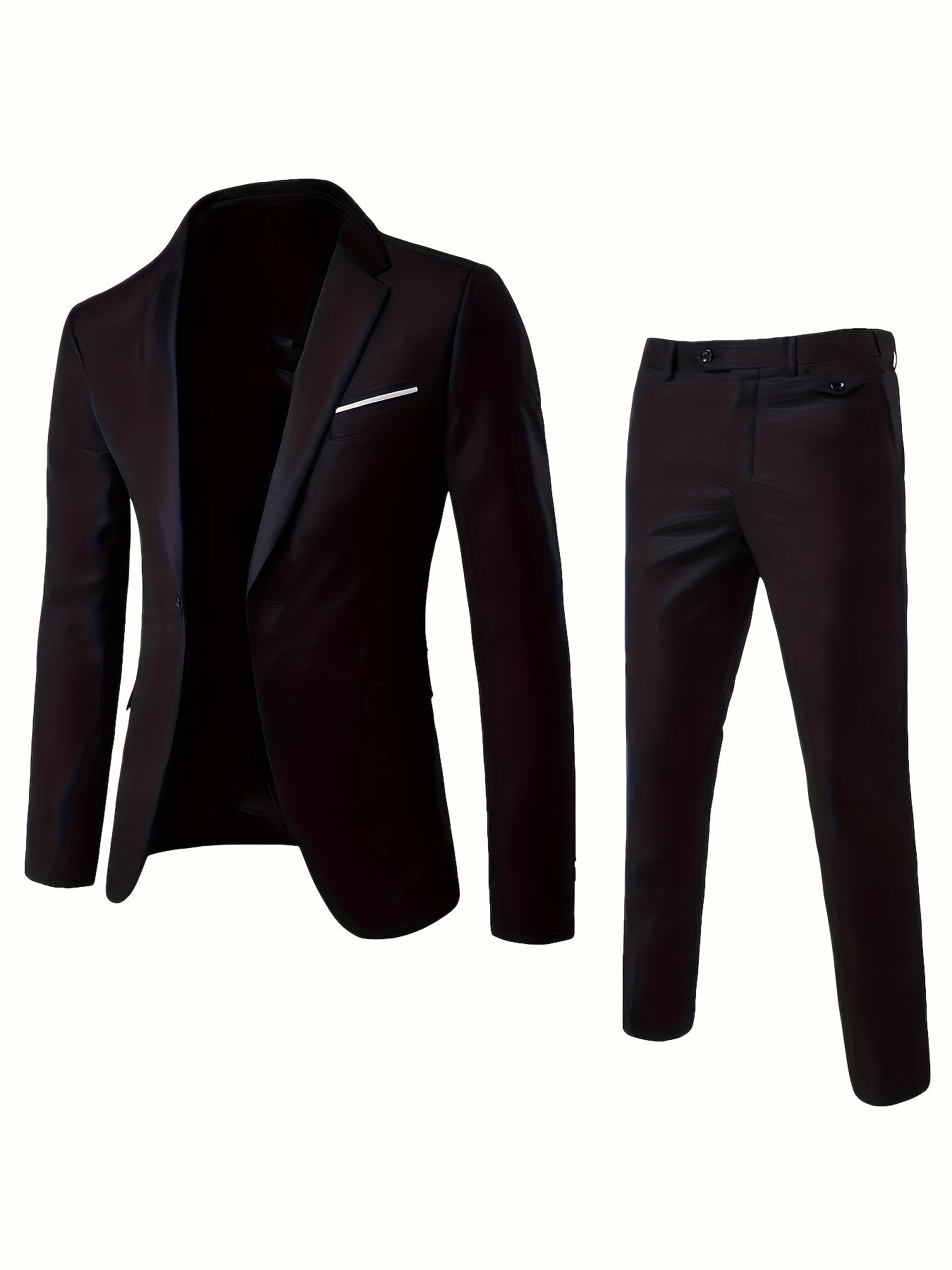 2pcs Men's Elegant Business Casual Suit Set - Includes Classic Lapel Blazer & Dress Pants, Polyester/Rayon Blend, with Pockets - Perfect for Weddings & Formal Occasions