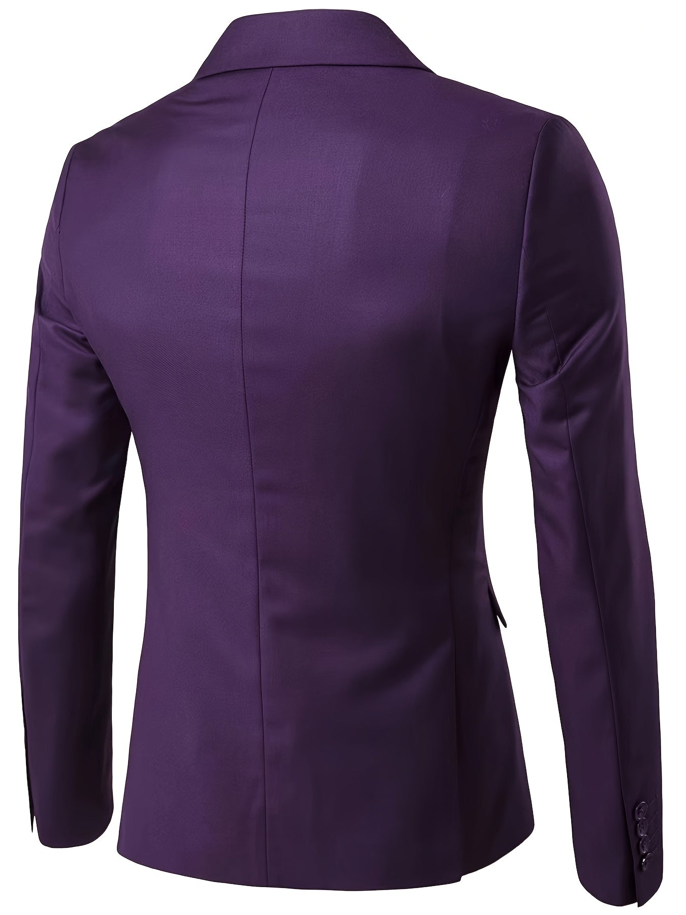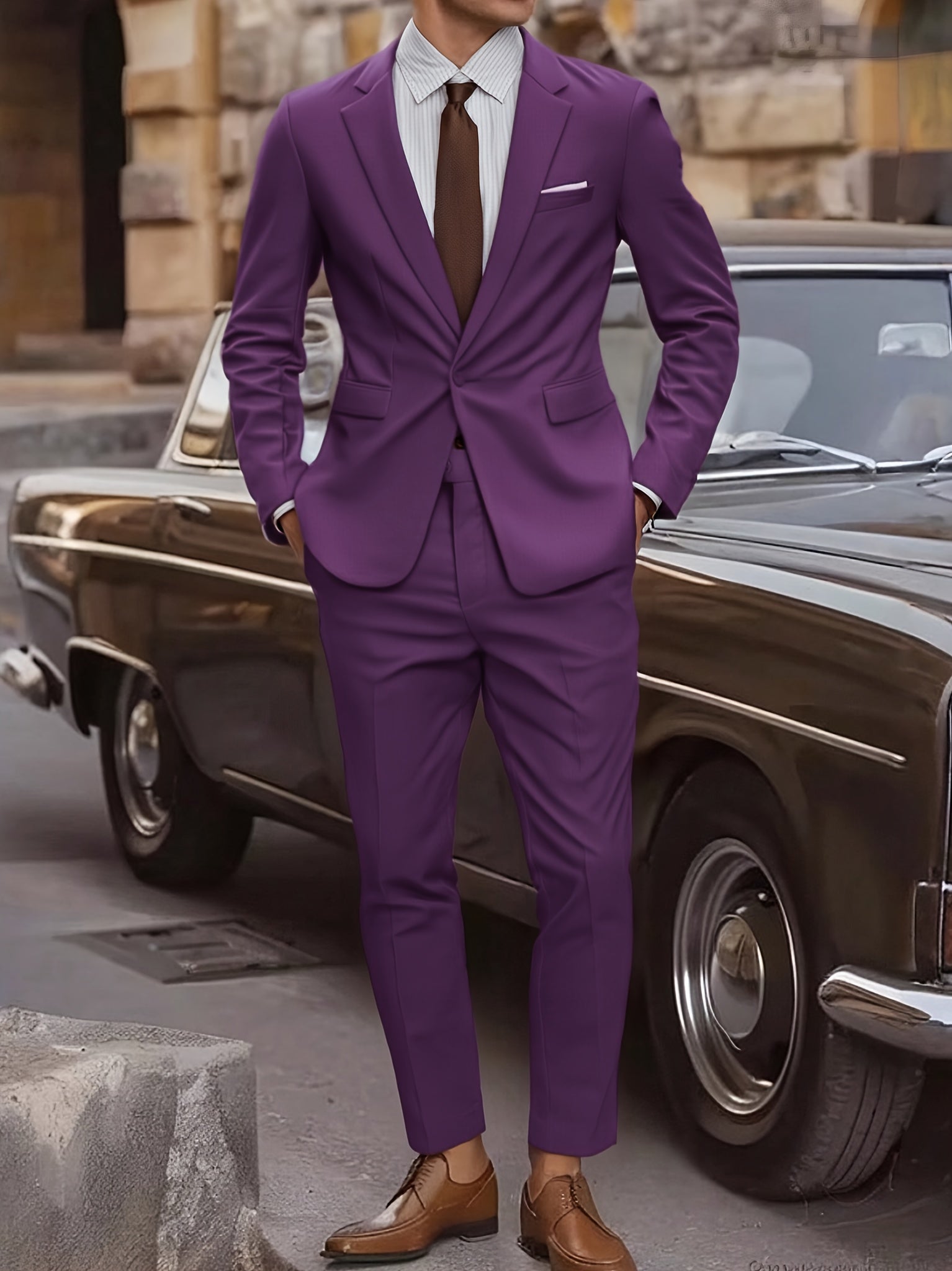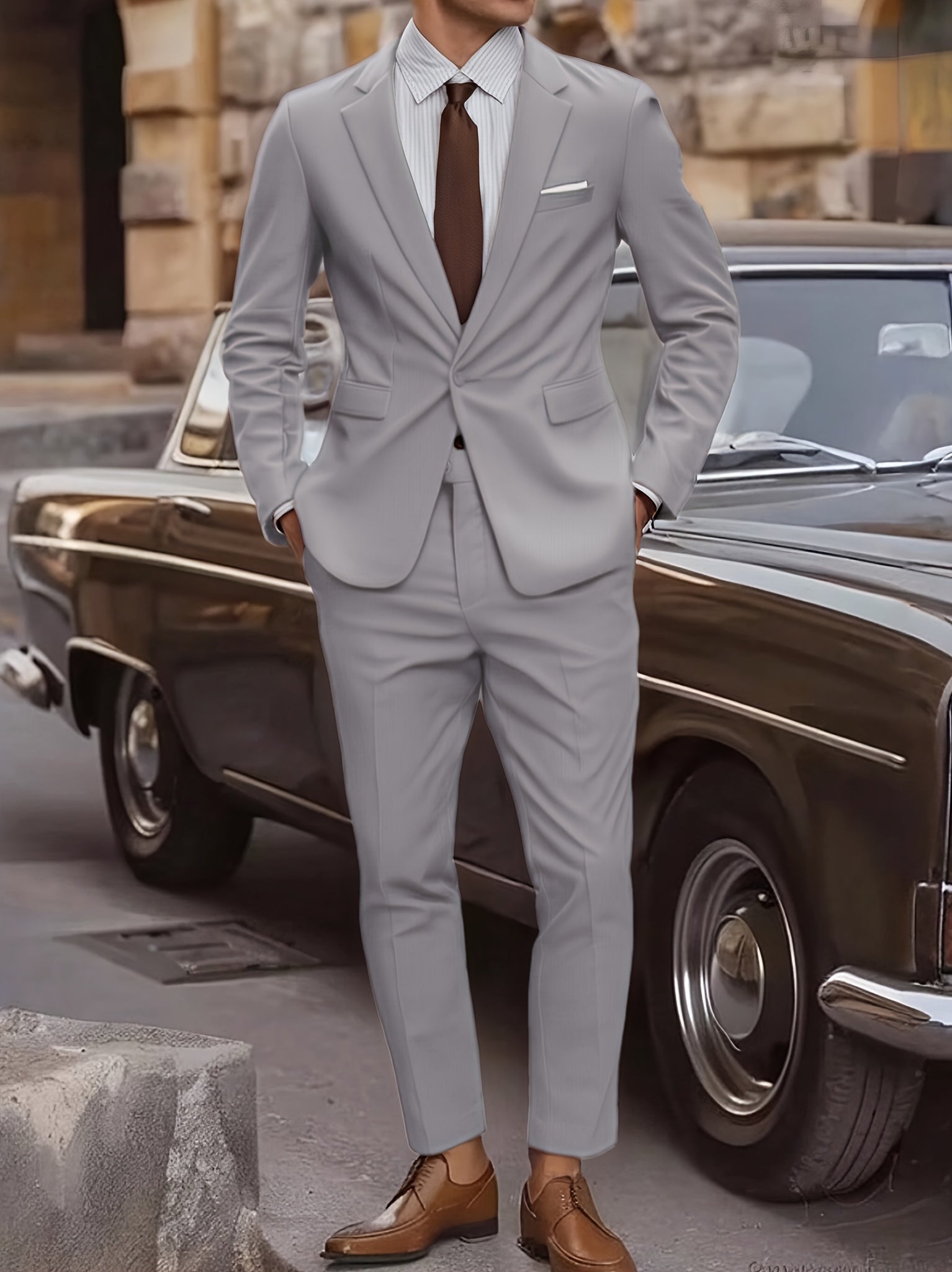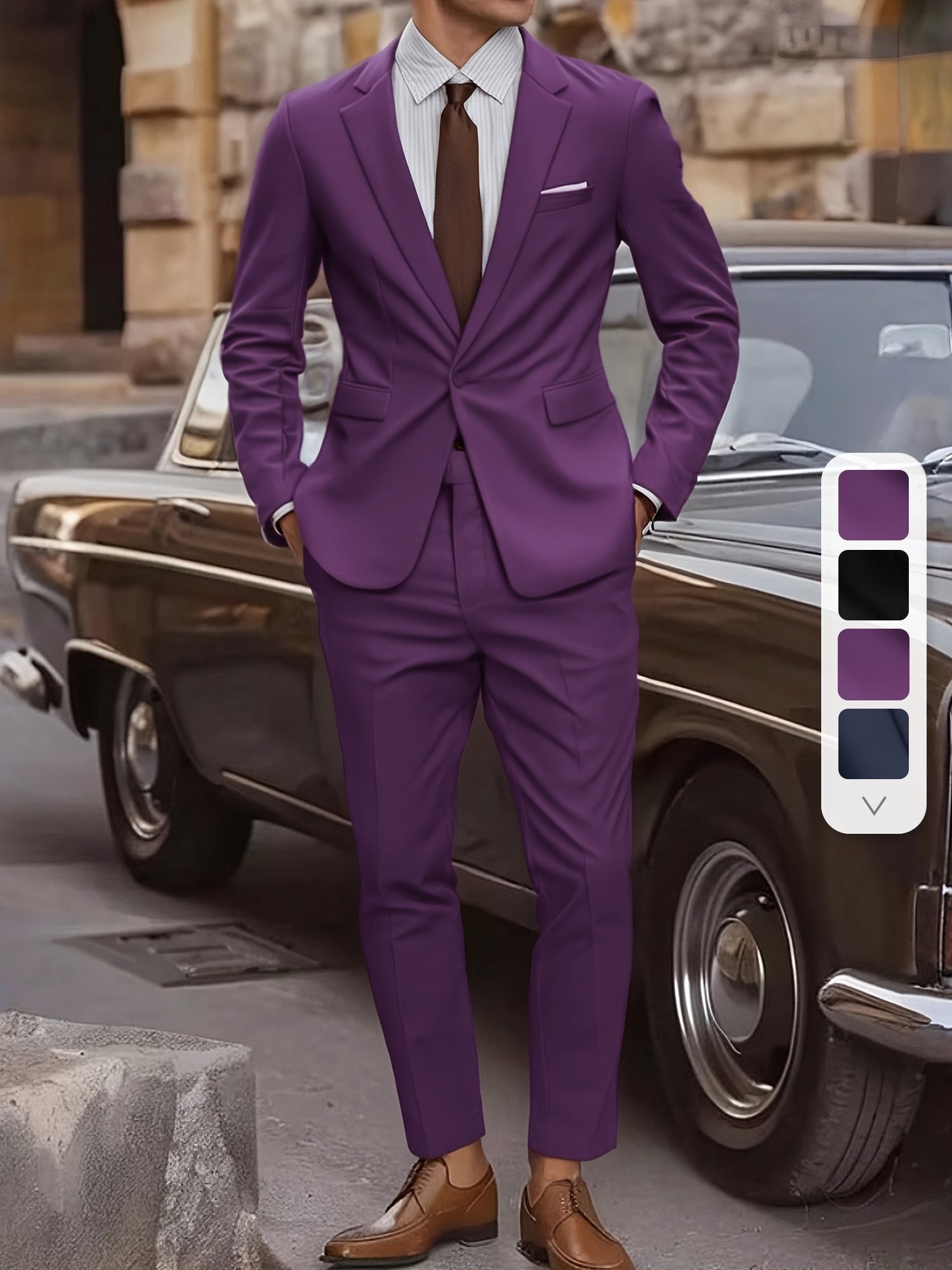 2pcs Men's Elegant Business Casual Suit Set - Includes Classic Lapel Blazer & Dress Pants, Polyester/Rayon Blend, with Pockets - Perfect for Weddings & Formal Occasions