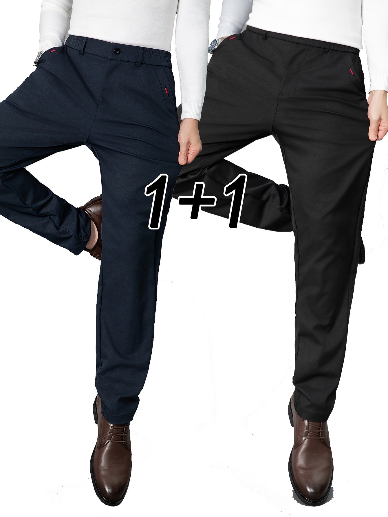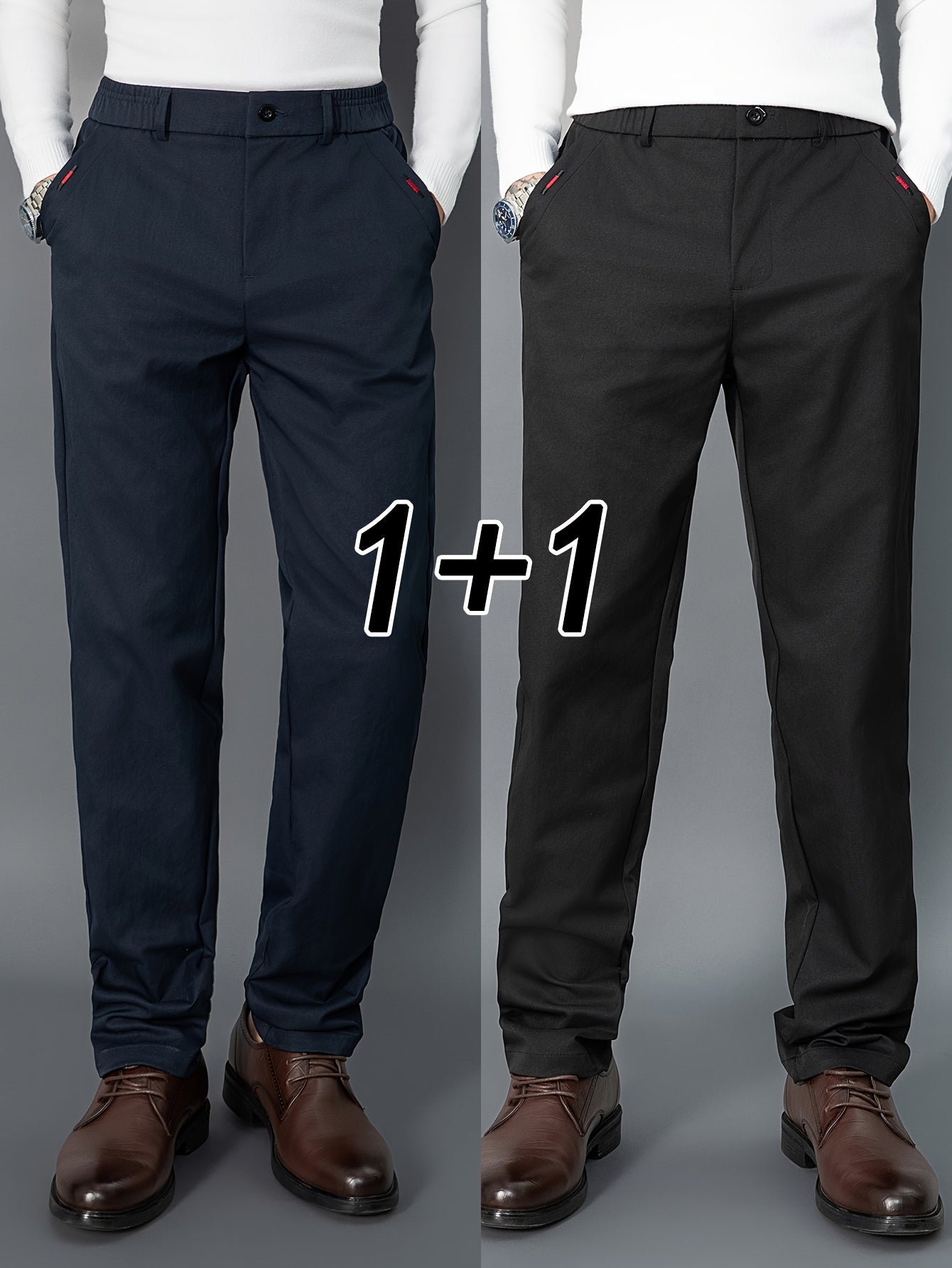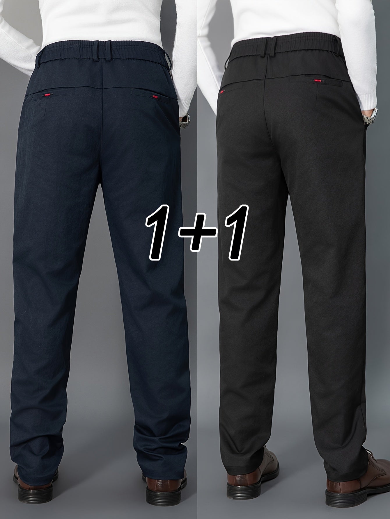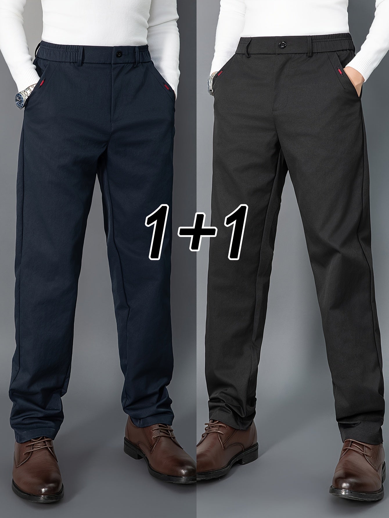 2pcs Men's Light Business Casual Pants - Straight Leg Dress Trousers, Lightweight & Comfortable for Office and Casual Attire, All Seasons, Navy Blue & Black, Polyester Fabric, Machine Washable, Versatile Dress Trousers | Styl