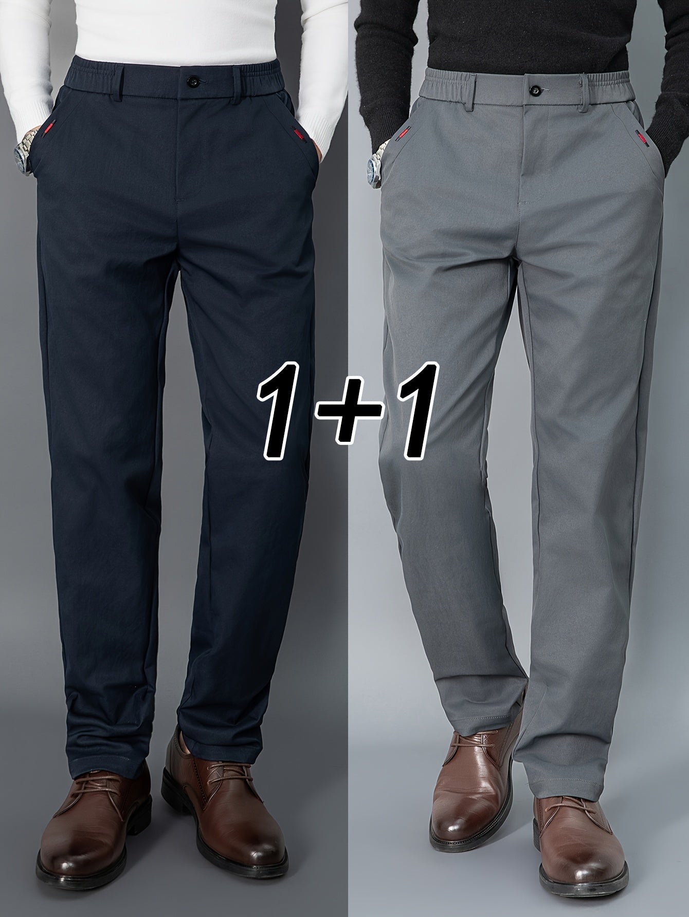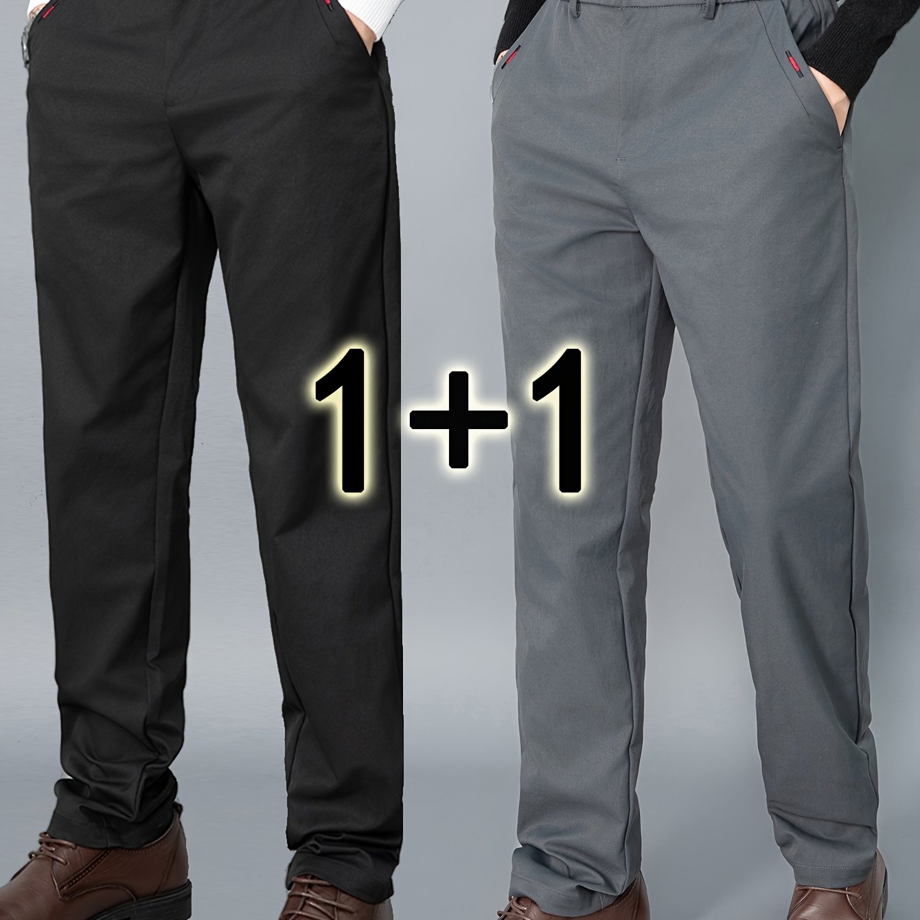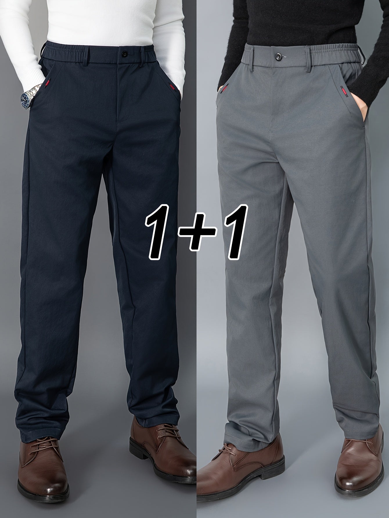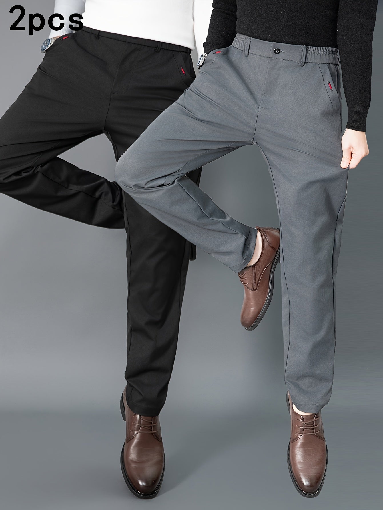 2pcs Men's Light Business Casual Pants - Straight Leg Dress Trousers, Lightweight & Comfortable for Office and Casual Attire, All Seasons, Navy Blue & Black, Polyester Fabric, Machine Washable, Versatile Dress Trousers | Styl