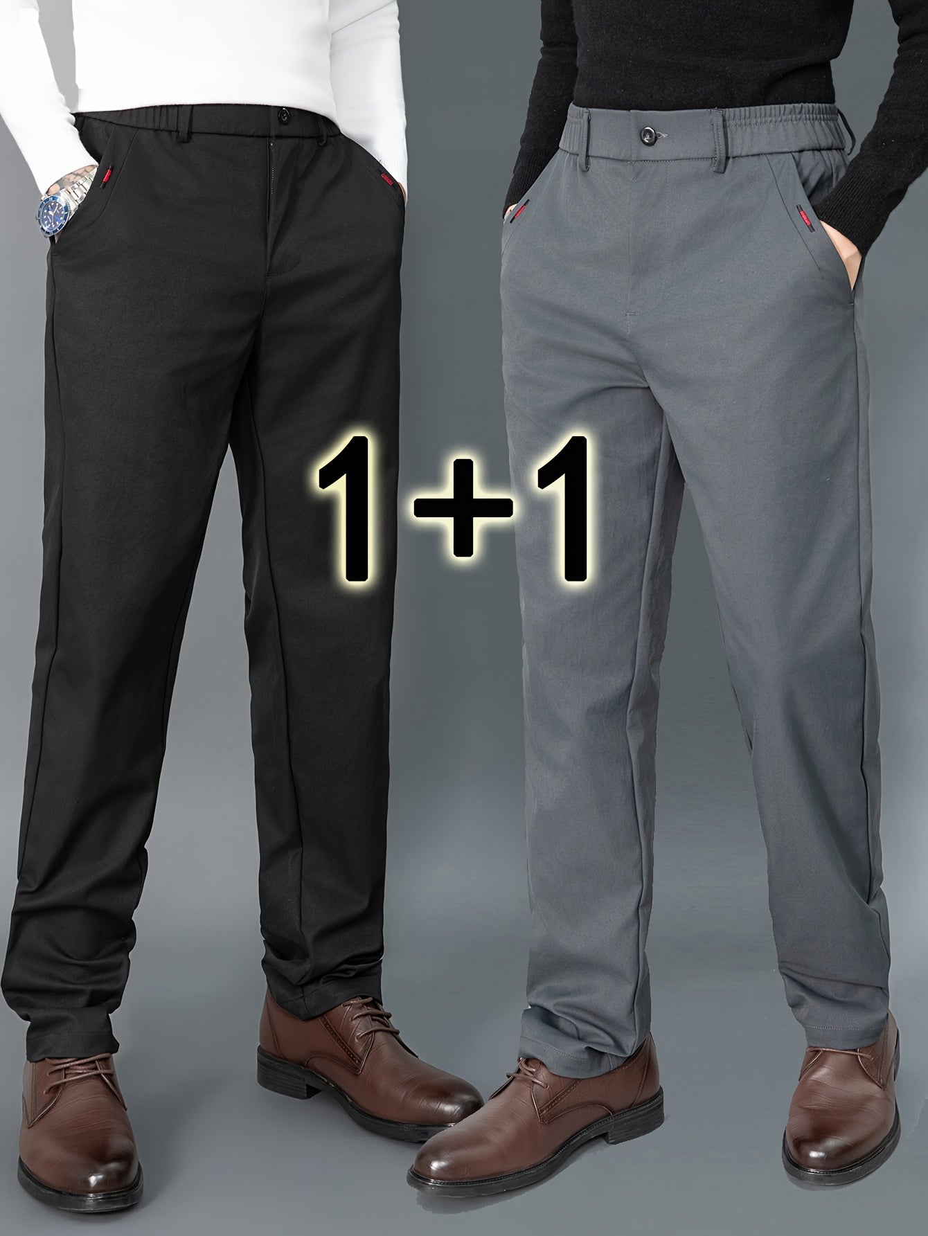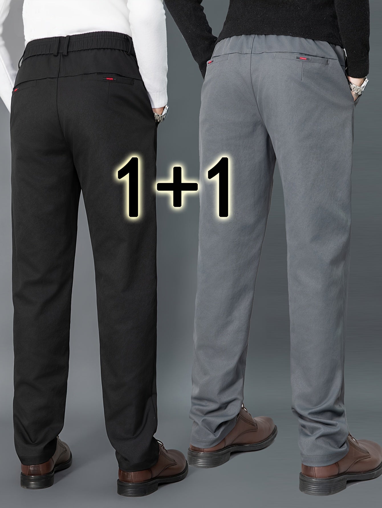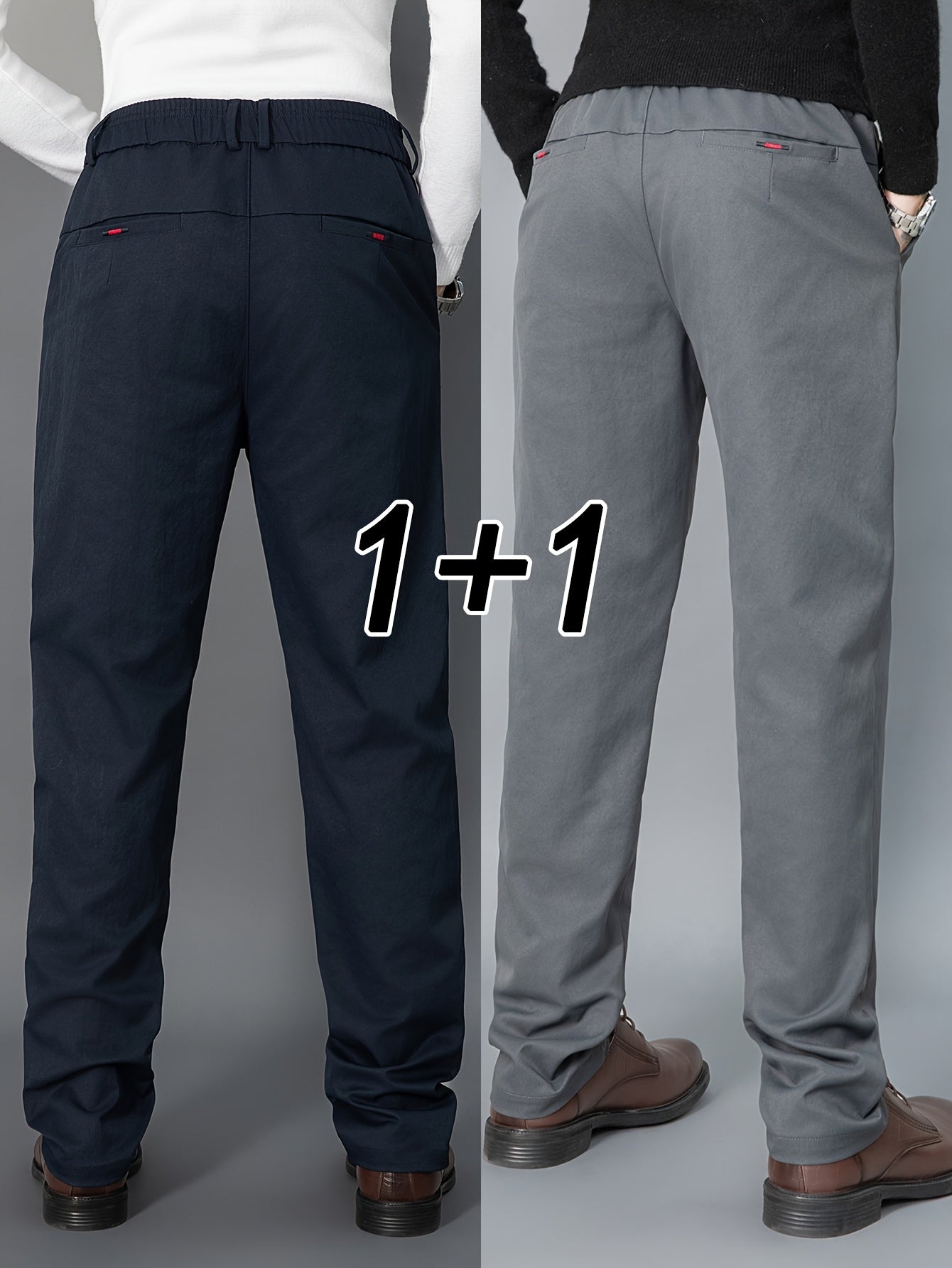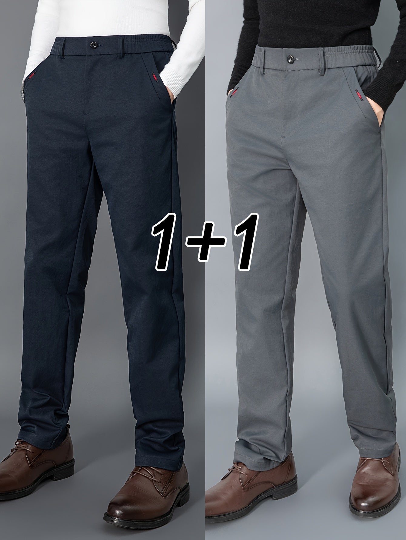 2pcs Men's Light Business Casual Pants - Straight Leg Dress Trousers, Lightweight & Comfortable for Office and Casual Attire, All Seasons, Navy Blue & Black, Polyester Fabric, Machine Washable, Versatile Dress Trousers | Styl