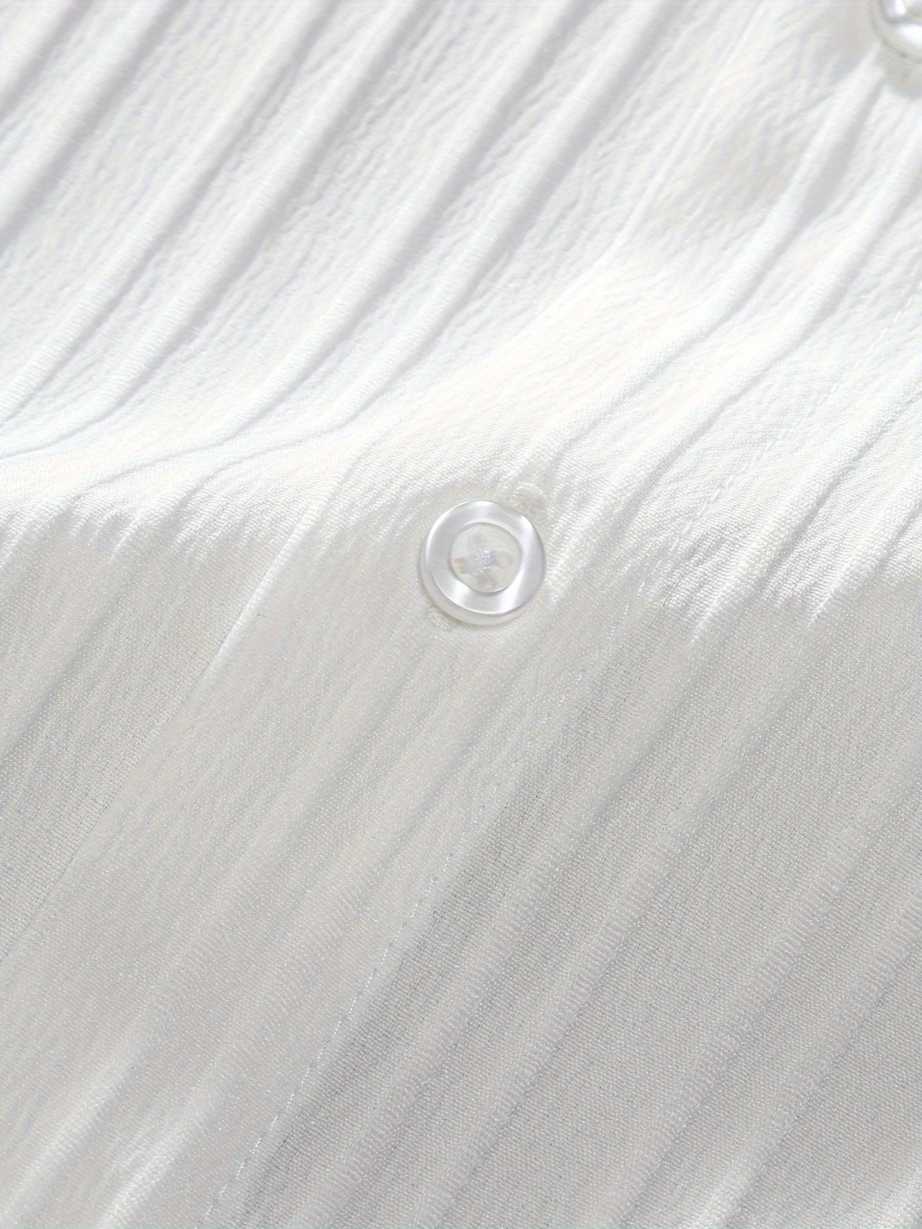 2pcs Men's Summer Casual Striped Polyester Outfit Set, Short Sleeve Stand Collar Shirt and Drawstring Pants, Non-Stretch Woven Fabric, Regular Fit for Daily Wear and Beach Vacation, Plain Color, Beach Vacation