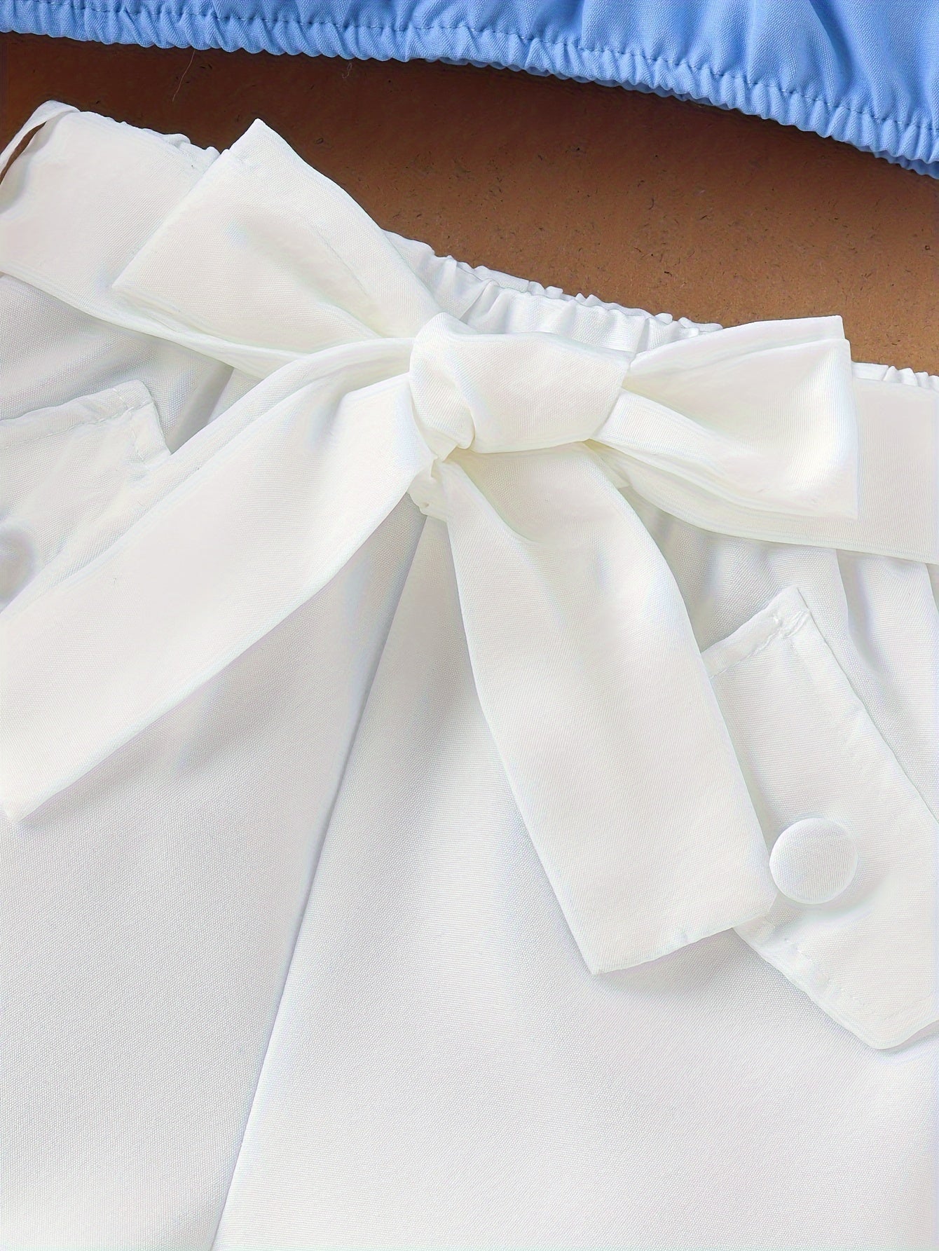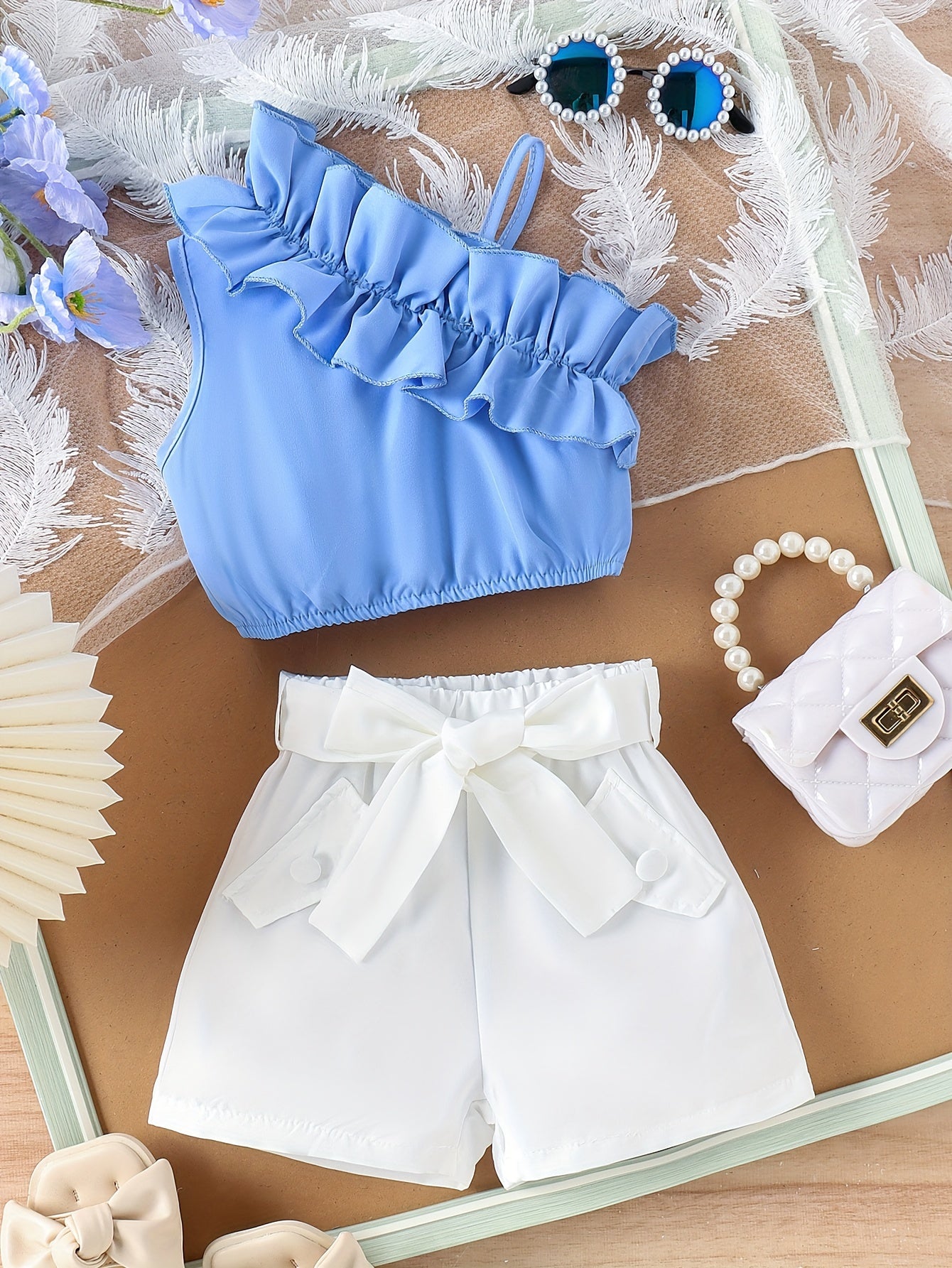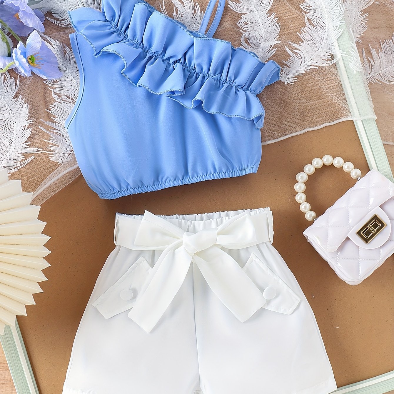 2pcs Set for Little Girls: Fashionable Shoulder Bag with Lace Trim + Shorts