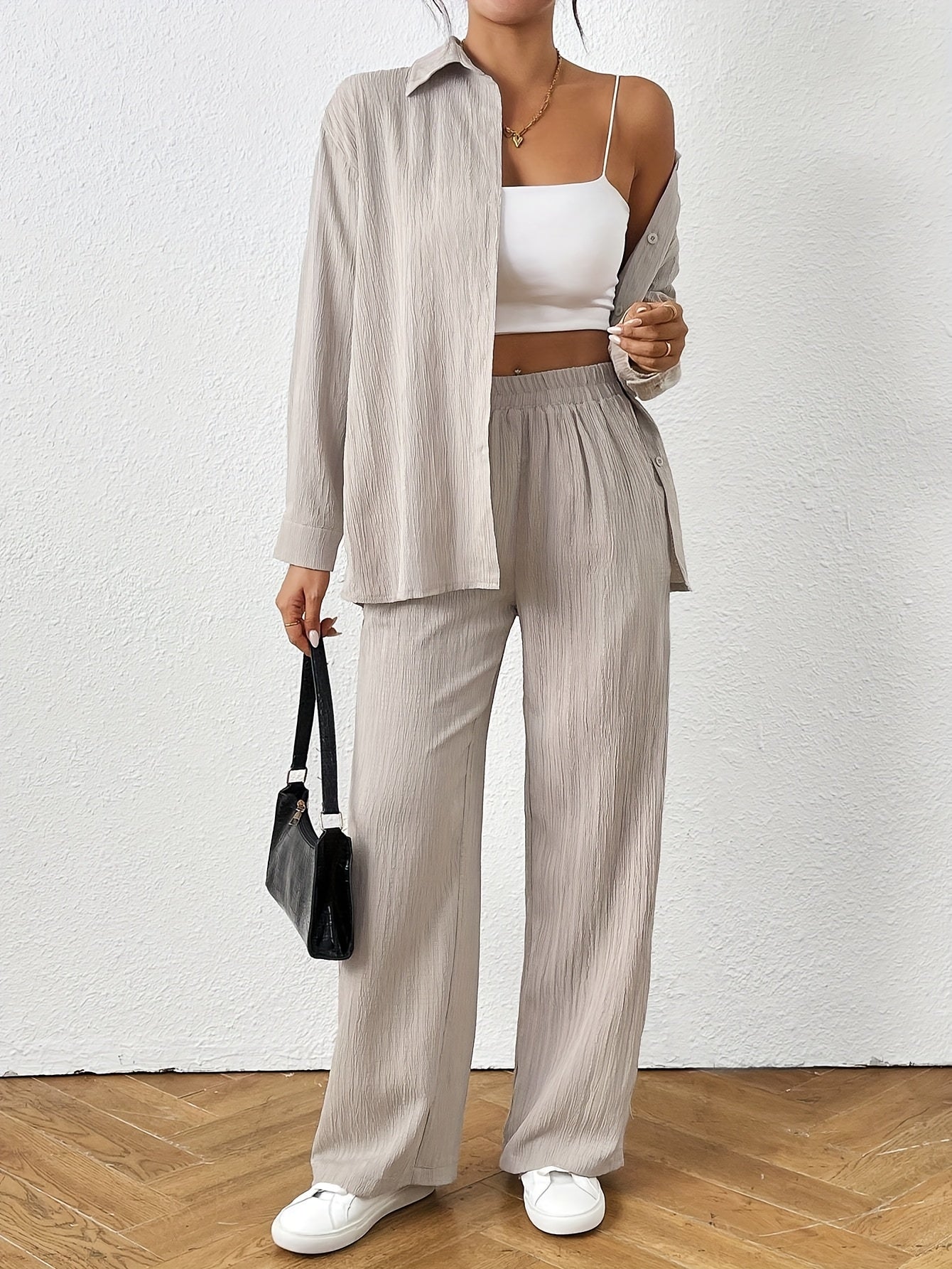 2pcs Women's Spring Autumn Casual Solid Color Long Sleeve Shirt and Pants Set