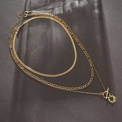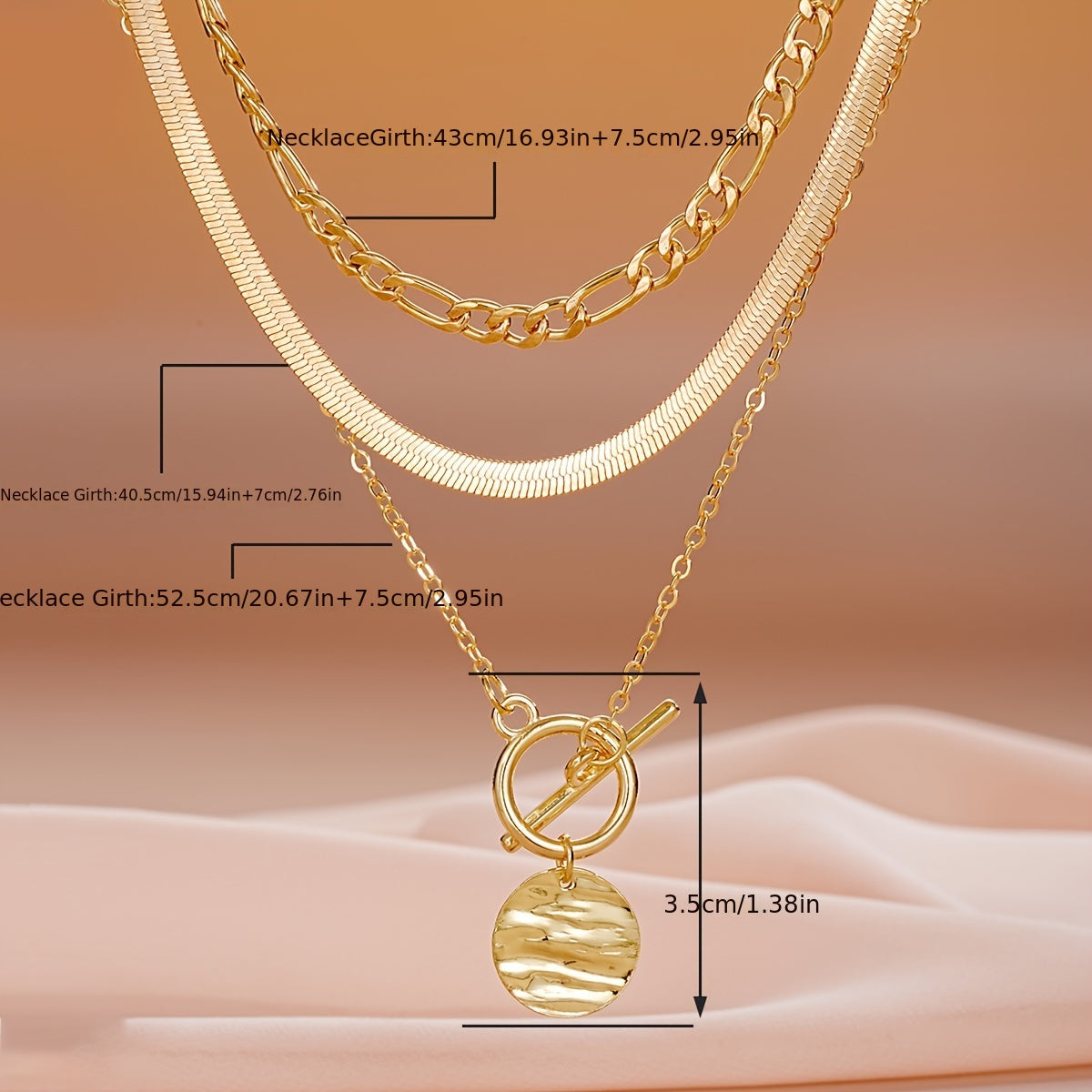 3-Piece Women's Layered Necklace Set, Simple Laminated Snake Bone Chain with Coin Pendant, Zinc Alloy, Vacation & Casual Dating Style Accessory, Multi-Style Combo