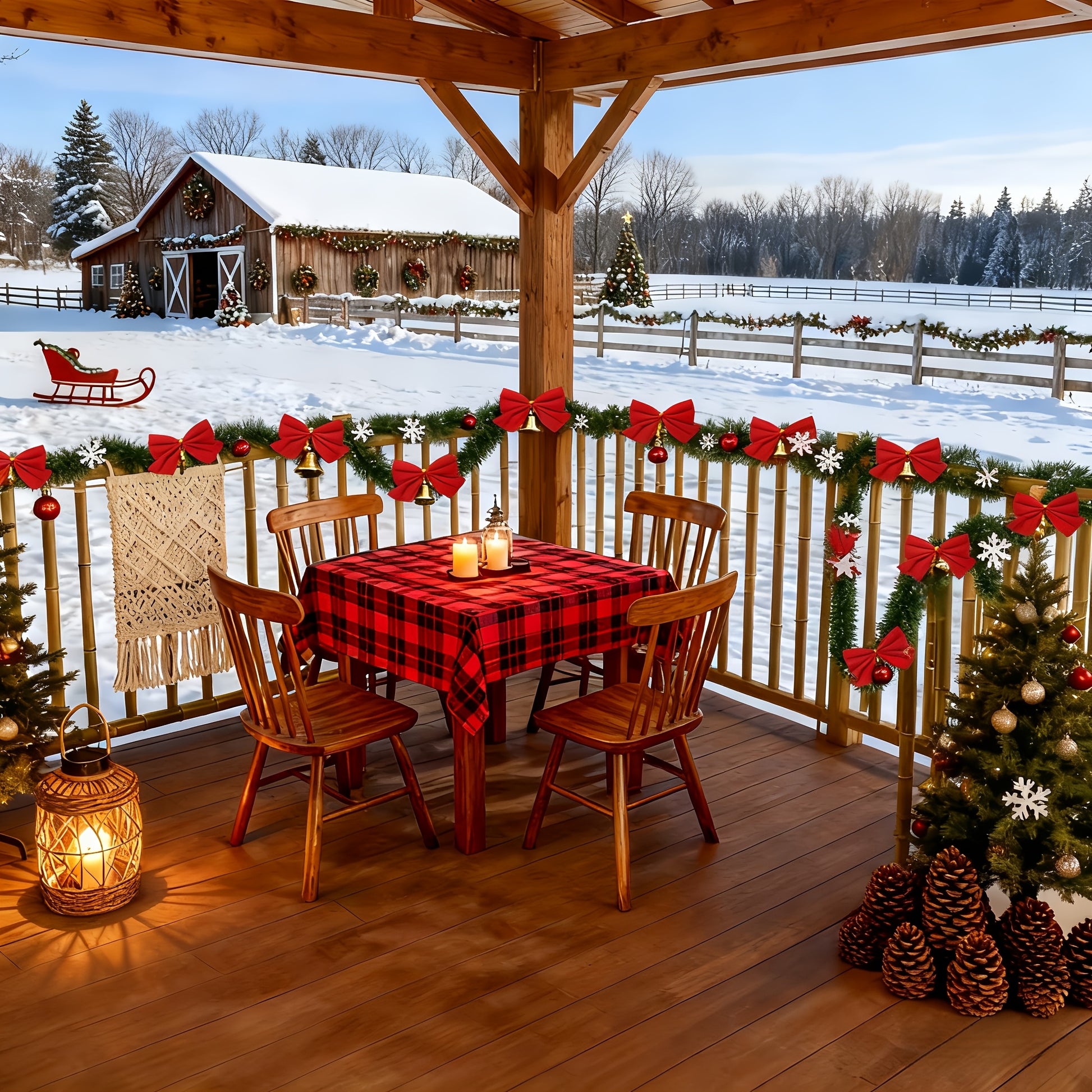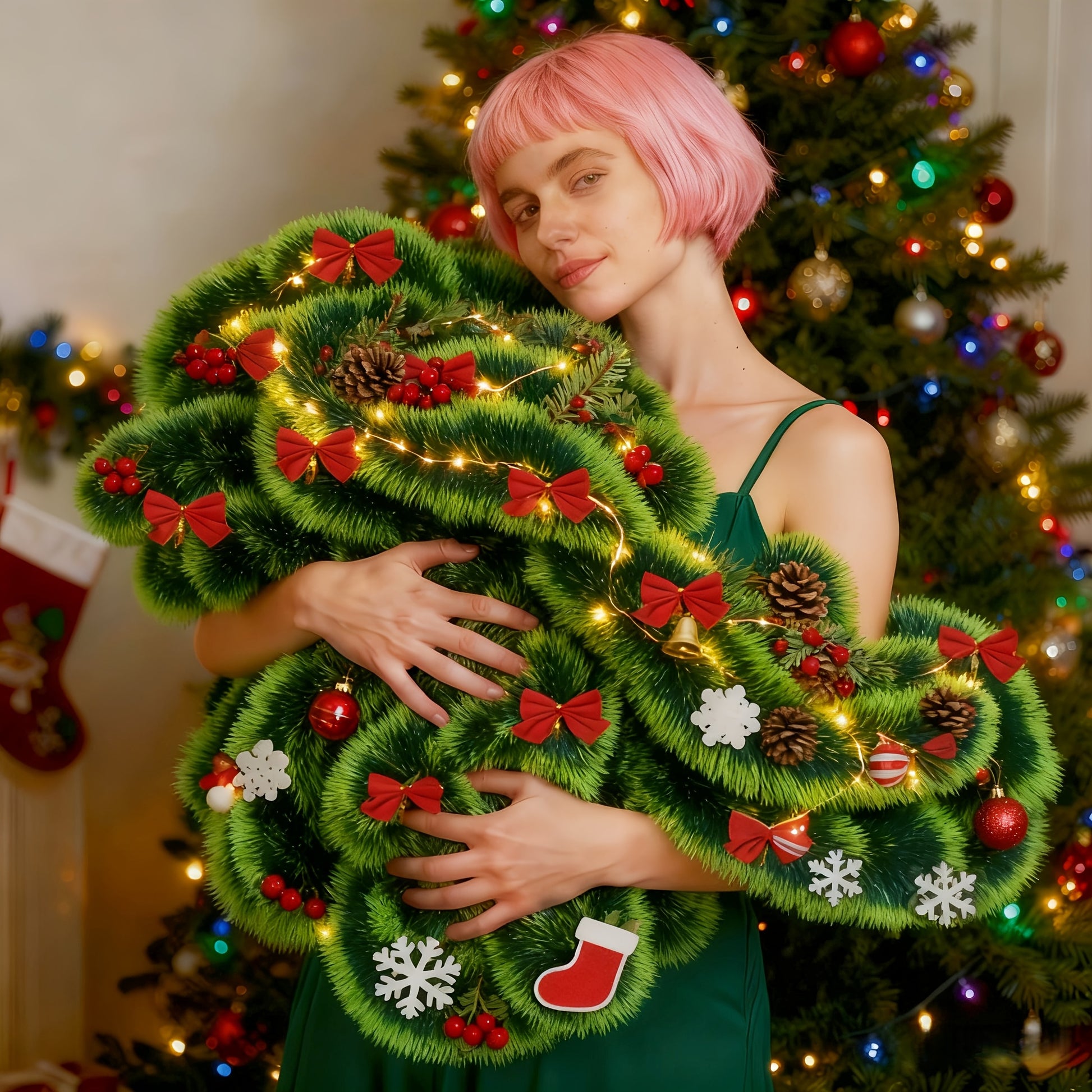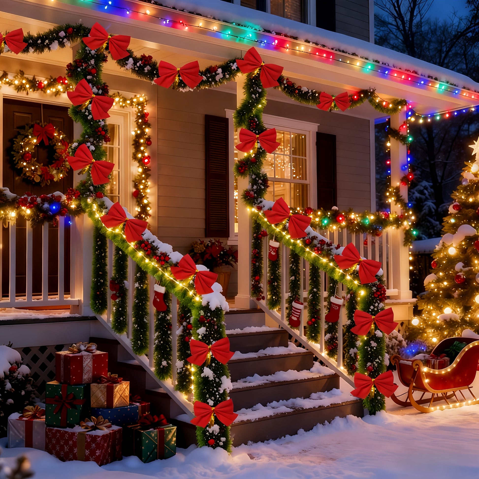 314.96-inch 40pcs Set with Red Bows - Premium Winter Dark Green Christmas Vine Spring Decoration | No Lights - Artificial Plastic Material Metallic Foil Faux Garland Plant | Suitable for Christmas, New Year, Thanksgiving Part