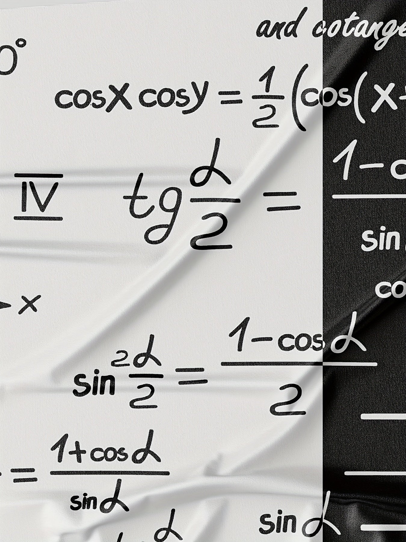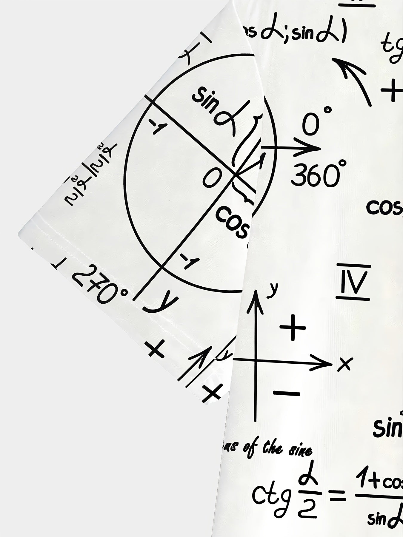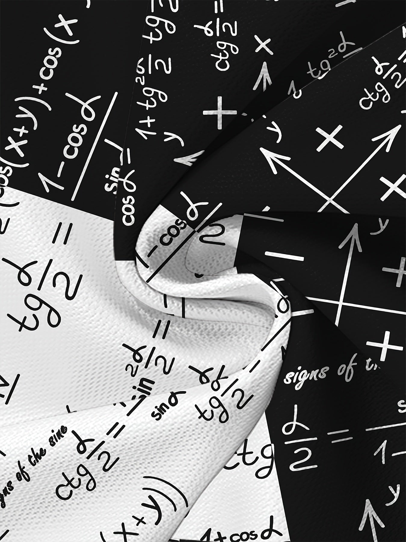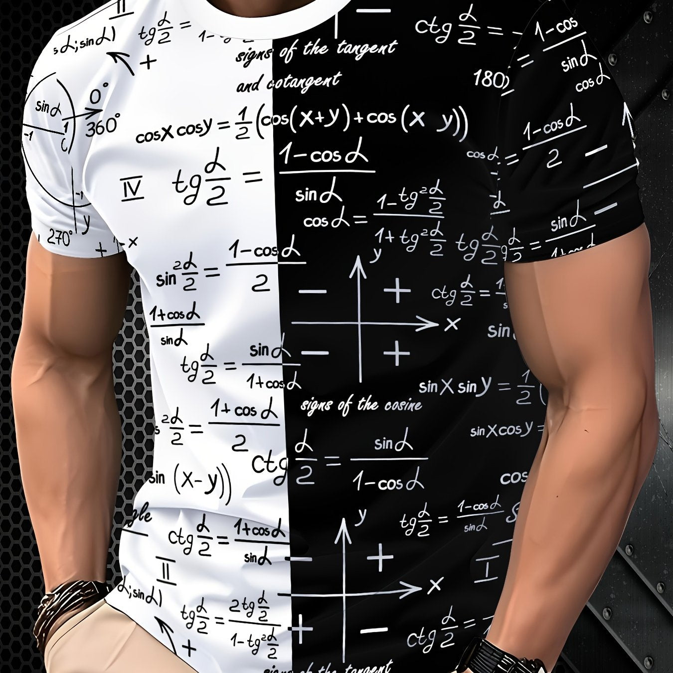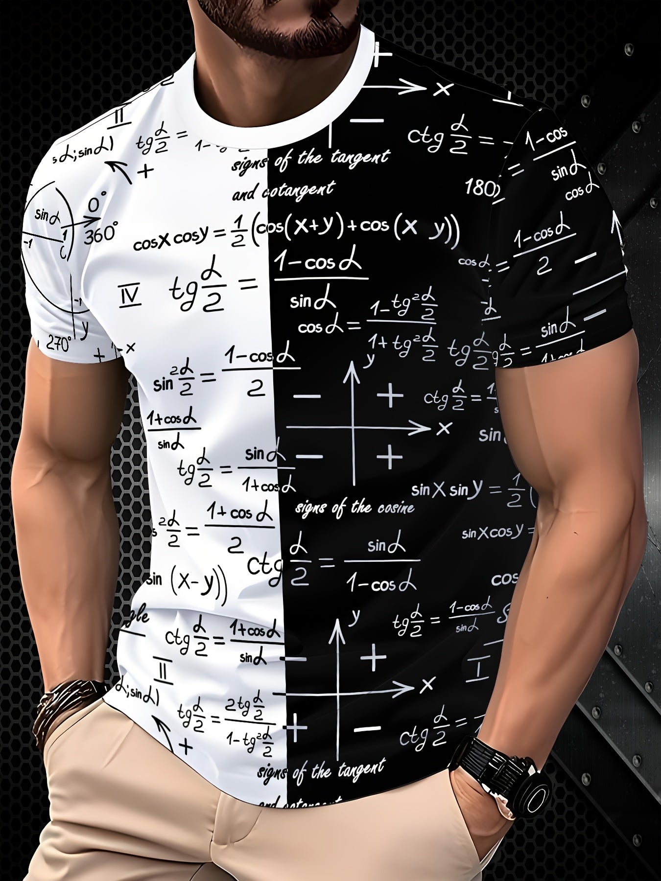 3D Fashionable Short Sleeve T-Shirt for Men - White with Black and Golden Mathematical Formulas Print, Crew Neck, Regular Fit, All-Season Comfort