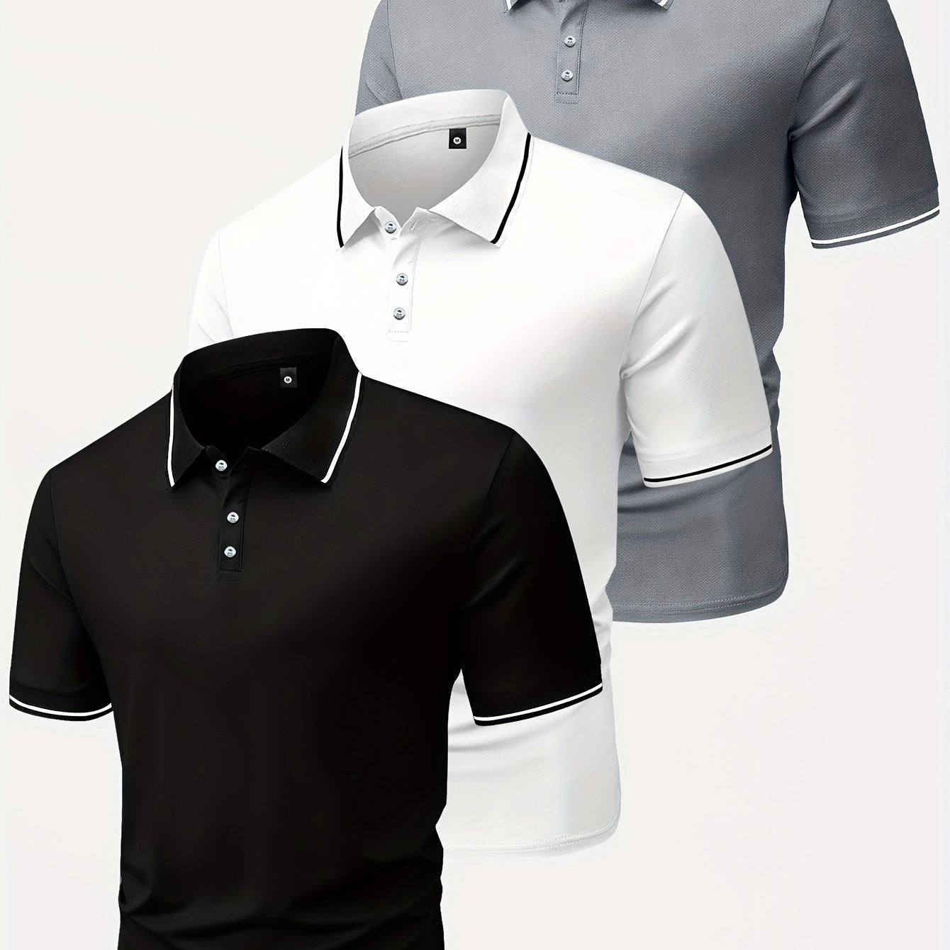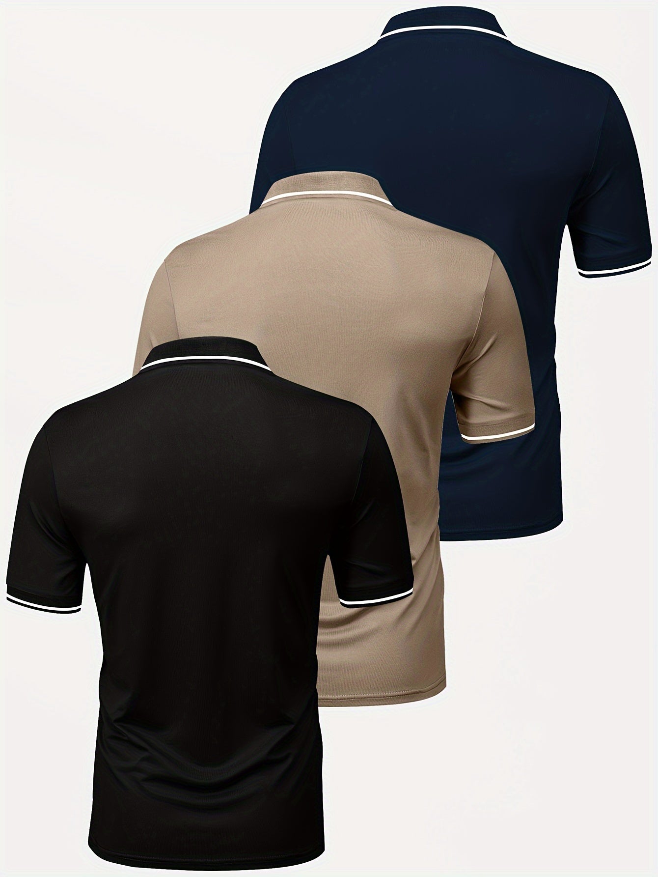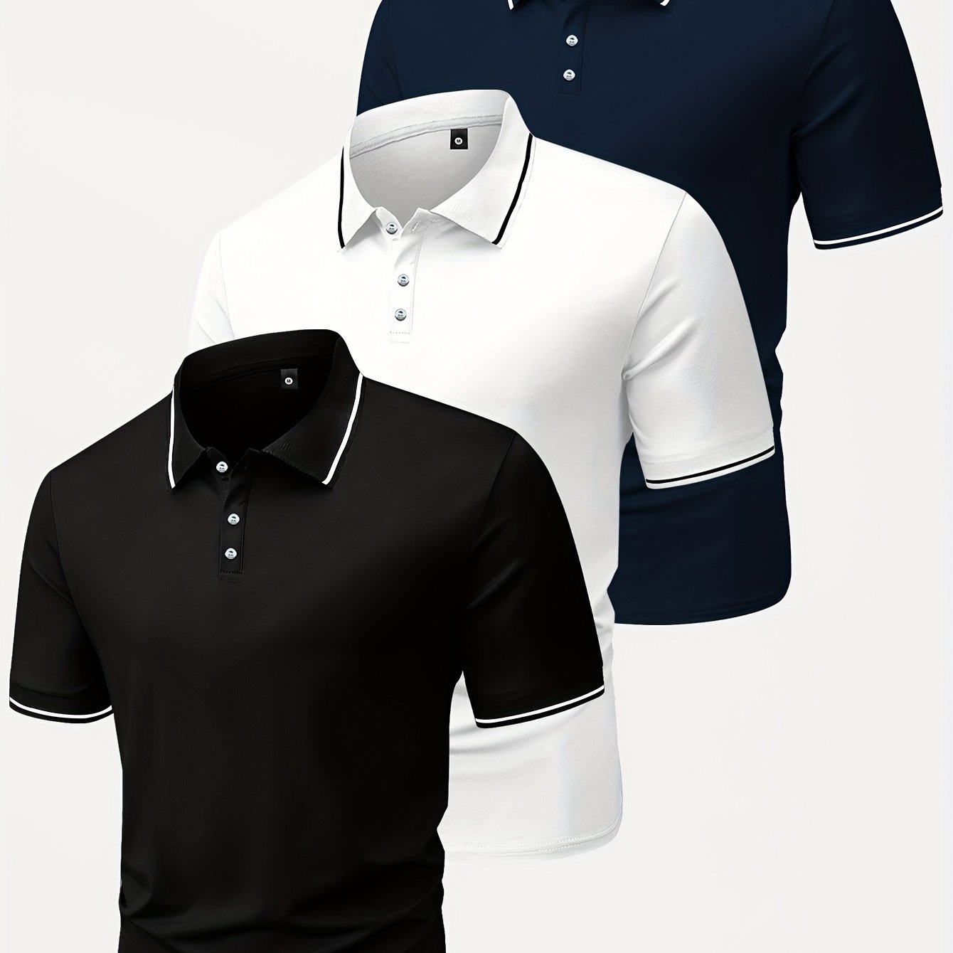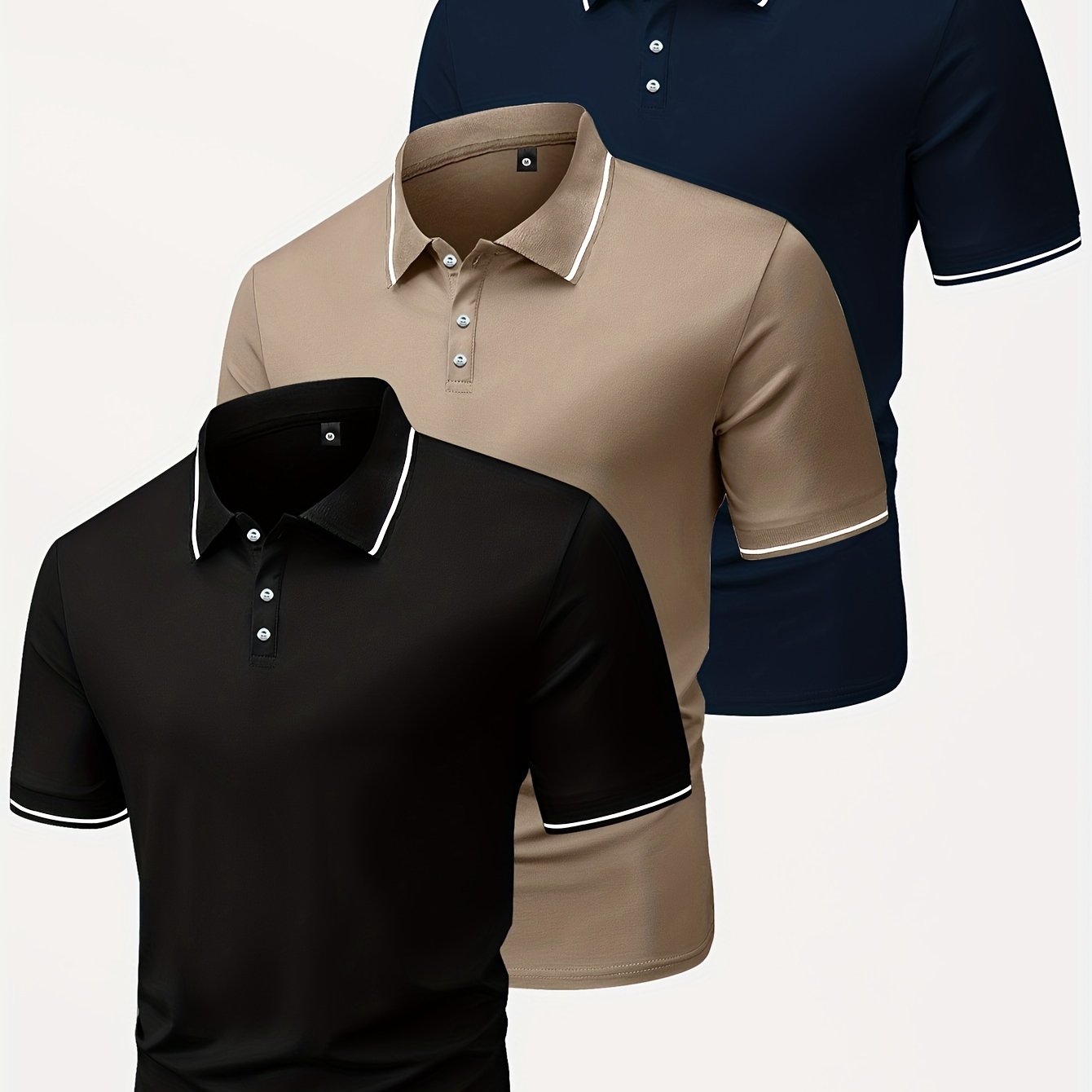 3pcs Men's Casual Fashion Shirts - Breathable Polyester, Short Sleeve, Button-Up with Classic Collar - Machine Washable, Summer Essentials in Black, White, and Beige