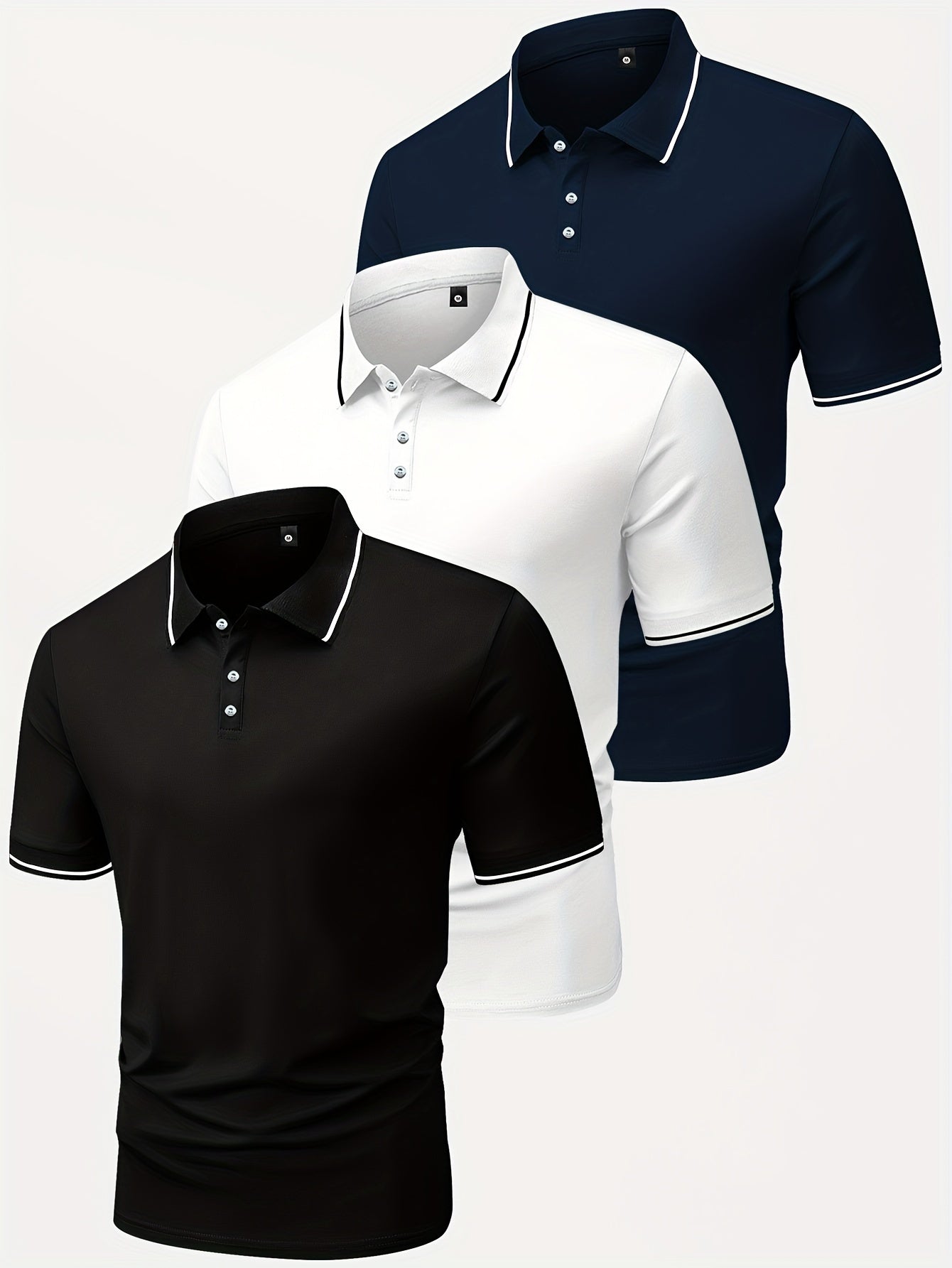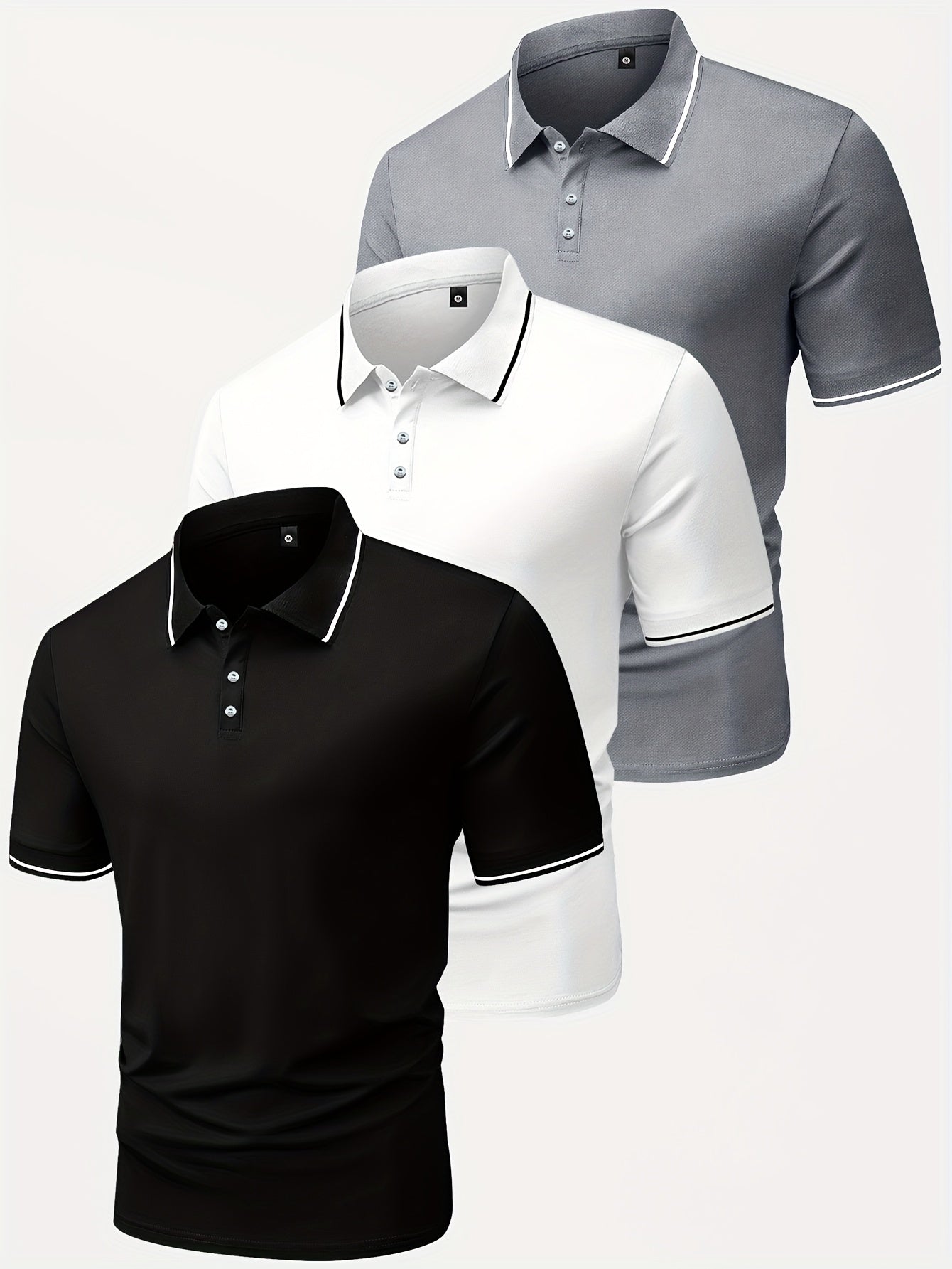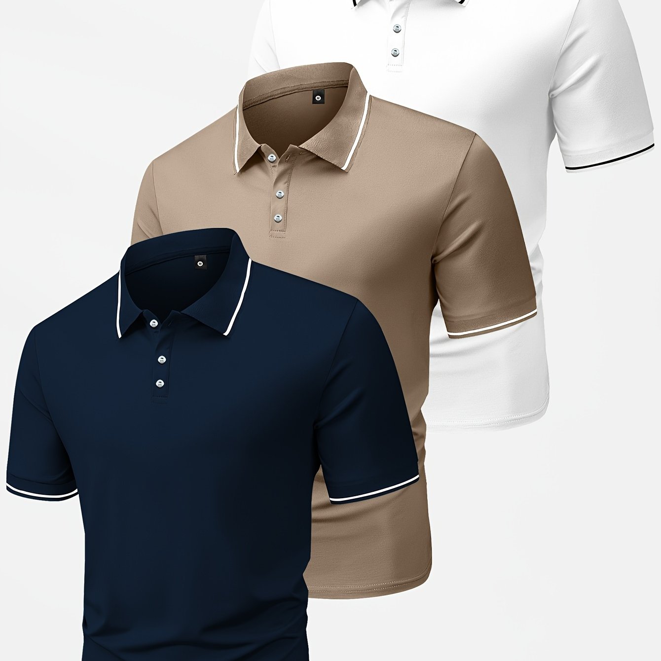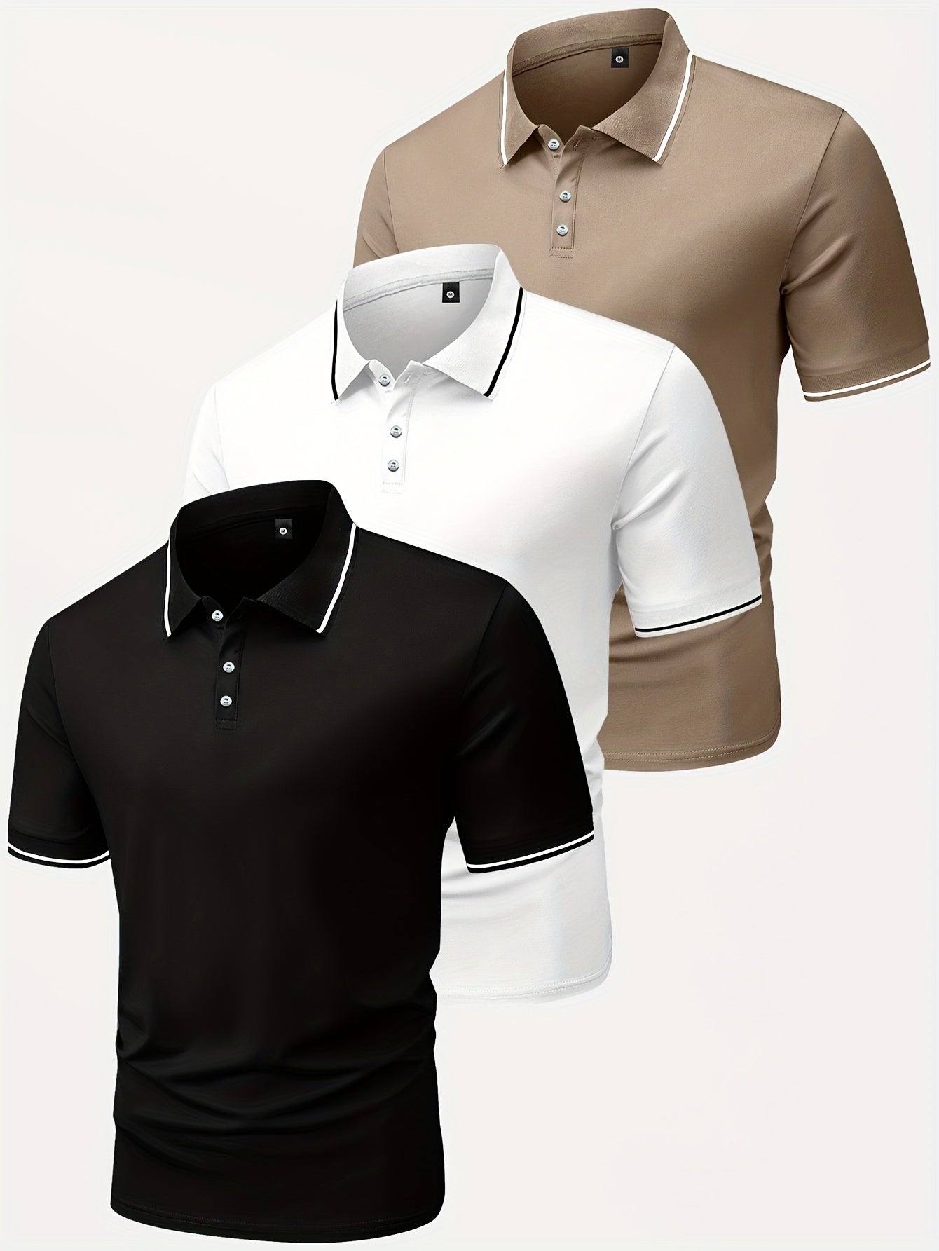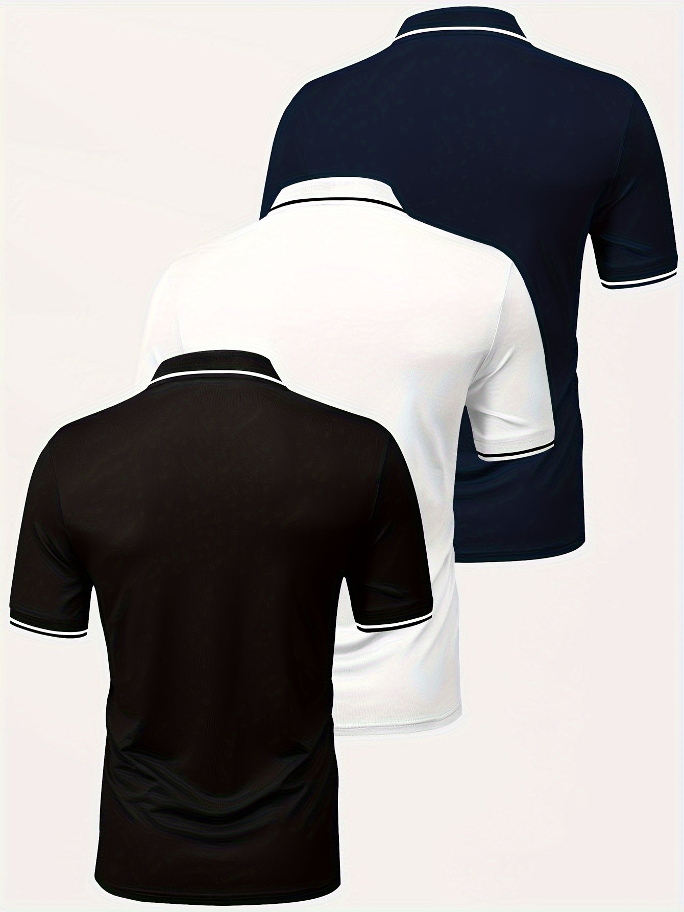 3pcs Men's Casual Fashion Shirts - Breathable Polyester, Short Sleeve, Button-Up with Classic Collar - Machine Washable, Summer Essentials in Black, White, and Beige