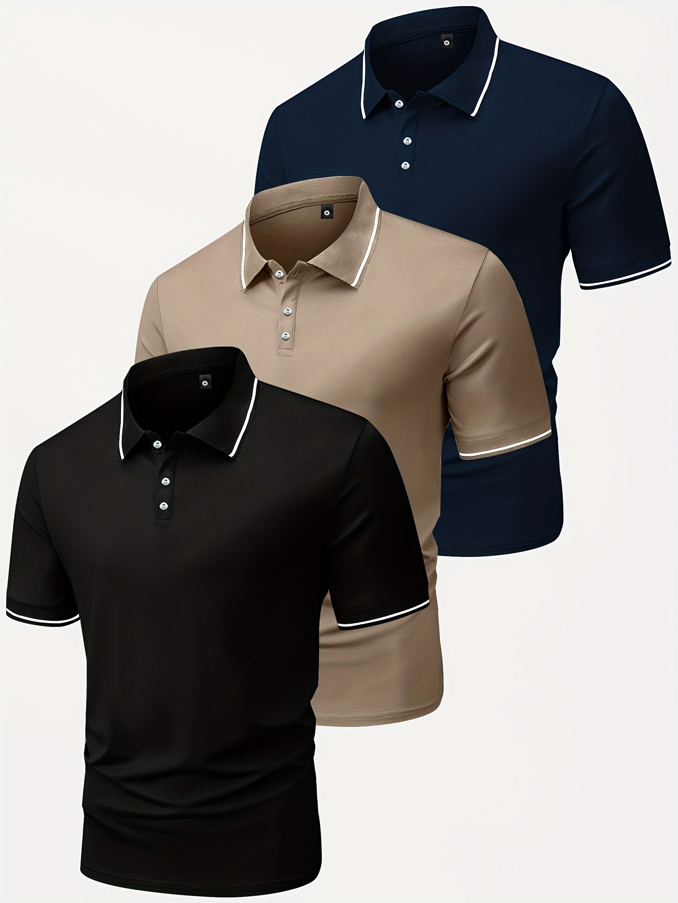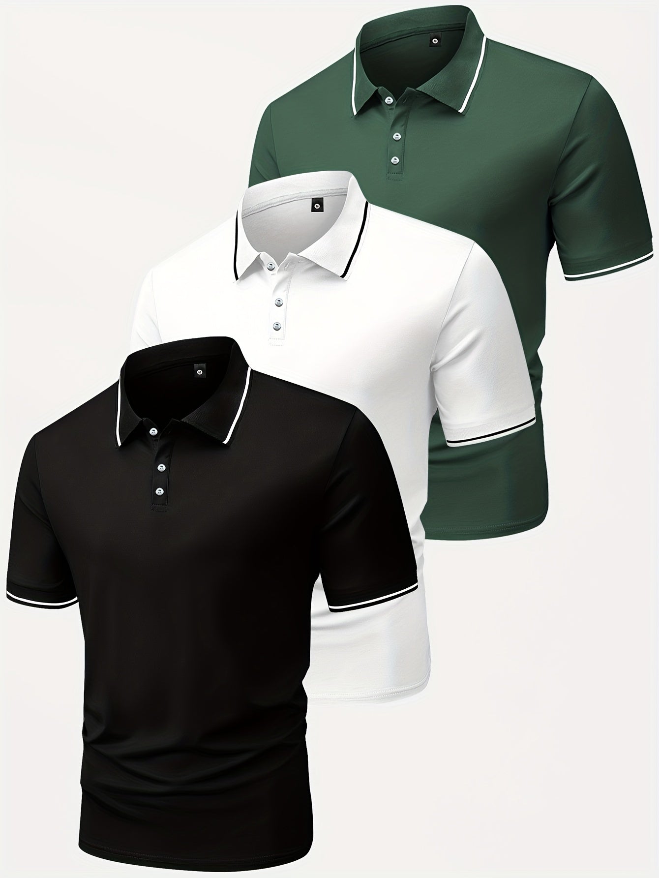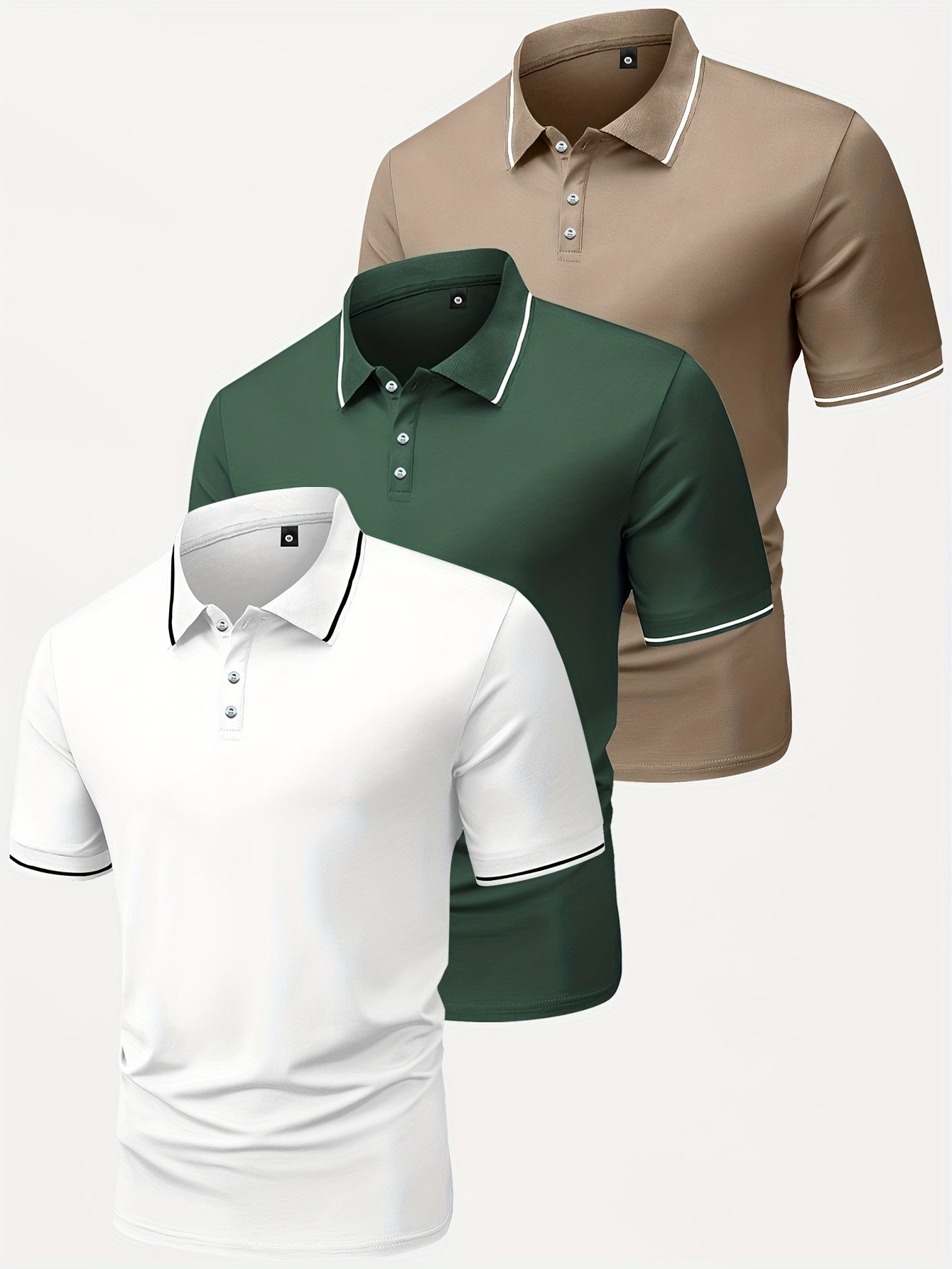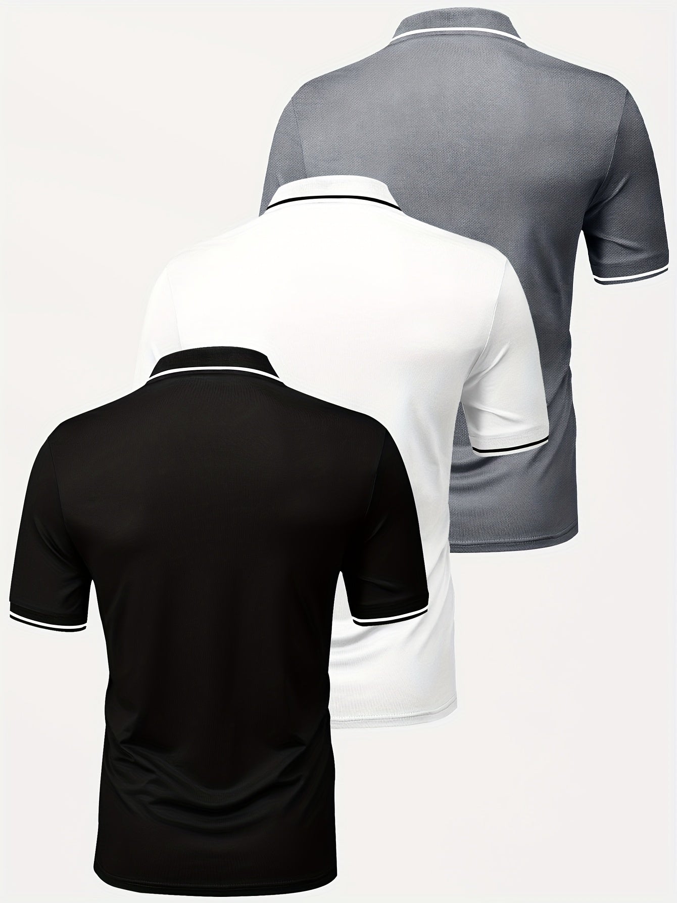 3pcs Men's Casual Fashion Shirts - Breathable Polyester, Short Sleeve, Button-Up with Classic Collar - Machine Washable, Summer Essentials in Black, White, and Beige