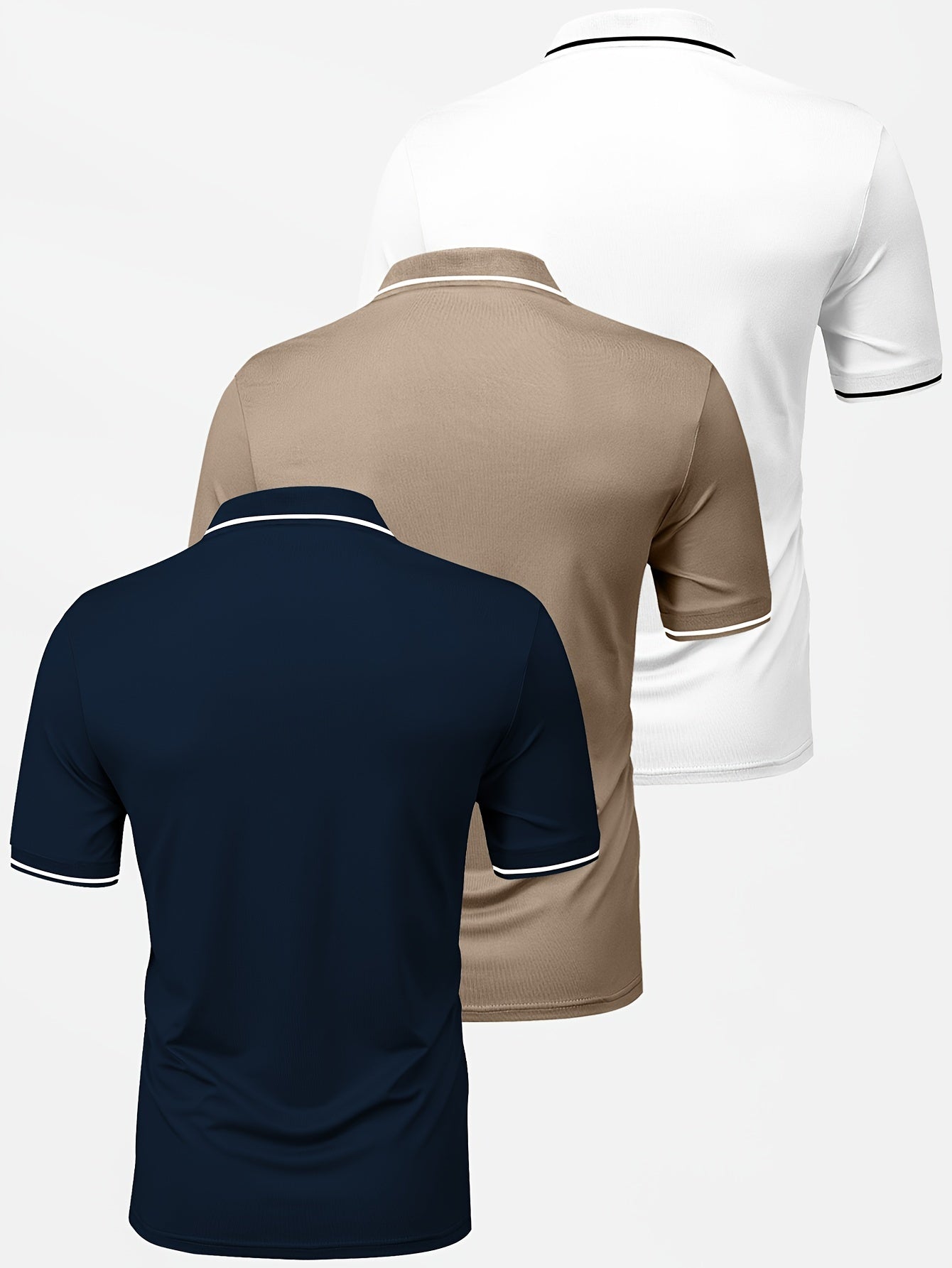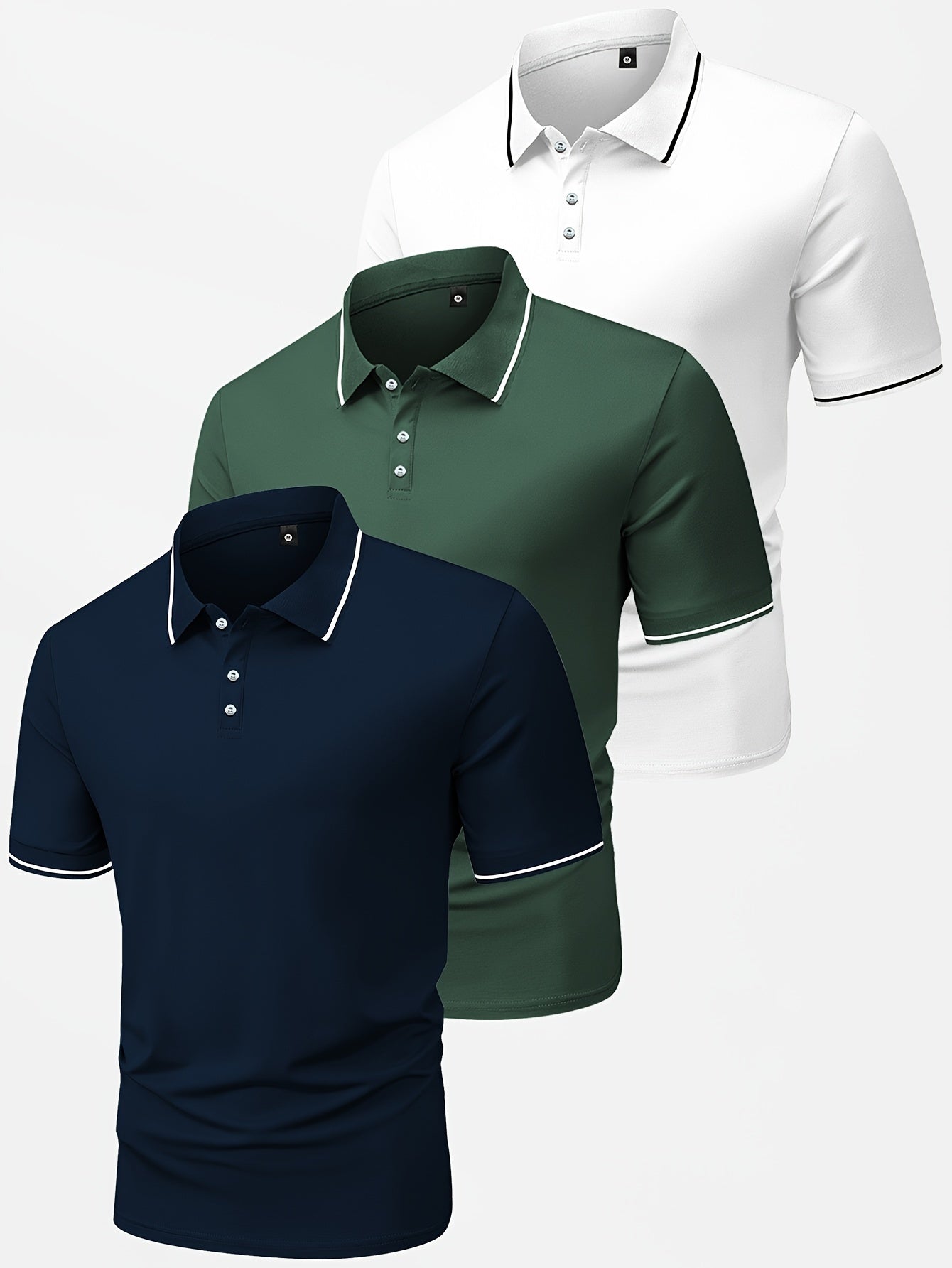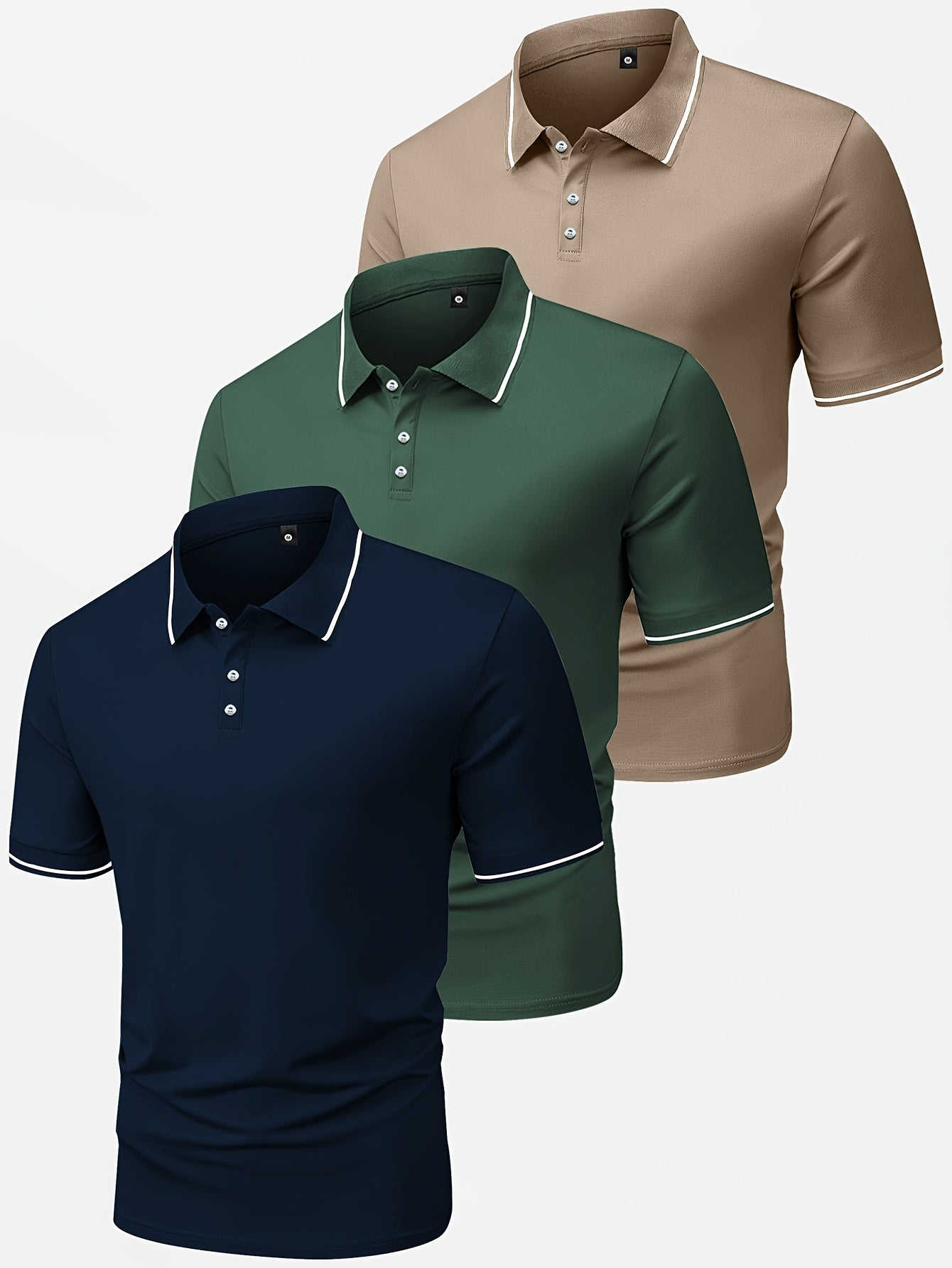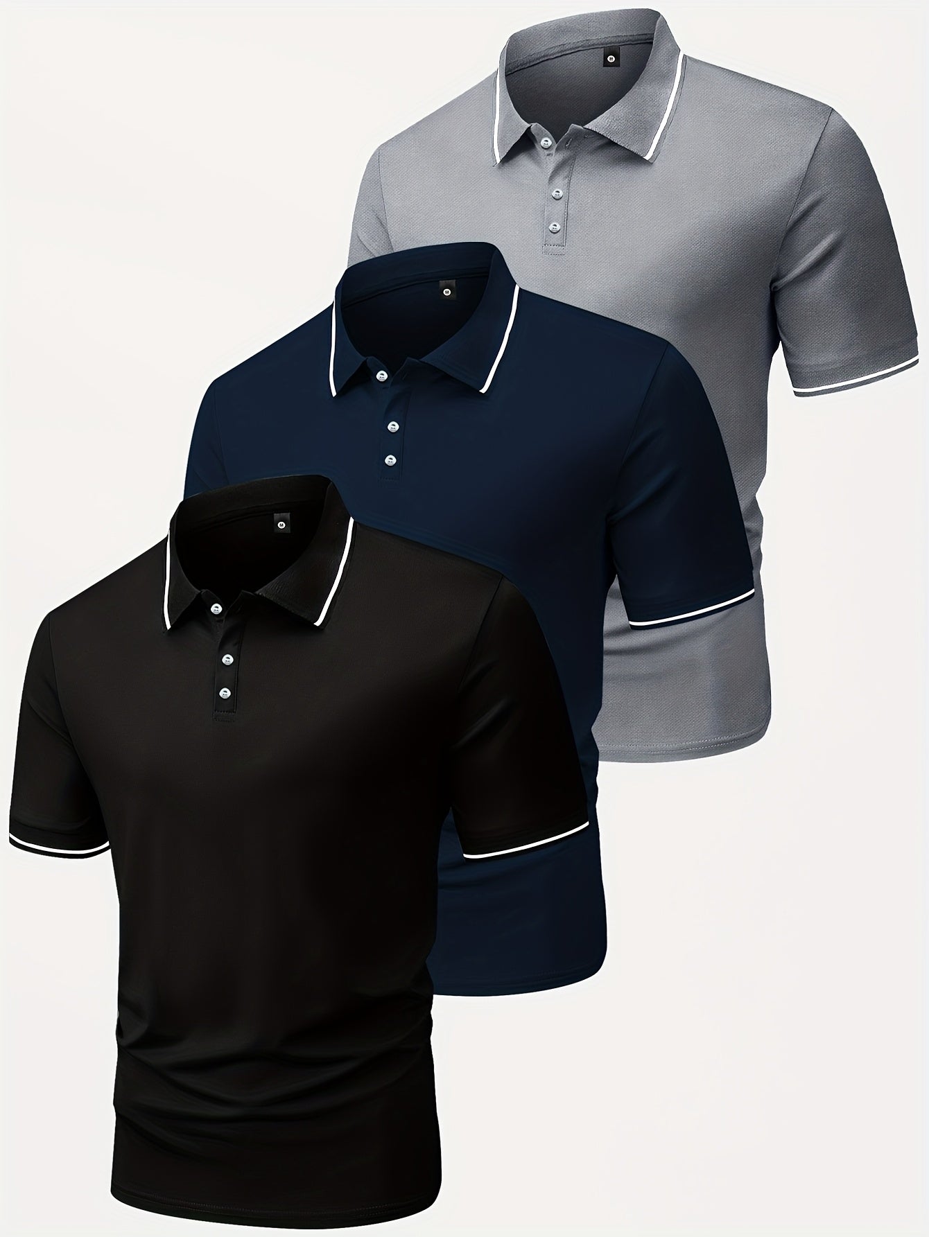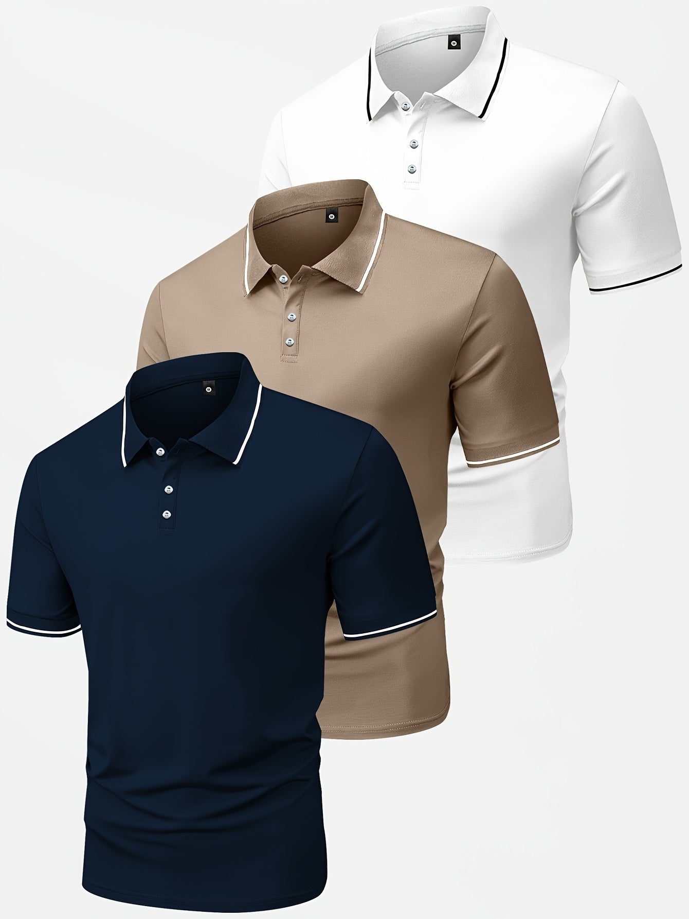 3pcs Men's Casual Fashion Shirts - Breathable Polyester, Short Sleeve, Button-Up with Classic Collar - Machine Washable, Summer Essentials in Black, White, and Beige