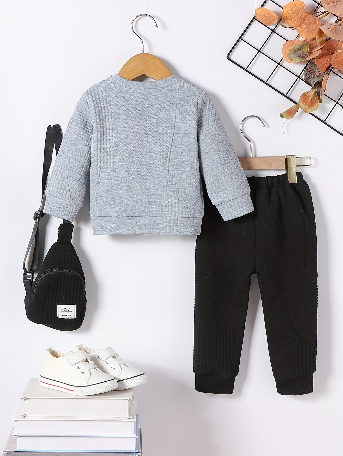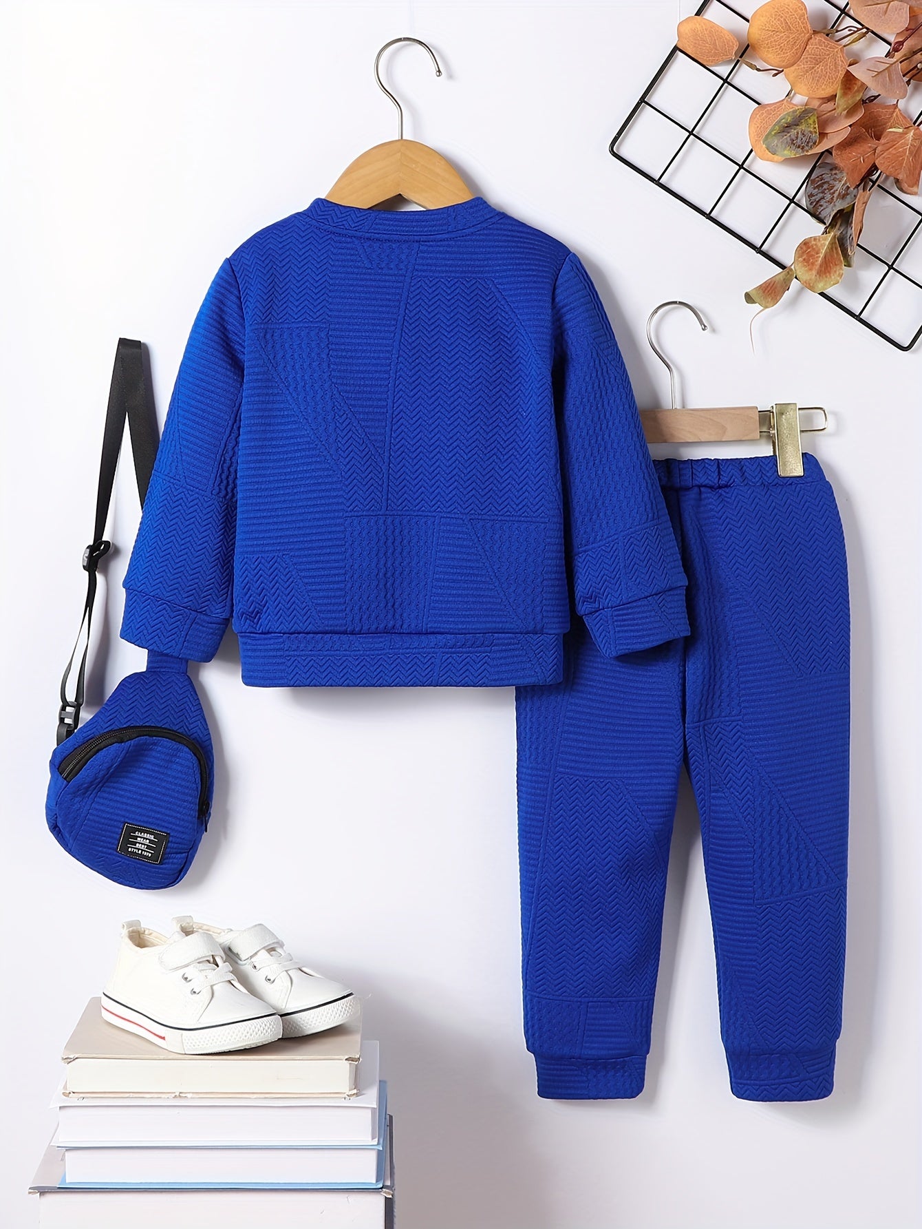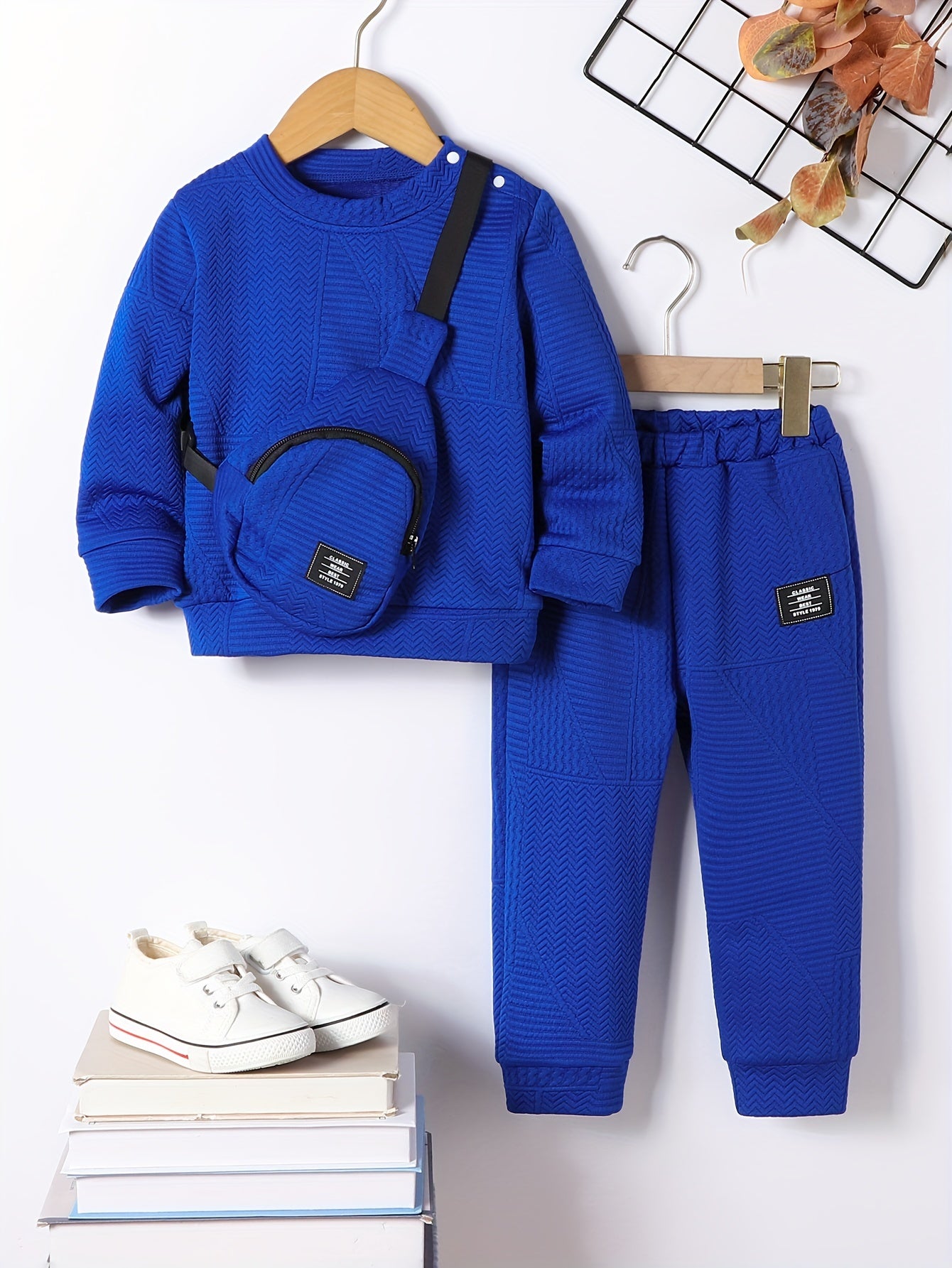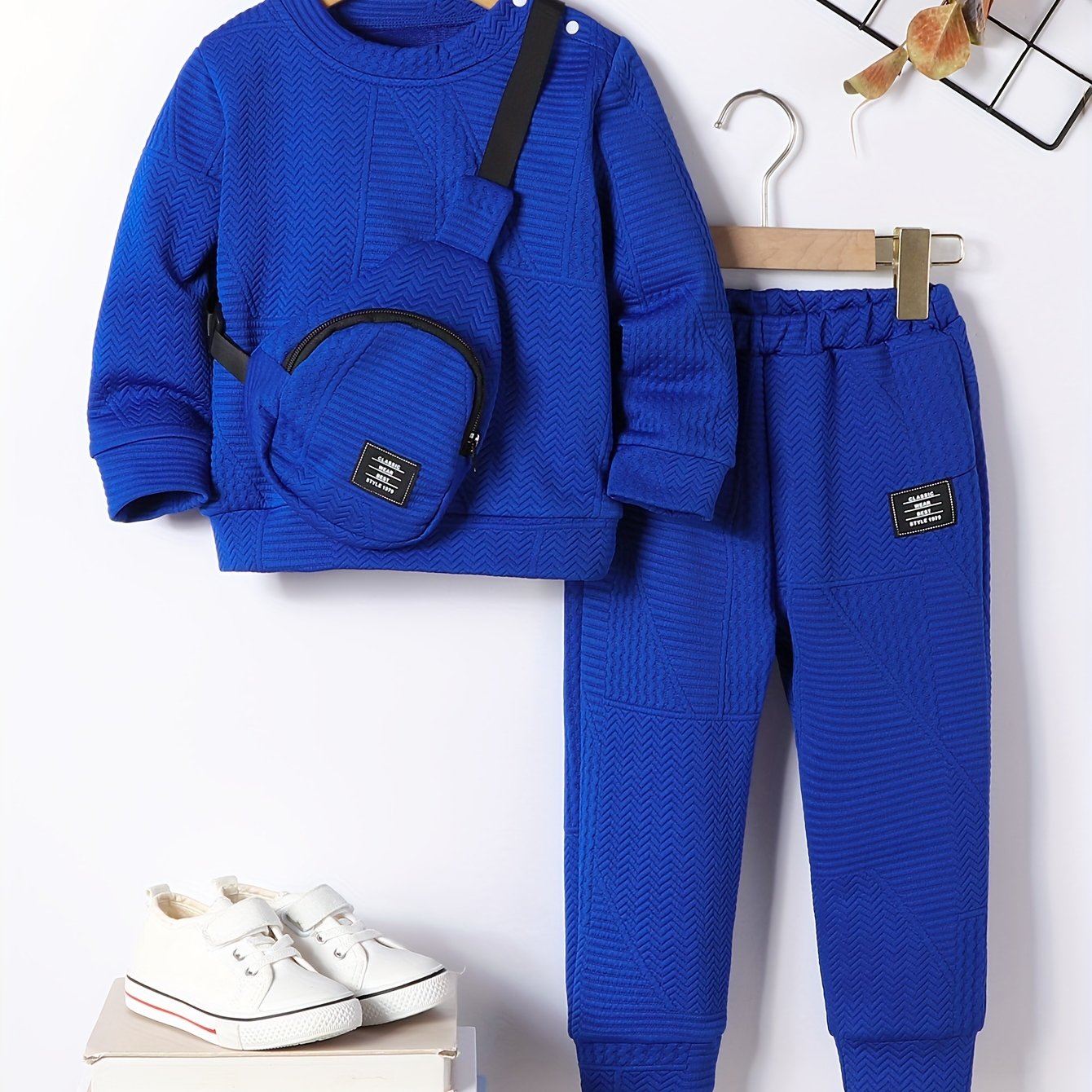 3pcs Set for Boys: New Autumn Shoulder Button Plain Round Neck Sweater, Trousers and Crossbody Bag, Casual and Fashionable Three-piece Set