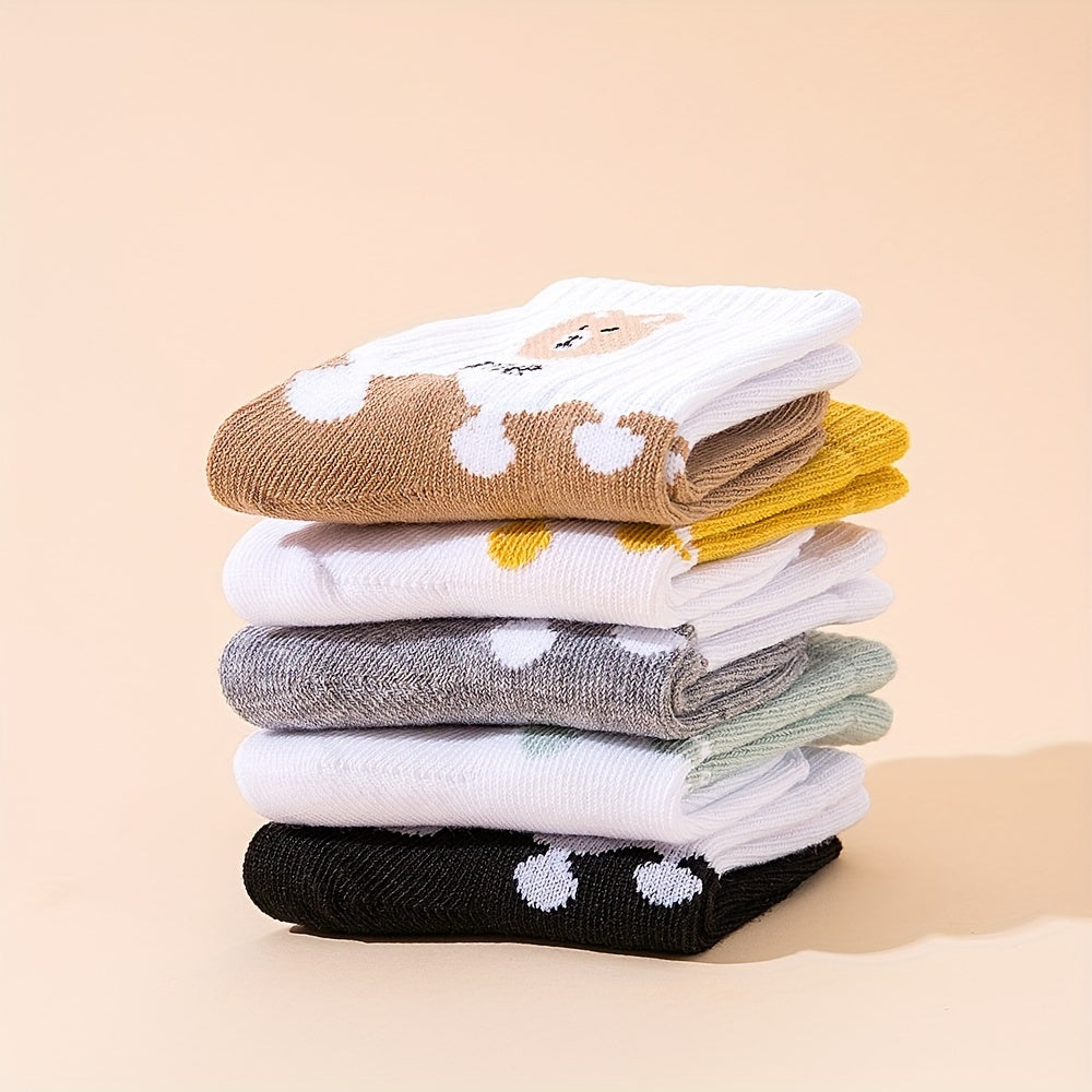 5 Pairs Cute Cartoon Bear Ankle Socks for Baby Boys & Girls - Soft, Stretchy Polyester Blend, Perfect for All Seasons