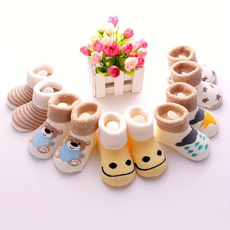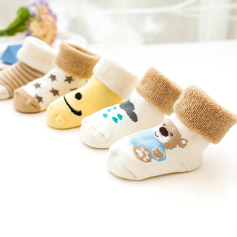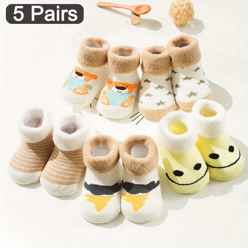 5 Pairs Toddler's Novelty Cartoon Cute Floor Socks, Cotton Breathable Thickened Warm Socks, Boys Girls Kids Socks For Autumn And Winter