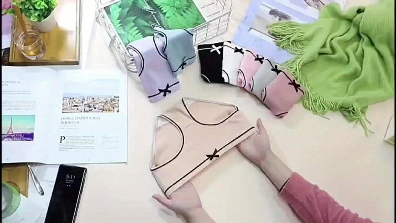 5pcs Chic Black Mid-Rise Women's Briefs with Cute White Bow Detail - Comfortable, Breathable & Sexy Ribbed Polyester Blend Panties, Hand Washable