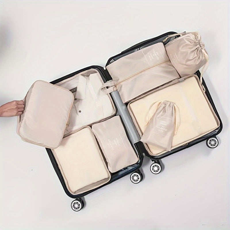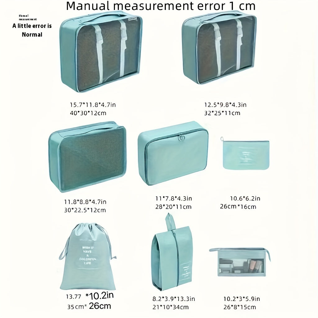 7pcs Pink Travel Organizer Set - Durable Polyester Packing Cubes with Inspirational Quotes, Includes Clothes, Underwear, Shoe, Cosmetic & Toiletry Bags for Efficient & Stylish Storage
