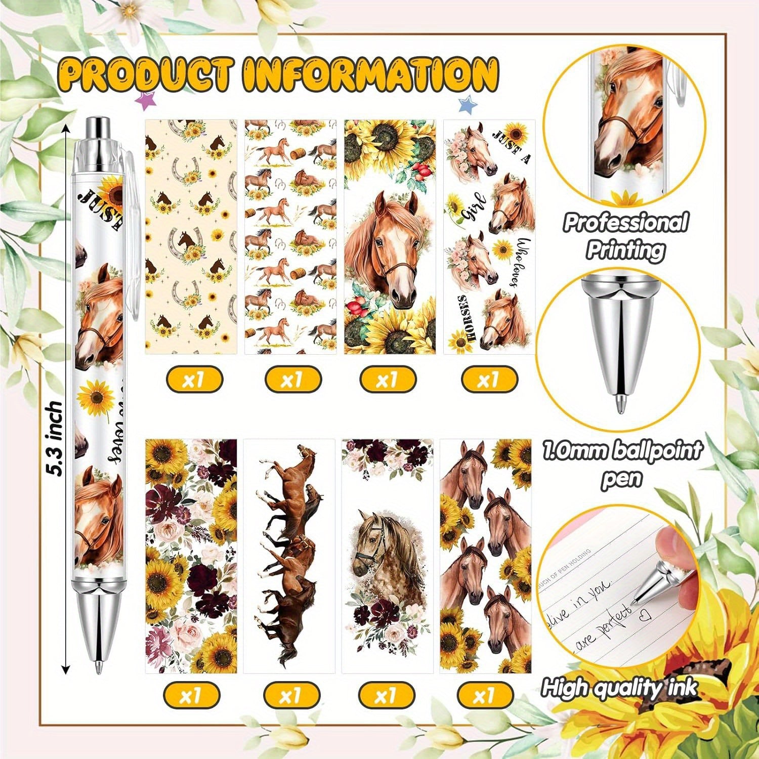 8pcs Ballpoint Pens for Women 1.00mm Cute Black Ink Fancy Pens Fine Point Smooth Writing Office Supplies(Horse)