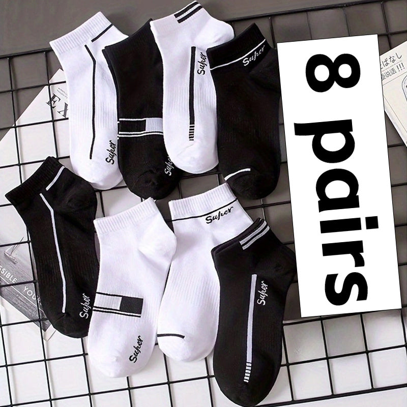 8pcs Men's Low-Cut Socks - Stylish & Comfortable, Breathable Polyester-Spandex Blend, Durable with Easy Care, Hand Washable, Fashionable Striped Design for Outdoor Wear, Novelty Socks