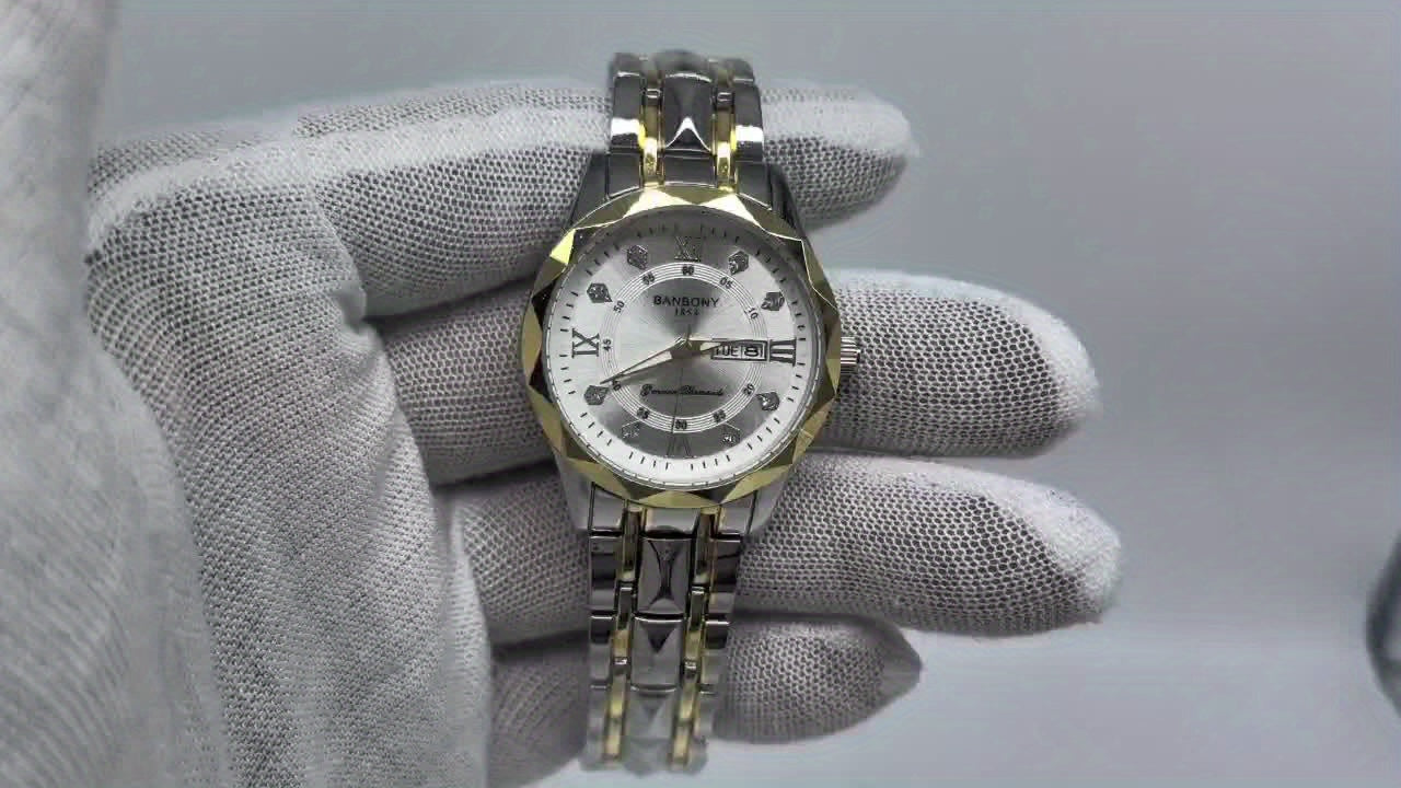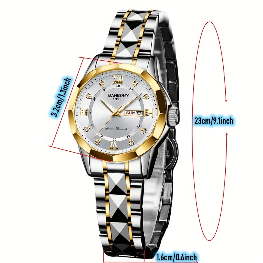 A BANBONY Fashion Brand Women'S Quartz Watch with a Stainless Steel Strap, Adorned with Rhinestones, IPX7 Waterproof, Luminous Display for The Week, Multifunctional Fully Automatic Casual Watch, Perfect Gift for Birthdays, Ho