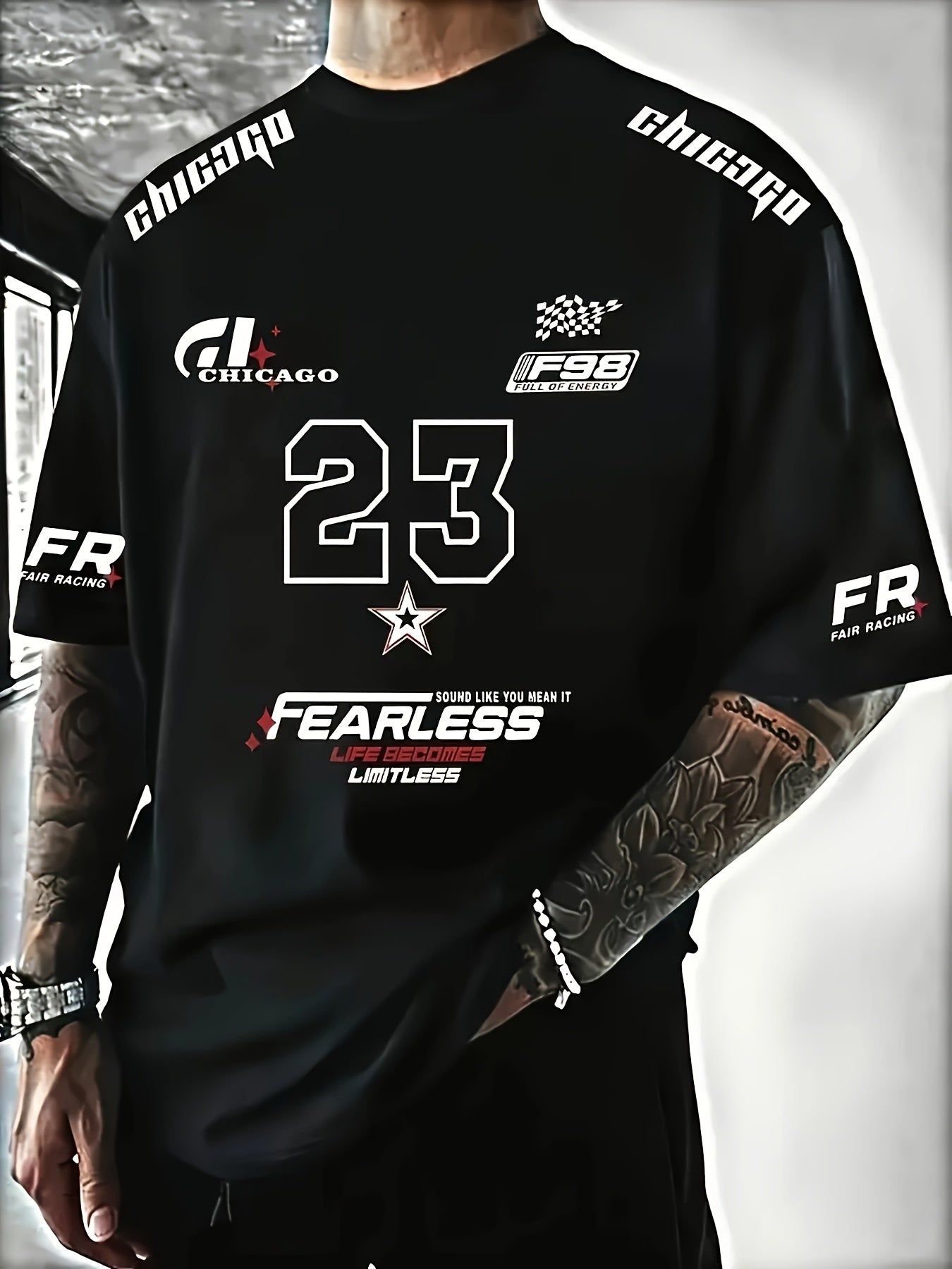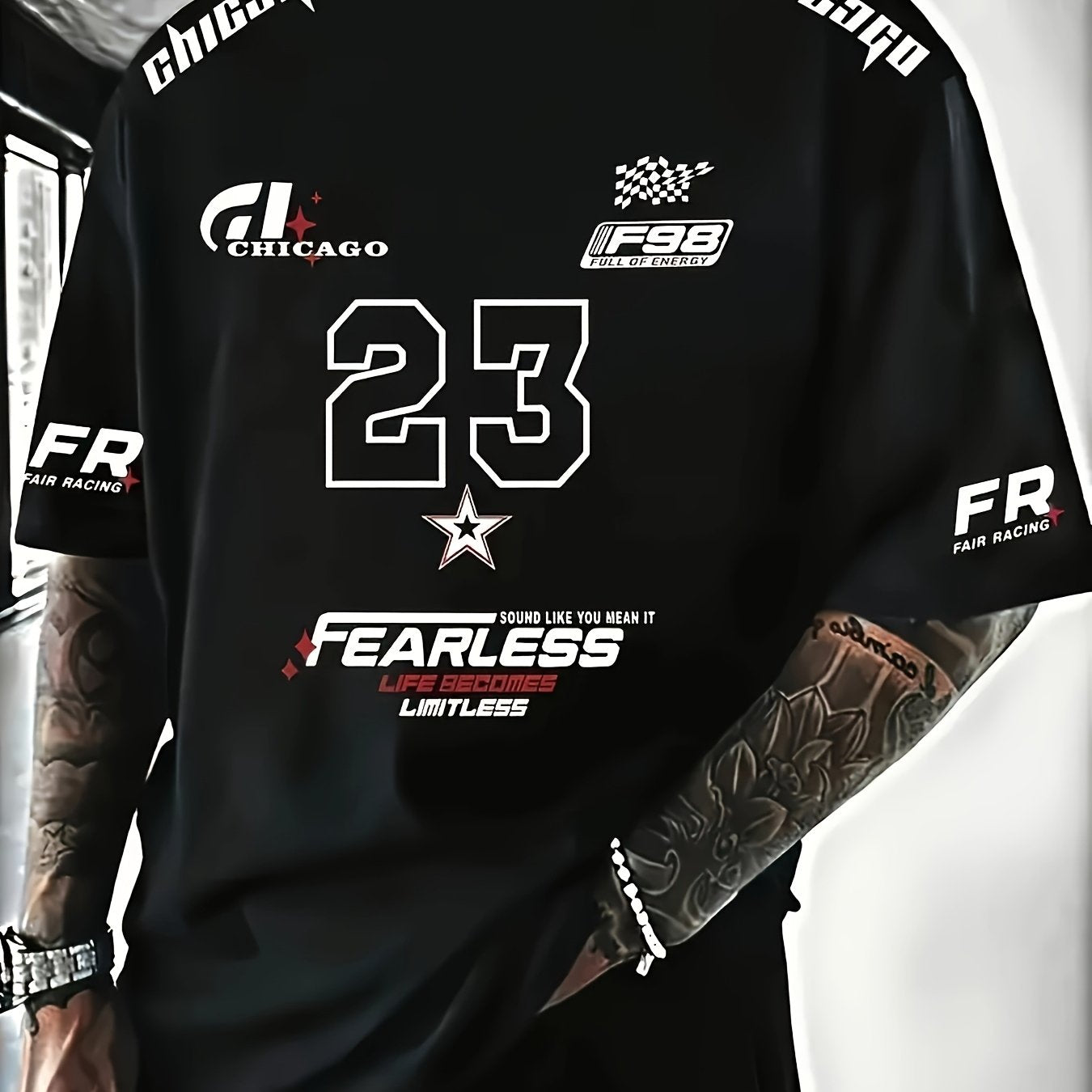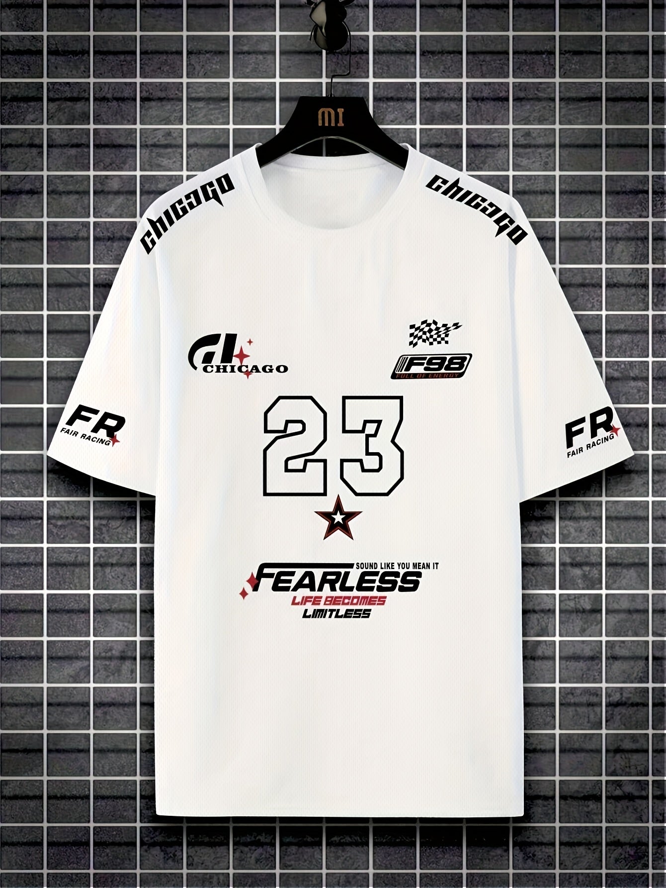 A Men'S Racing Icon #23 3D Print Short-Sleeve T-Shirt - Casual Streetwear, Breathable Sportswear, Round Neck, Summer Fashion Top, Unique Letter Print Design, Made of 100% Polyester, Slightly Stretchy Knitted Fabric, Suitable