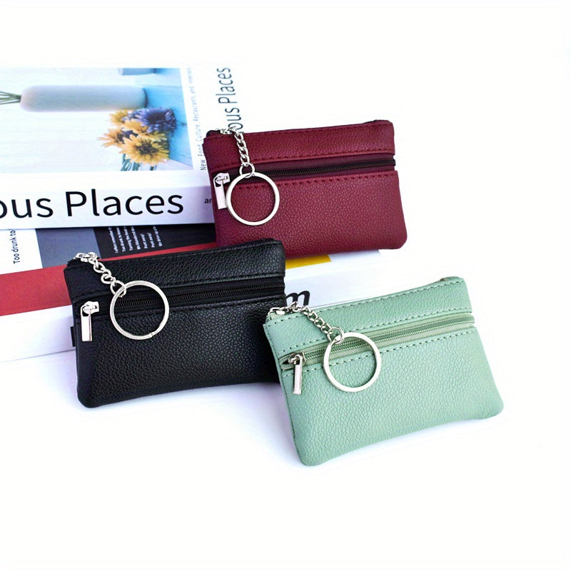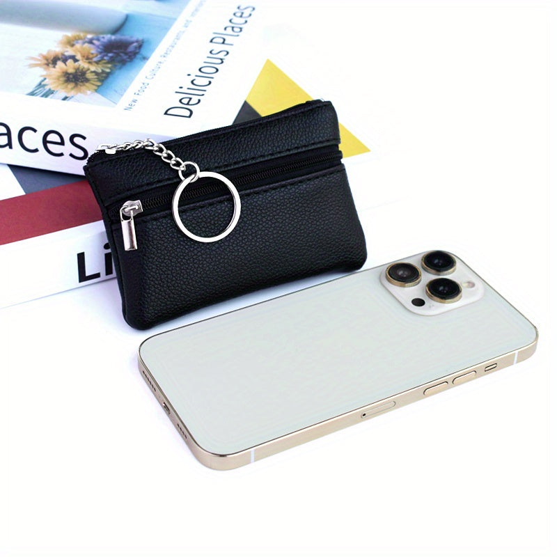 A Small Wallet with a Keychain That Holds Coins in a Mini Coin Purse.