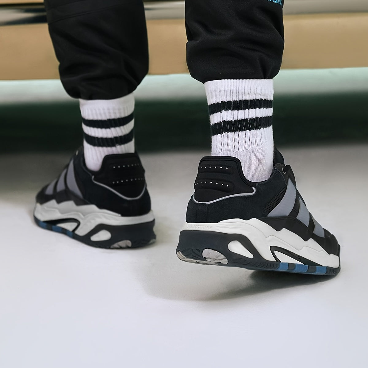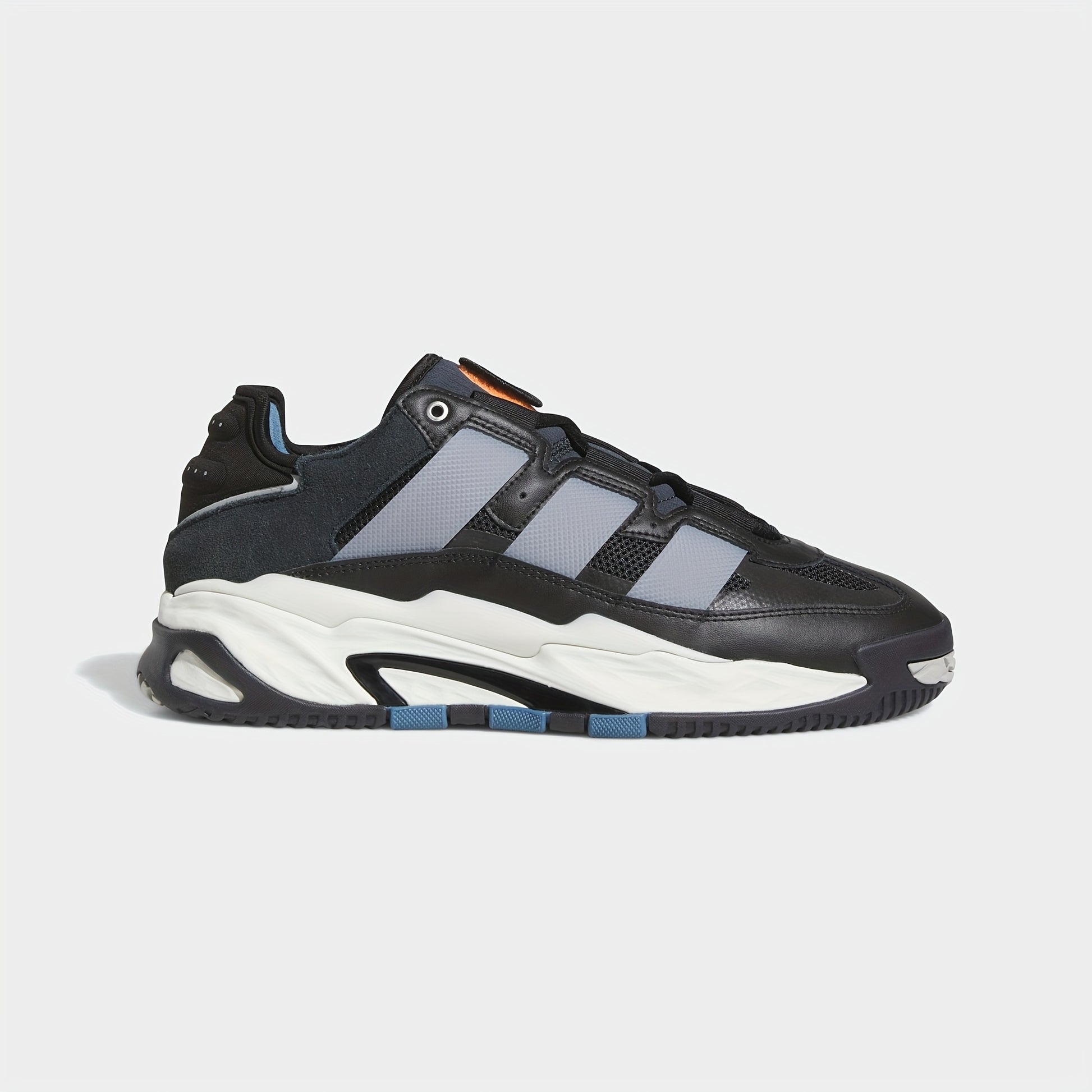Adidas Niteball Low-Top Sneakers for Men Women - Striped Casual Shoes with Genuine Leather Upper, Breathable Fabric Lining Rubber Sole, Black/Blue/Orange Accents (FZ5742), Athletic Footwear, Modern Triptych Design, Durabl