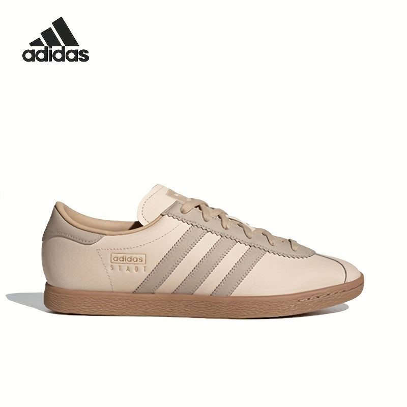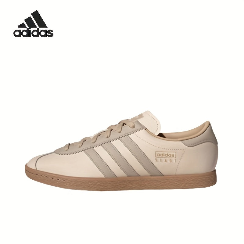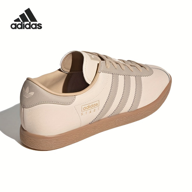 Adidas Originals Stadt Low-Top Sneakers - Slip-Resistant Rubber Sole, Genuine Leather Upper, EVA Cushioned Insole, Striped Design, Beige/Brown, Unisex All-Season Casual Shoes (JR8313), Shoe Insoles, Slipresistant Footwear, Mi