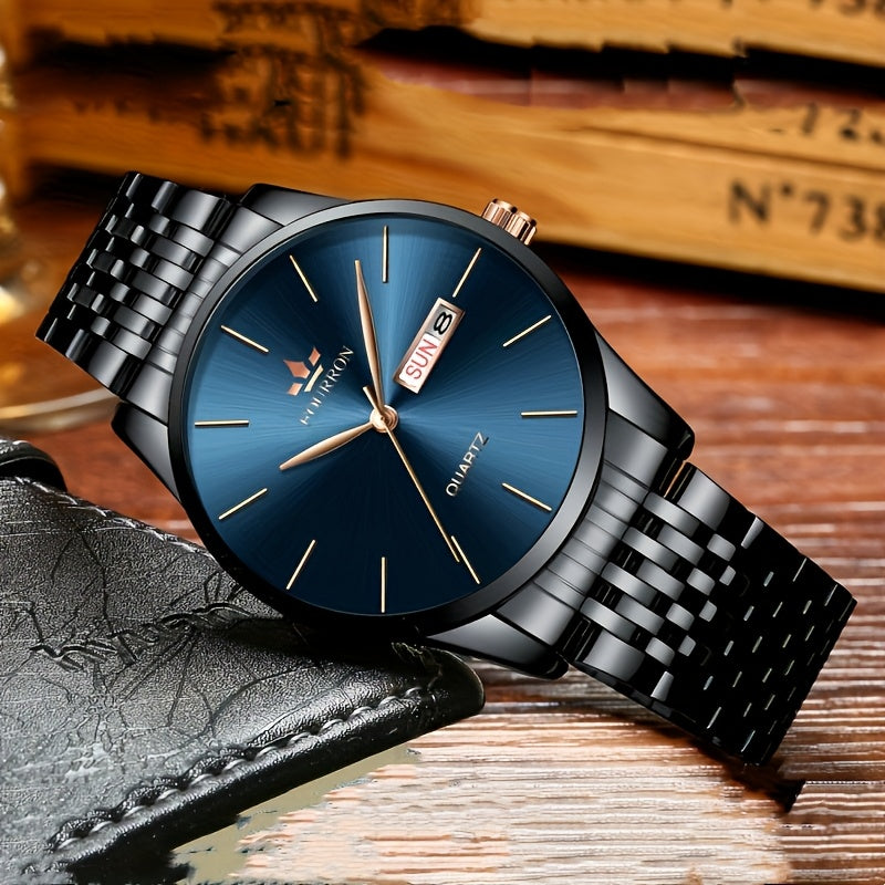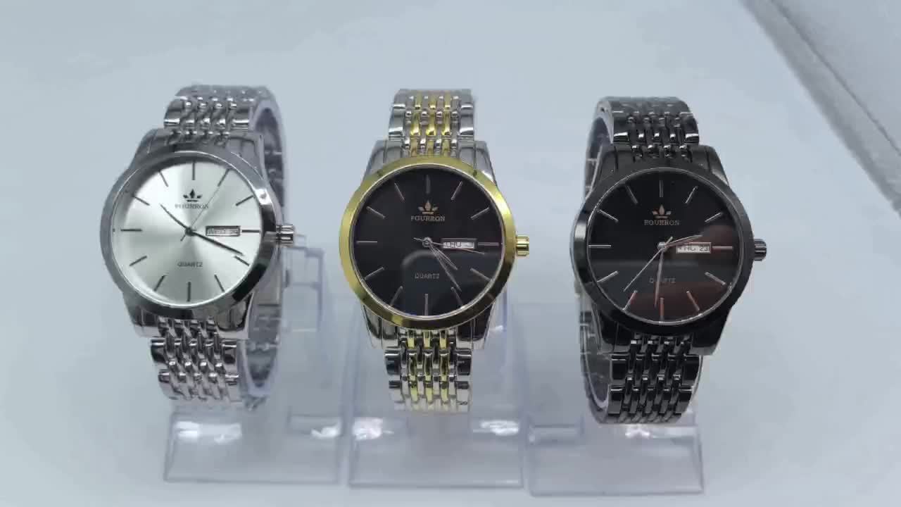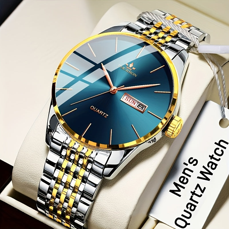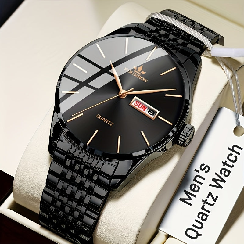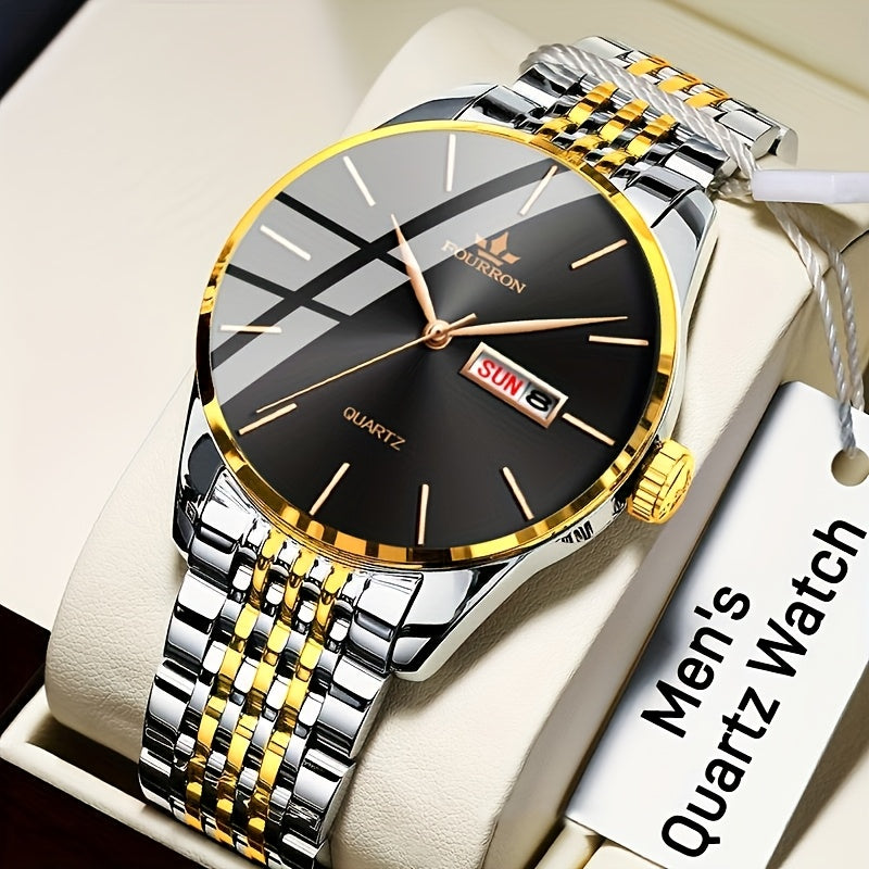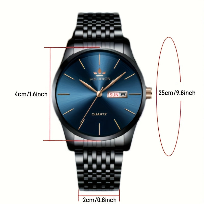 An Ideal Choice For A New FOURRON Brand Men's Luxury Stainless Steel Strap Simple Dial Quartz Watch With Date Calendar, Trendy Fashion Sports Casual Lifestyle Travel Multi-function Watch, Ideal For Friends' Birthdays, Holiday