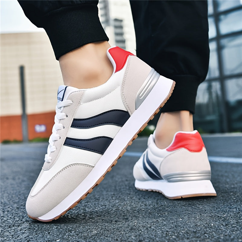 AOPLUS Men's Breathable Casual Sneakers - Lightweight Running Shoes with Cushioned Insole, Durable Rubber Sole, and Stylish Color Block Design for Sports and Casual Attire