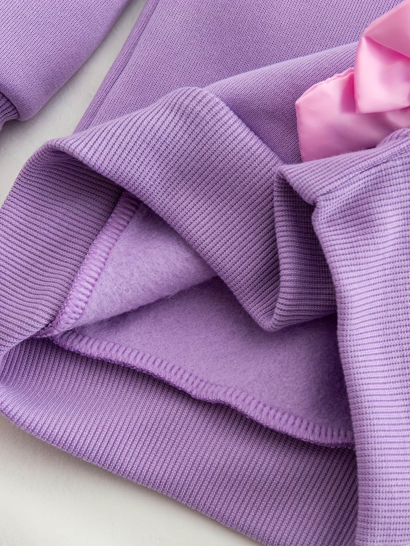 Autumn And Winter Girls' Fashion New Style Simple And Versatile Elegant Heart-Shaped Pattern Splicing Embroidery Bow Decoration Round Neck Long-Sleeved Top + Slim Stretch Leggings Casual Sports Two-Piece Set, Suitable for Out