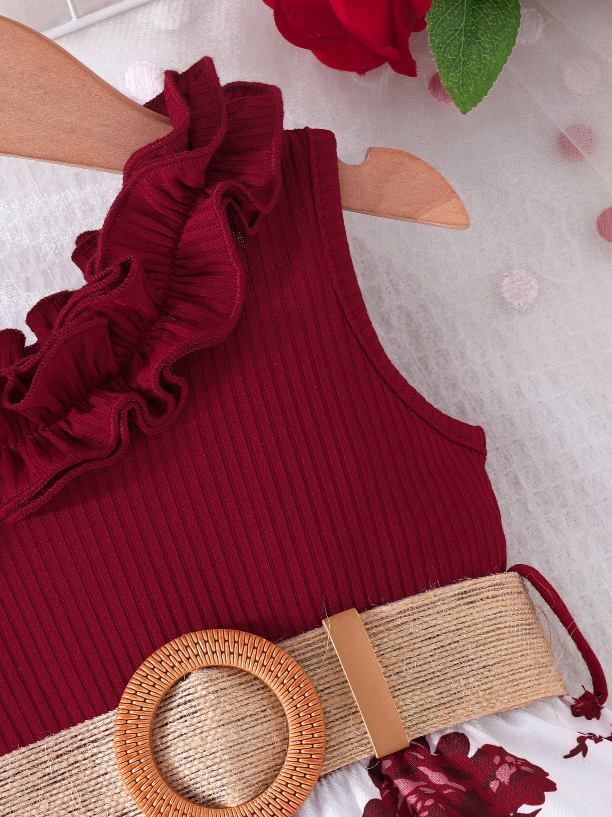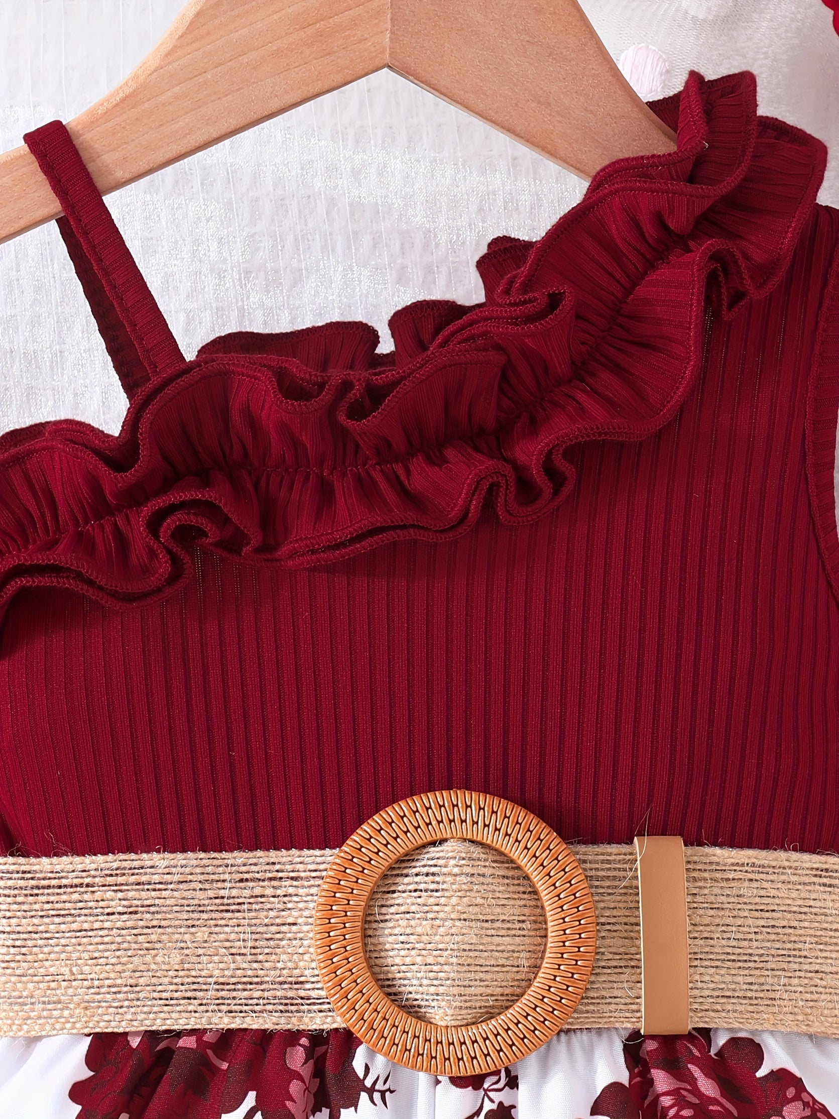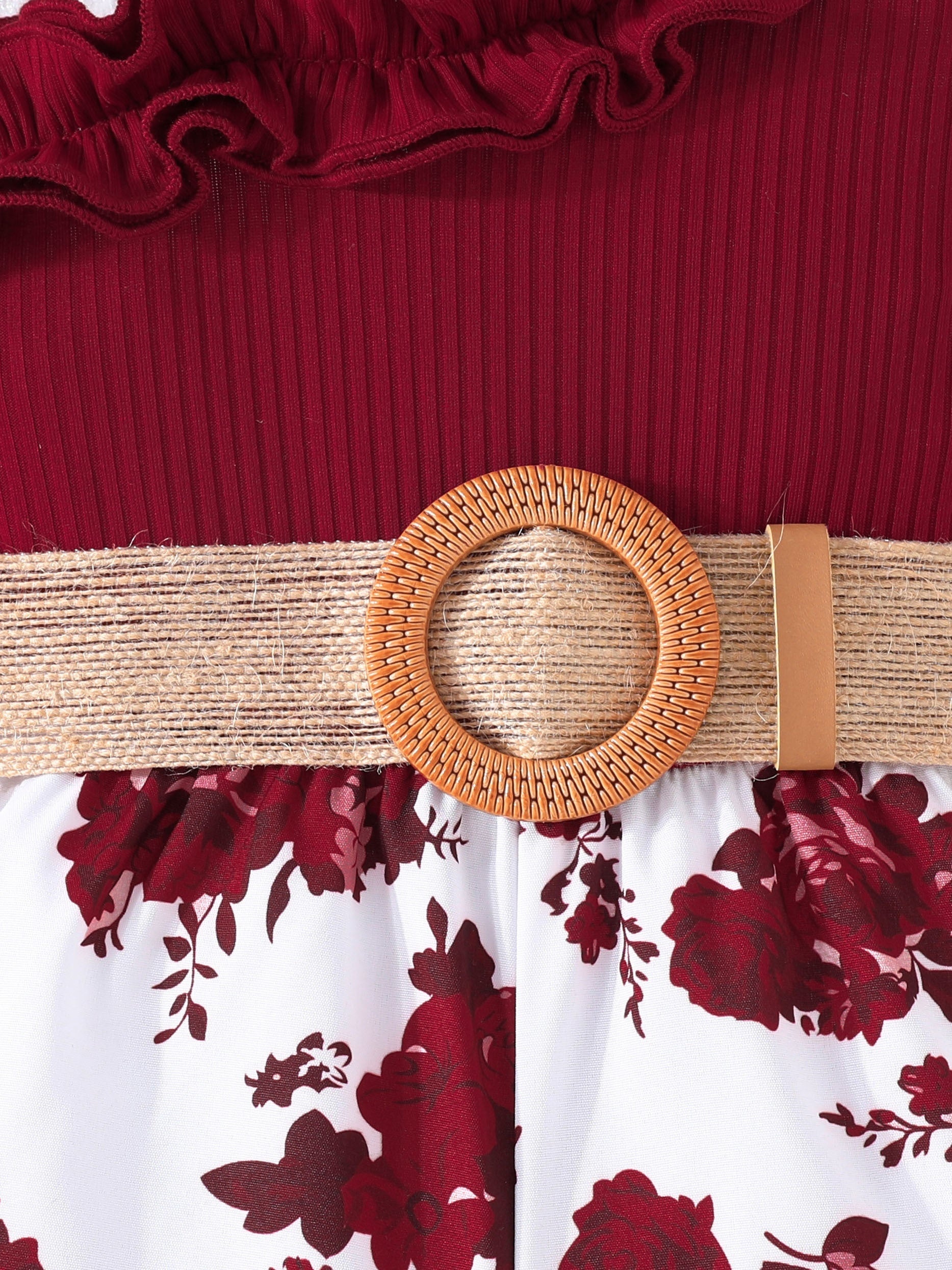 Baby's Vacation Style Flower Pattern Splicing One-Shoulder Romper With Belt, Toddler & Infant Girl's Bodysuit For Summer Daily & Outdoor Wear