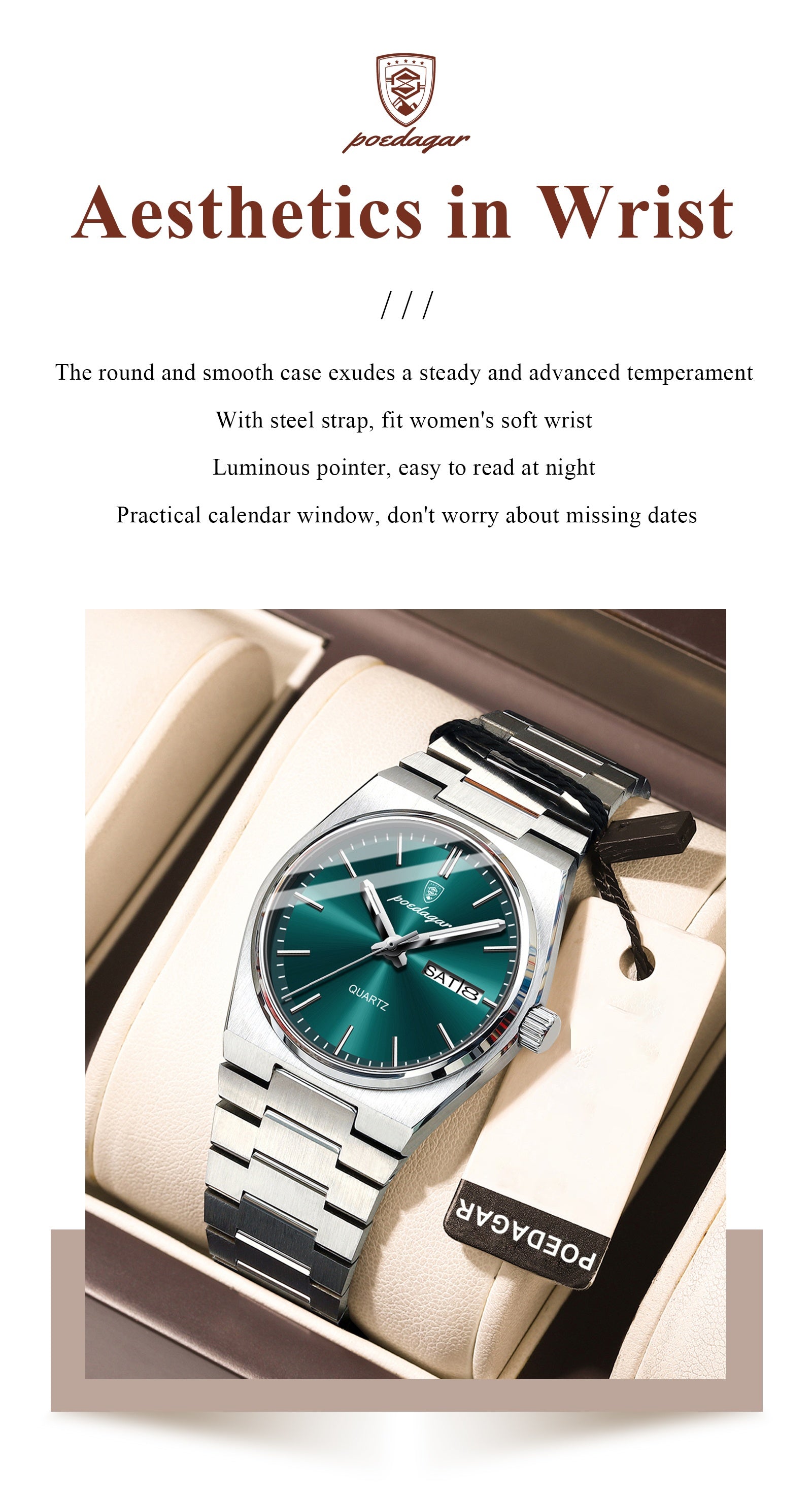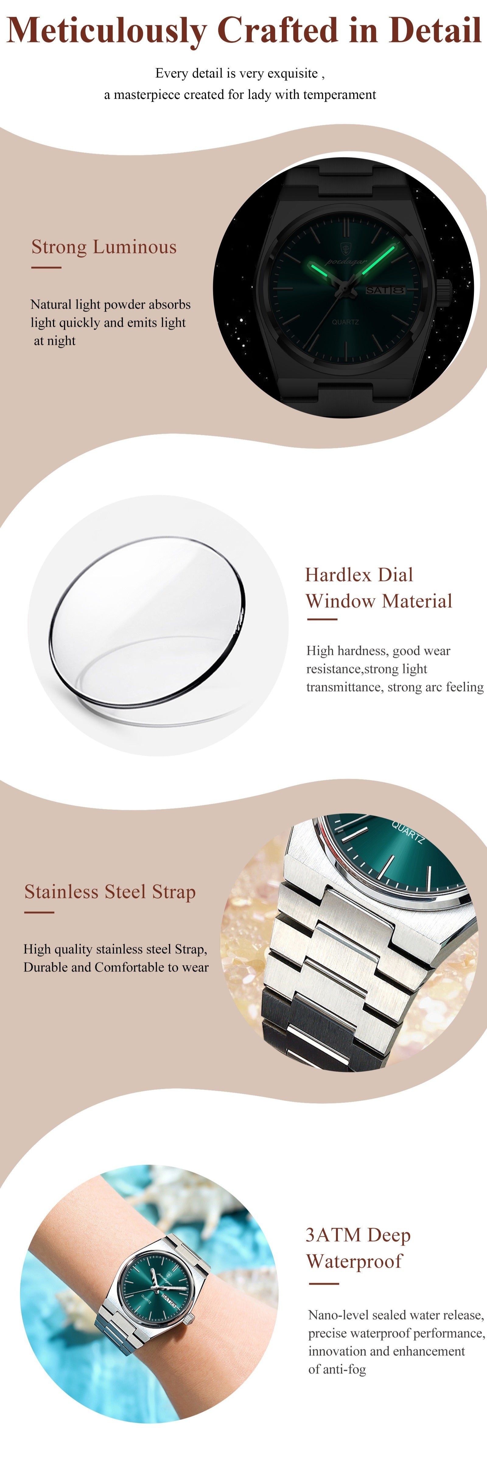 Berda Tomato Hot Selling Trendy Youth Elegant Korean Style Ladies Watch with Night Light Calendar Stainless Steel Quartz Watch