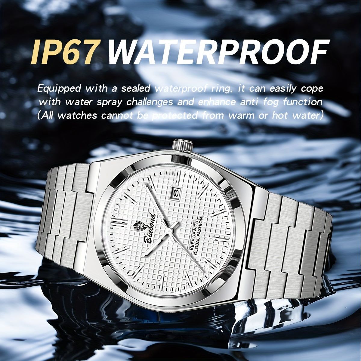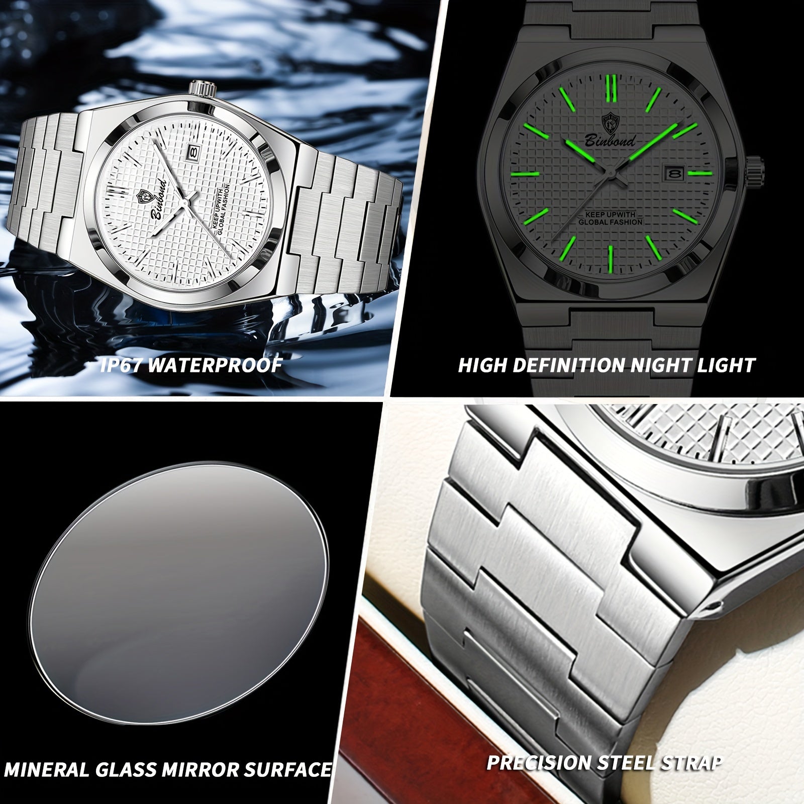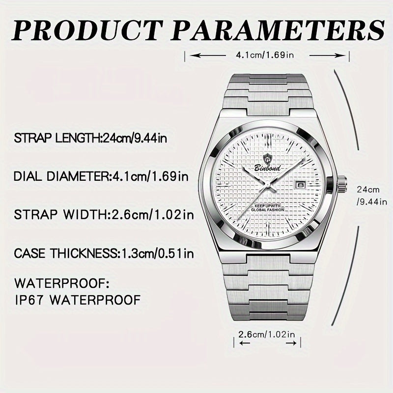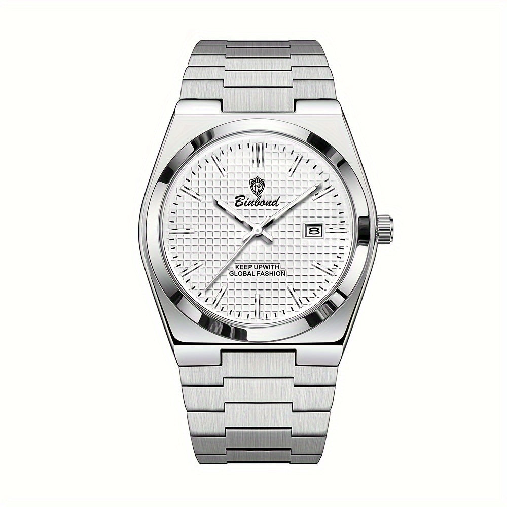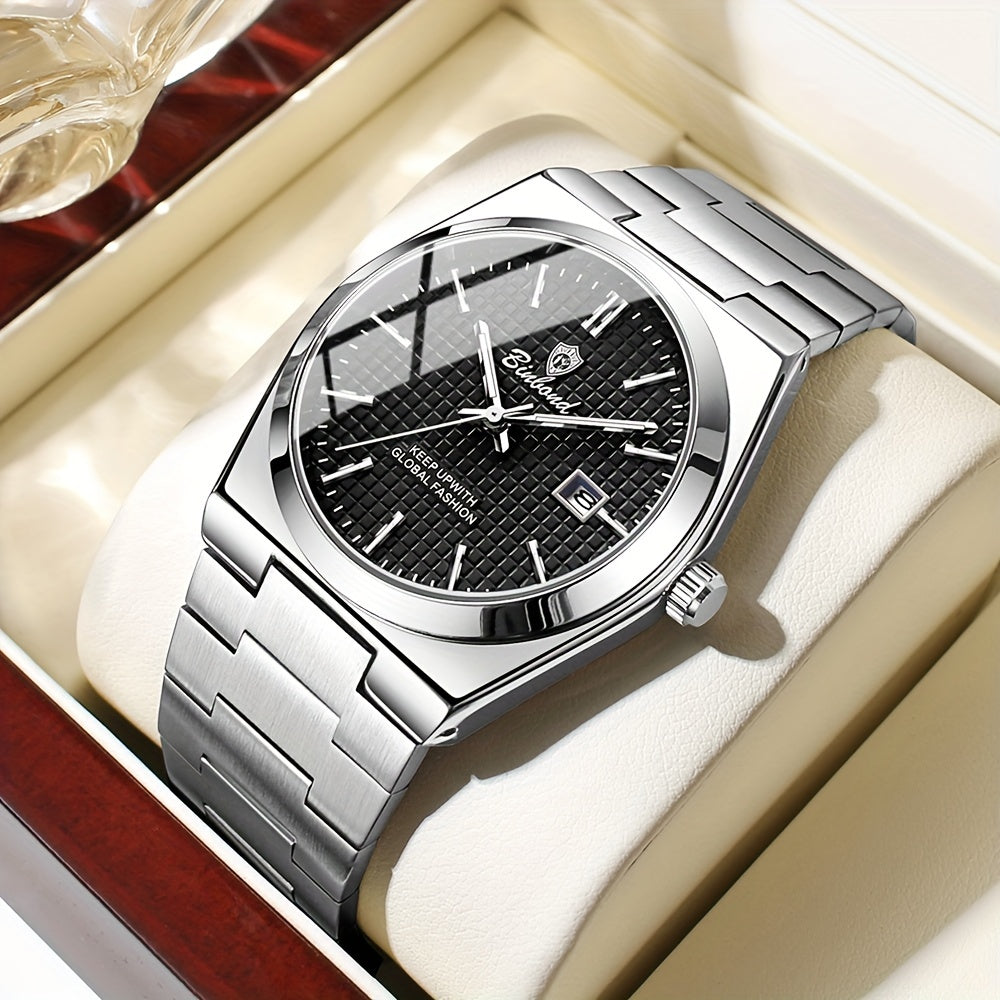 BINBOND Men's Classic Waterproof Quartz Watch with Stainless Steel Band, Luminous Dial & Date Feature - Perfect for Business or Casual Wear, Cool And Handsome Style