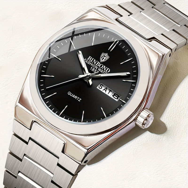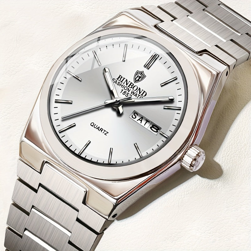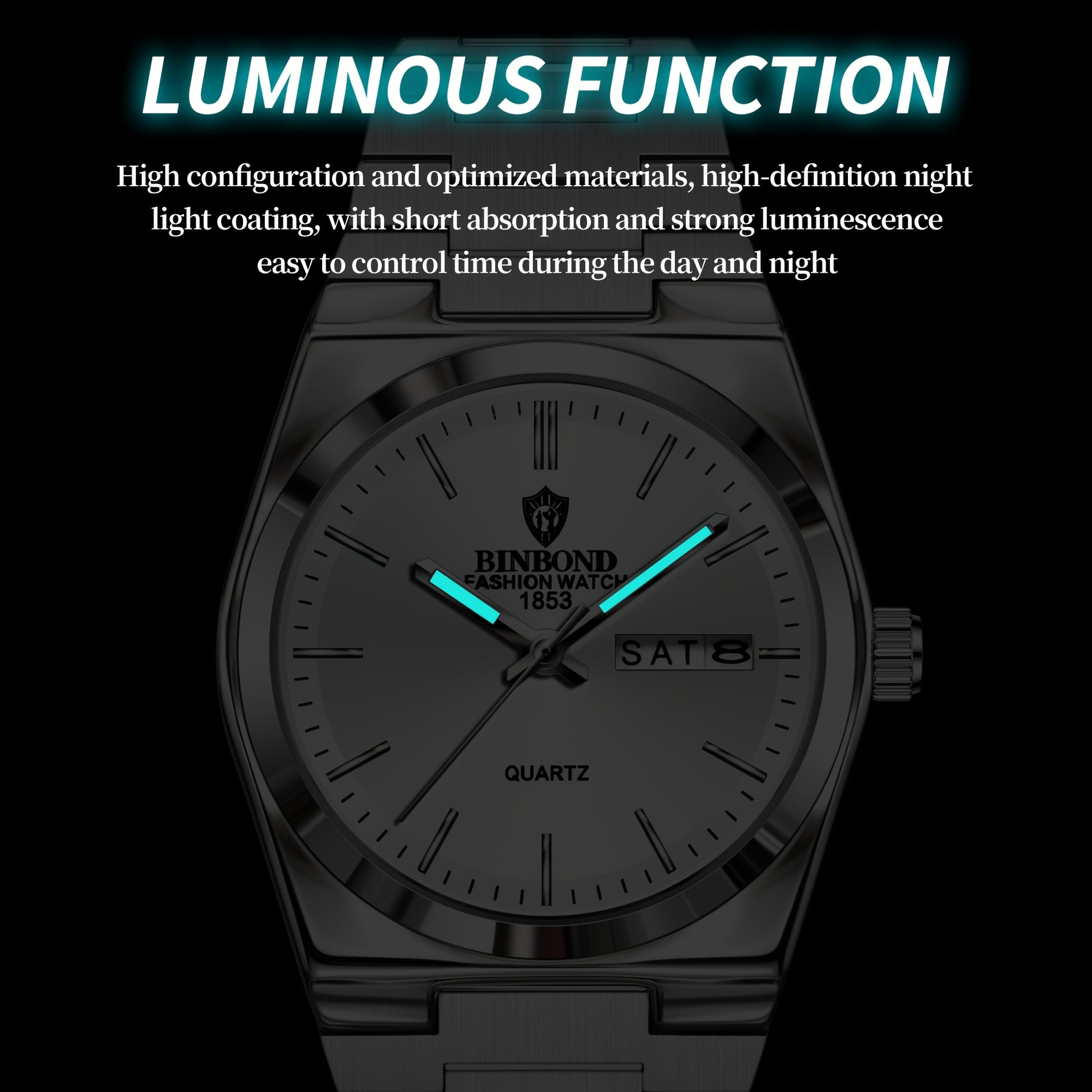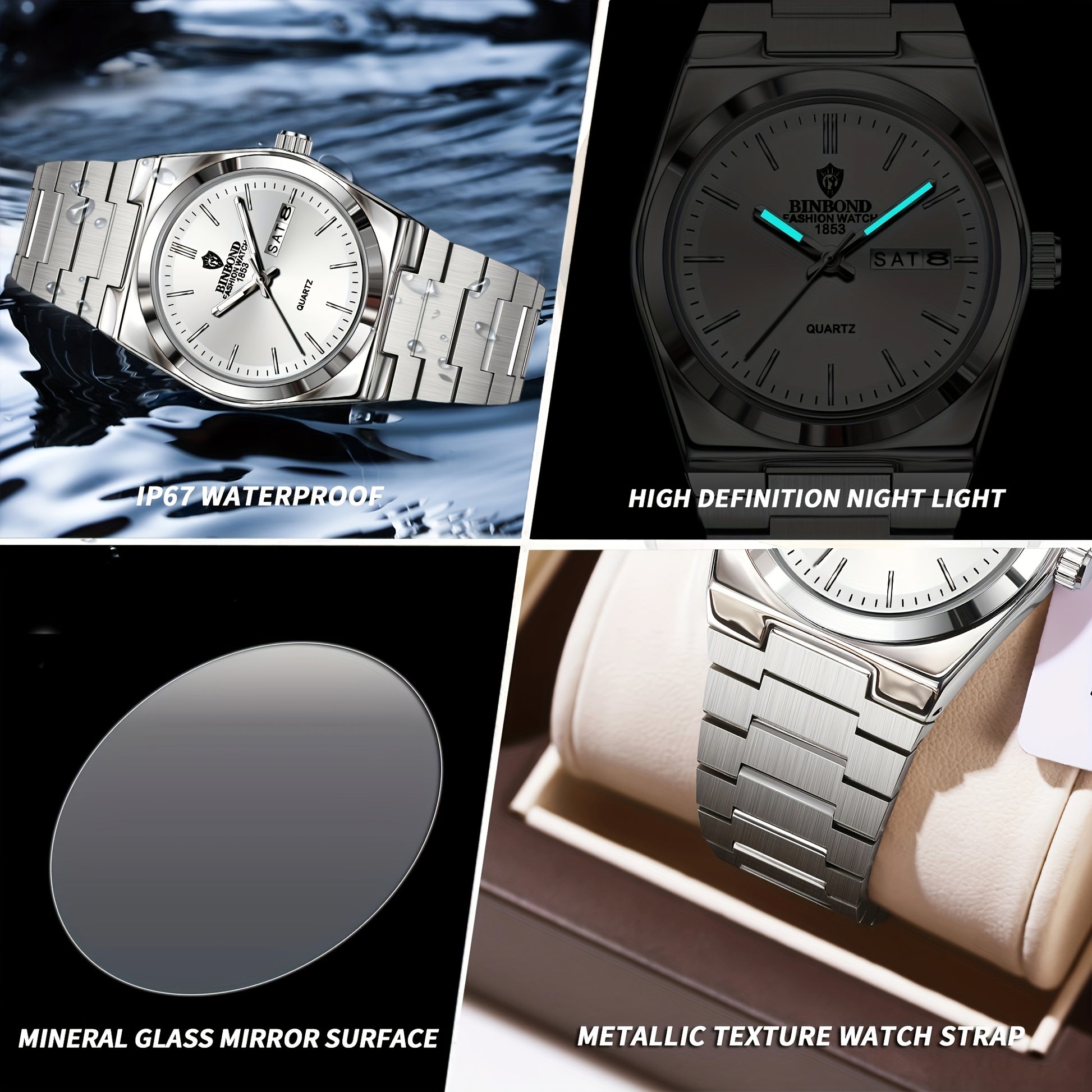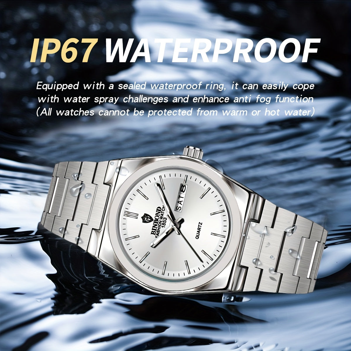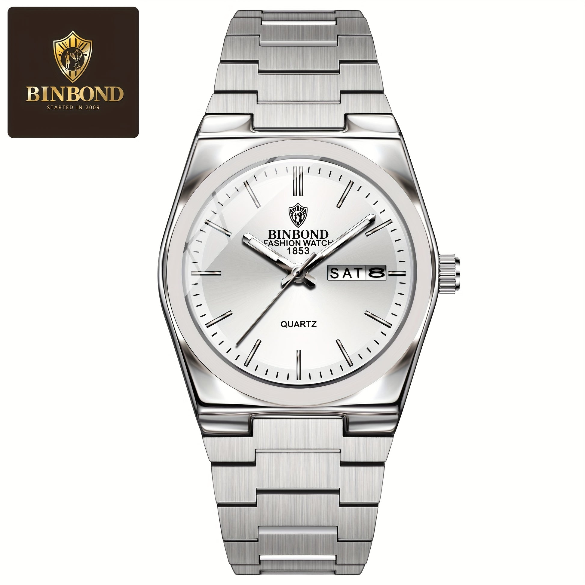 BINBOND Women'S Stainless Steel Quartz Watch - IP67, Luminous Chronograph, Calendar, Durable Zinc Alloy Case, Elegant Design for Casual Attire, Casual Watch | Elegant Watch Design | Quartz Movemen