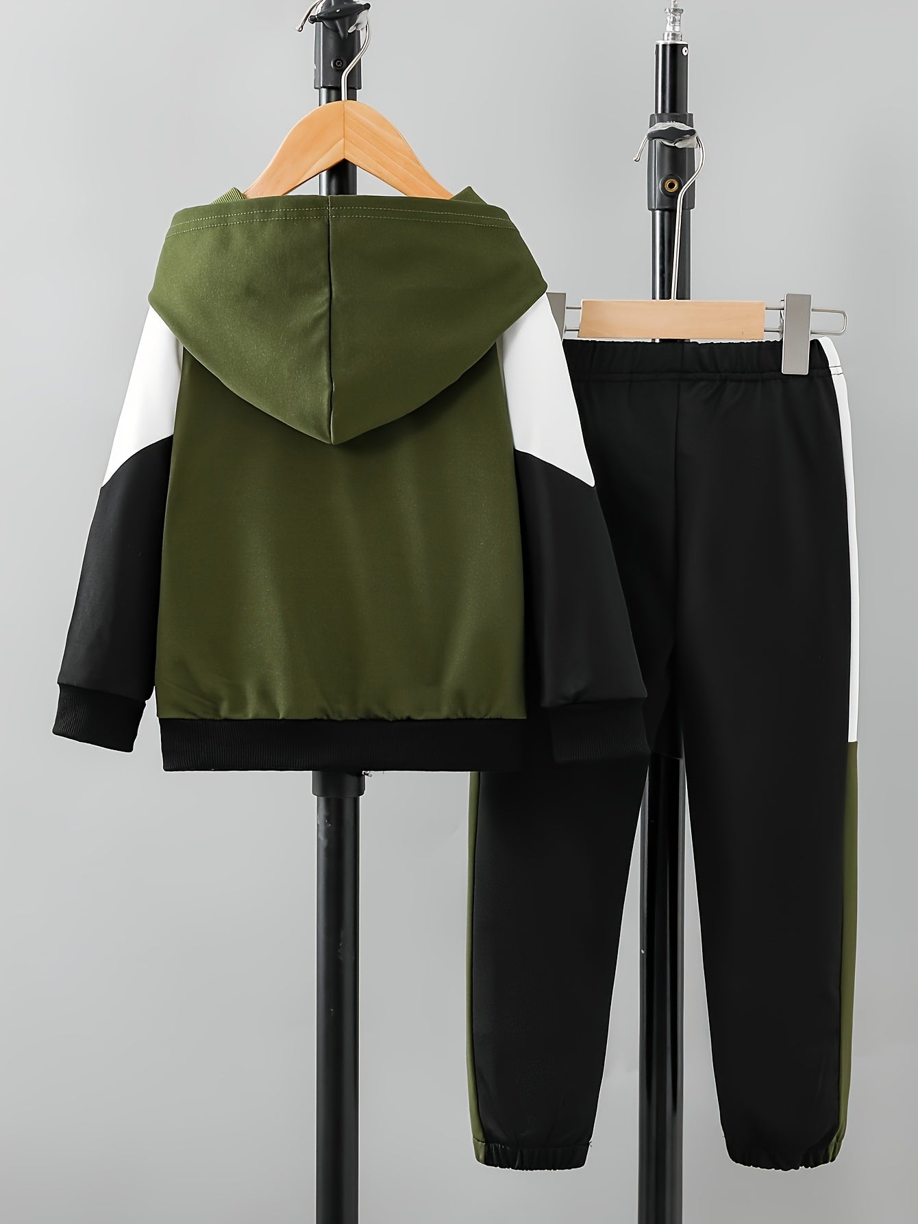 Boys' Autumn American Retro Casual Multi-Color Patchwork Hooded Long Sleeve Jacket & Pants Two-Piece Set