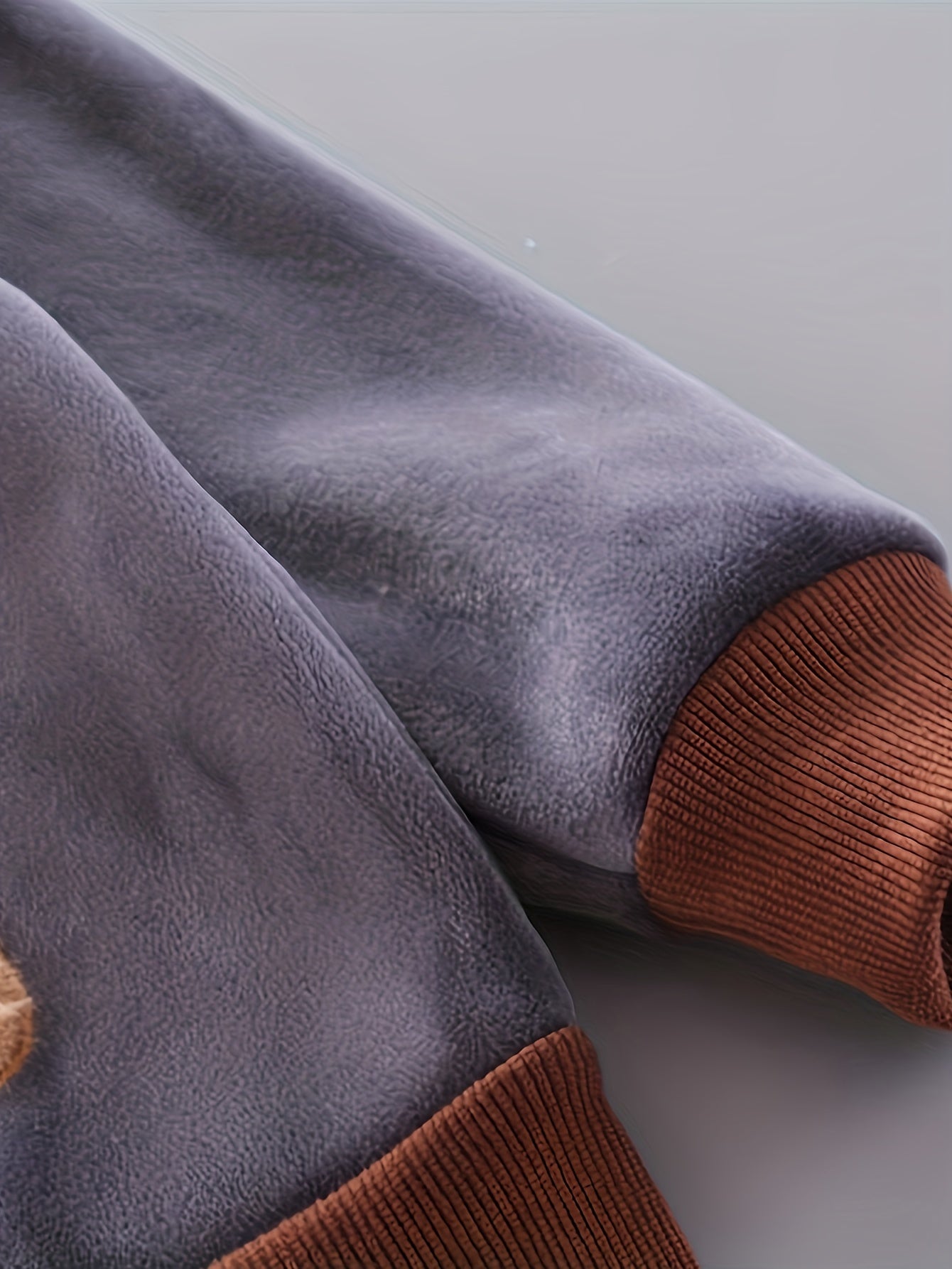 Boys' Autumn and Winter Fleece-Lined Warm Long Sleeve Set with Bear Face, Stylish Casual Three-Piece Outfit, Perfect for Outdoor Activities, Outdoor Playwear, |playful Bear Design|zippered Jacket, For Outdoor