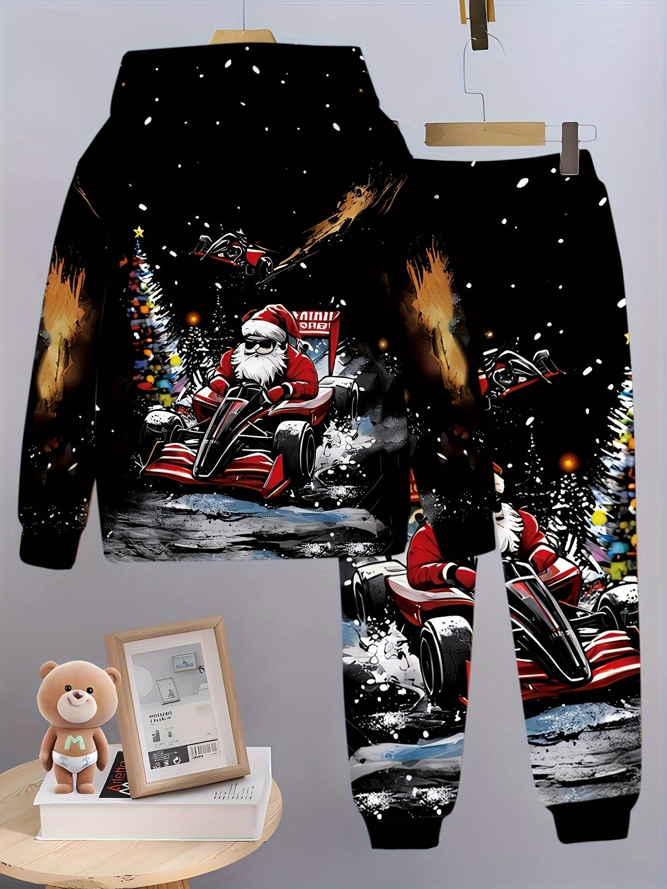 Boys' Creative 3D Digital Print Youngsters' Set, Loose Fit Casual Cap, Sweatshirt, and Pants for Middle to Large Sizes, Perfect for Spring/Fall, with Pockets and Geometric Patterns, Casual Wear|Playful Design|Pocketed Pants,
