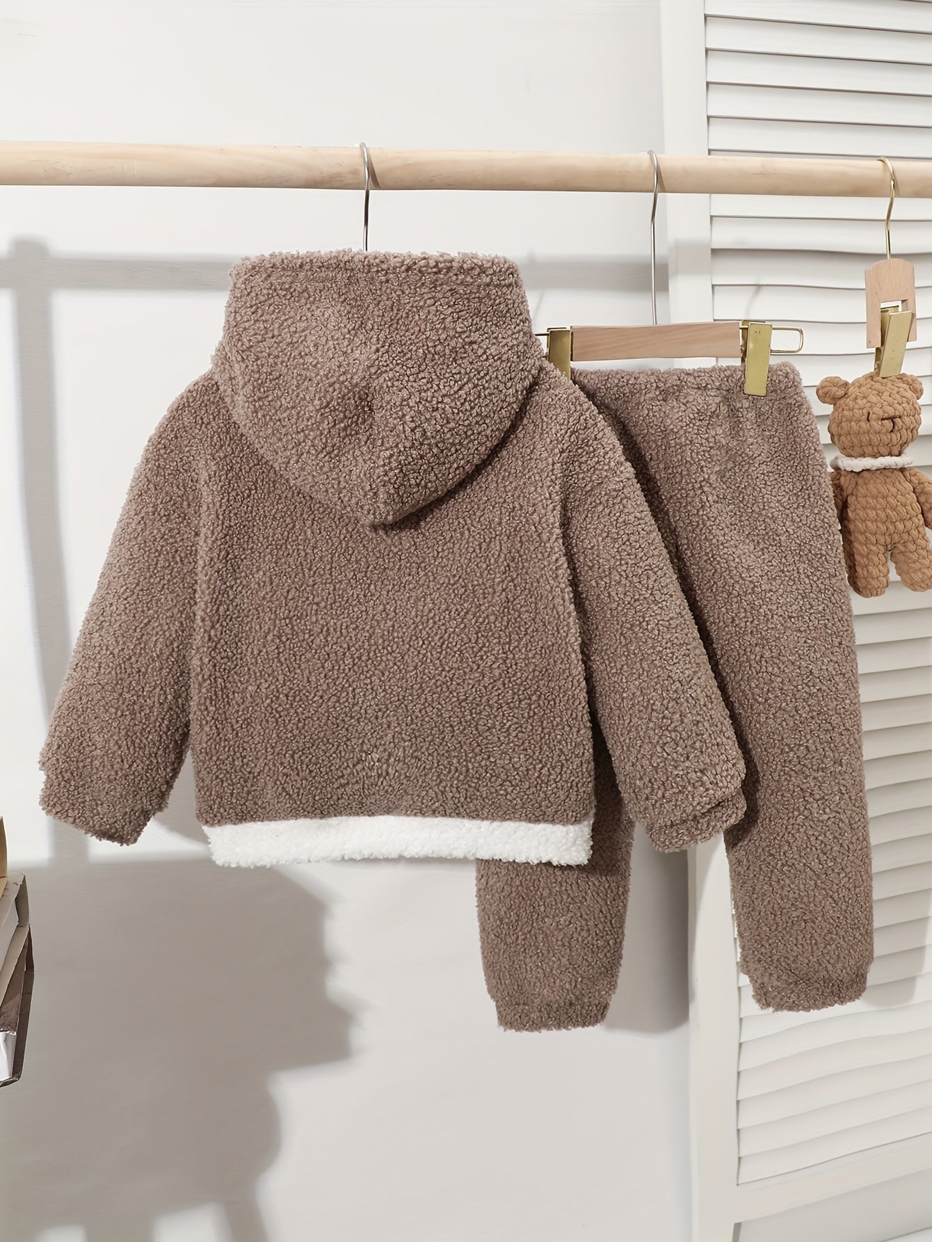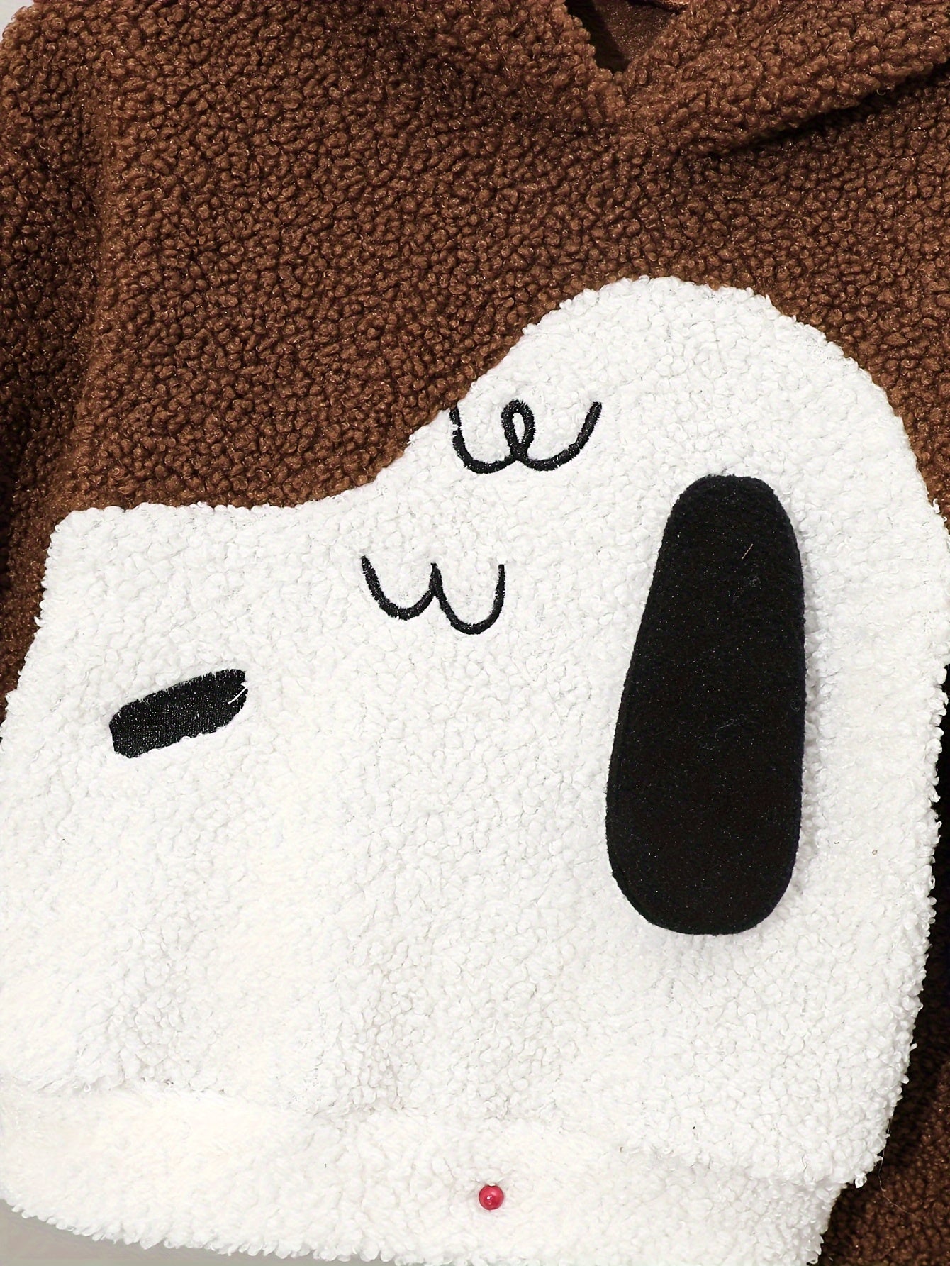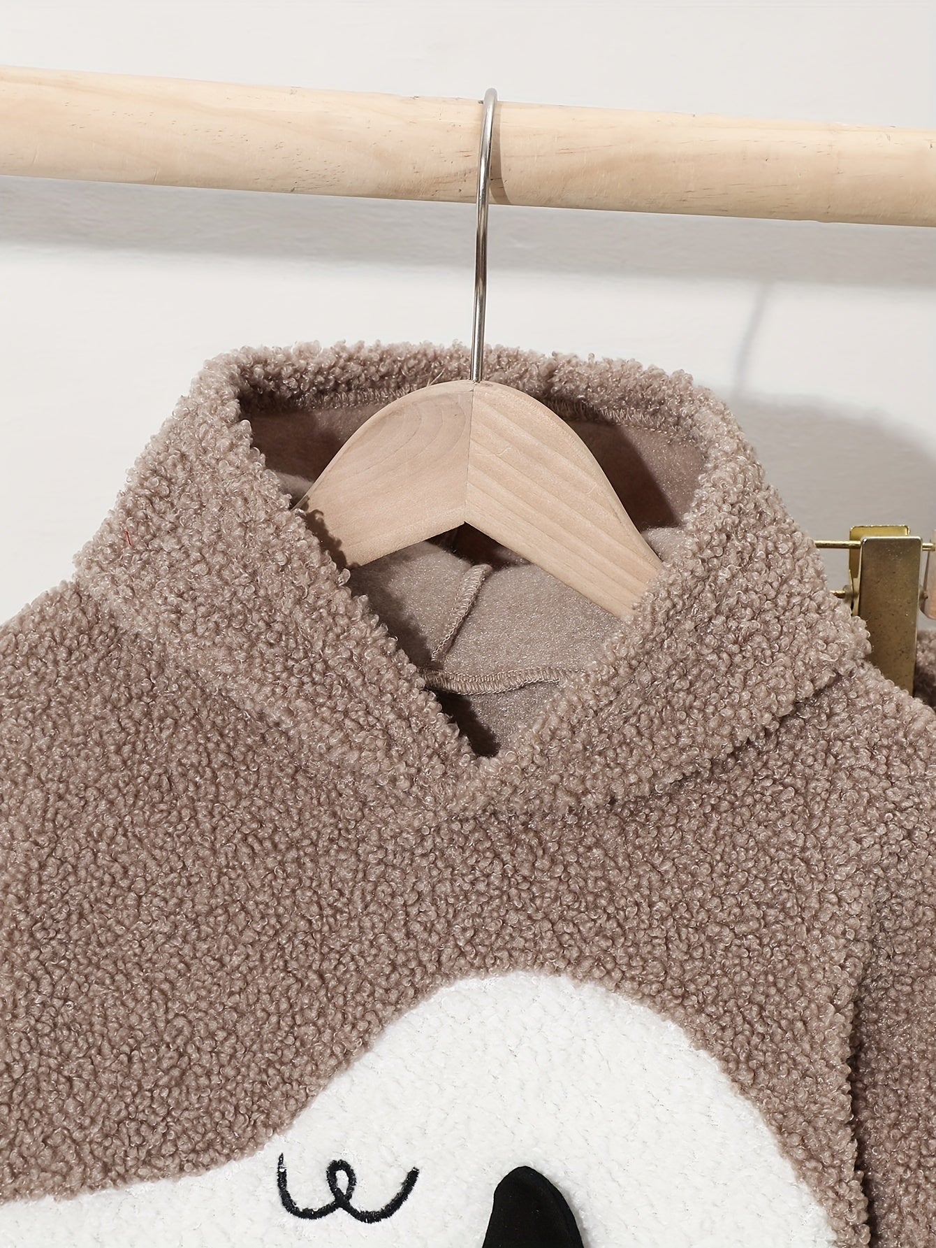 Boys' Fashion Plus Velvet Thickened Double-sided Velvet Warm Embroidered Cute Suit, Perfect for Outdoor