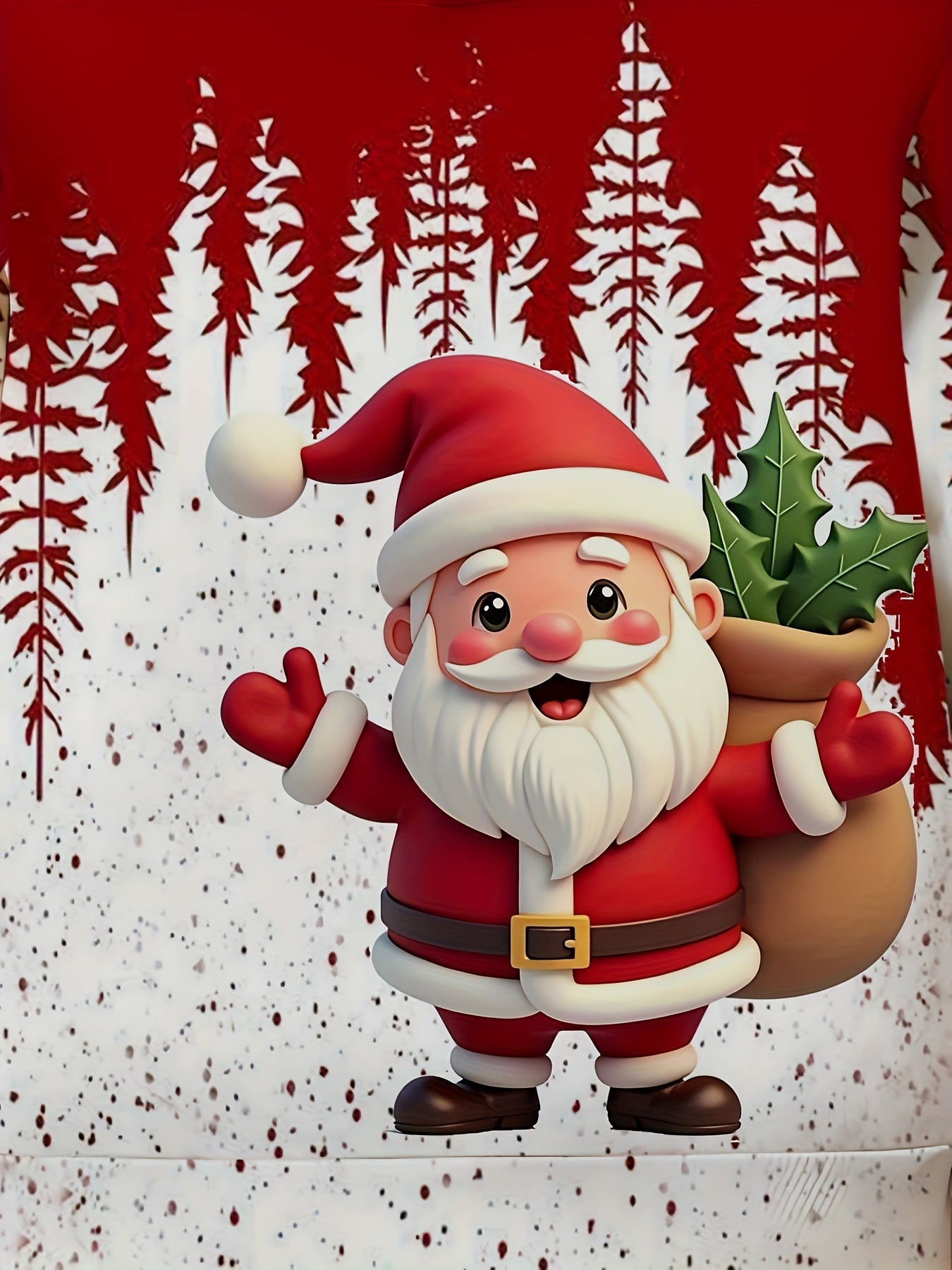 Boys' & Girls' 3D Hooded Sweatshirt & Pants Set - Santa Claus & Snowman Print, Loose Fit Long Sleeve Pullover with Pockets, Red & Winter Outfit for 4-14 Years, for Outdoor, Christmas, Halloween, Thanksgiving, New Year's, Wint