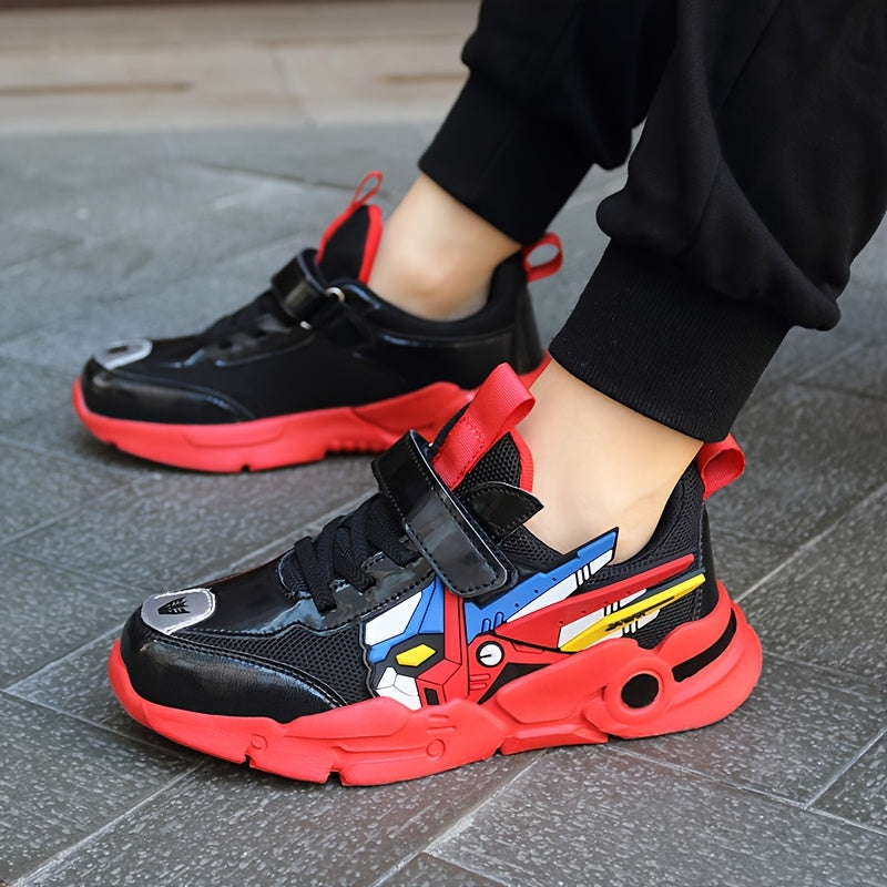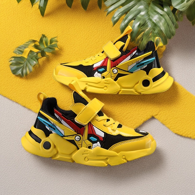 Boys' Lightweight Breathable Mesh Sneakers - Vibrant Yellow Cartoon Design, Hook-and-loop Fastener Closure, Perfect for Spring & Summer Casual Wear, Playful Outdoor Shoes | Cartoon Pattern Shoes | EVA Cushioned Sole