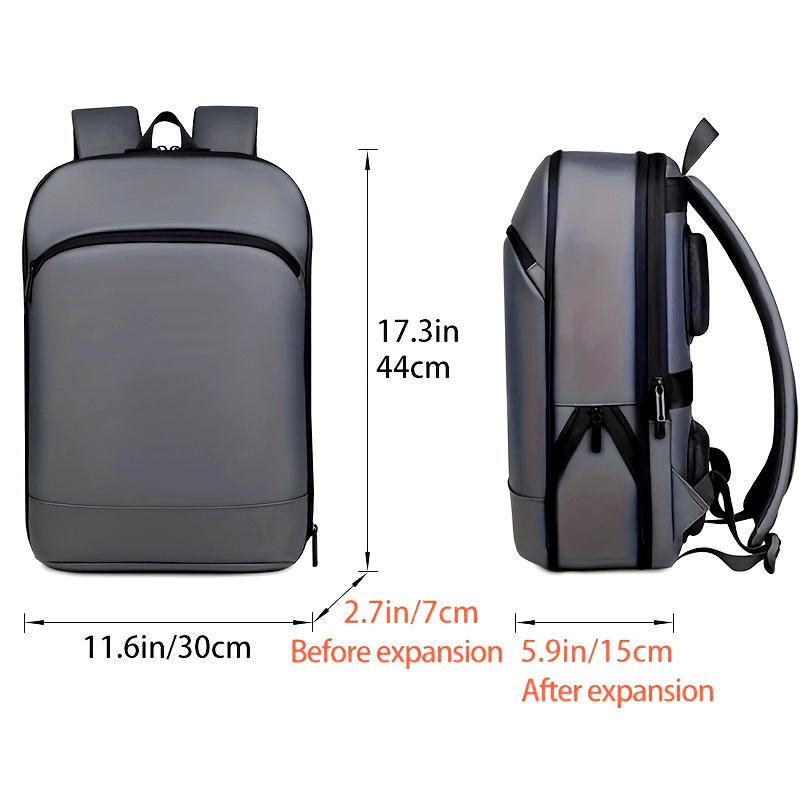 Business Style Expandable Backpack, Faux Leather, Durable Smooth Zipper, Multi-Pad Laptop Bag, Casual Daypack, Suitable for Daily Commute, Outdoor Business Travel, Ideal Gift for Holidays, Black, Dark Grey, Light Grey Options