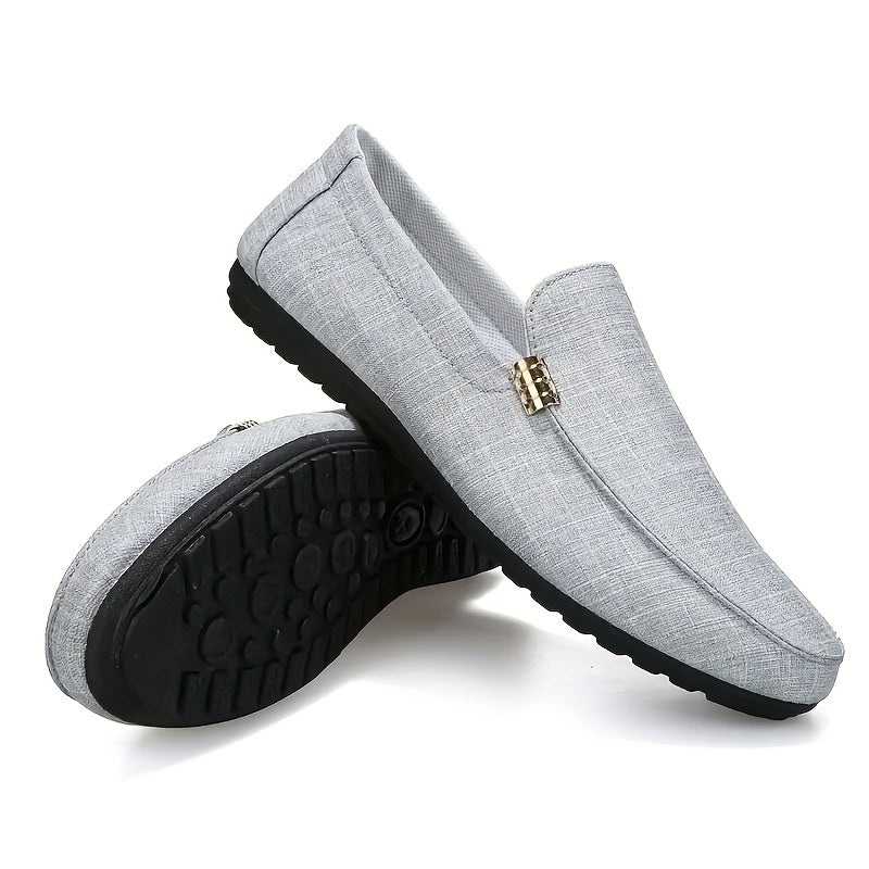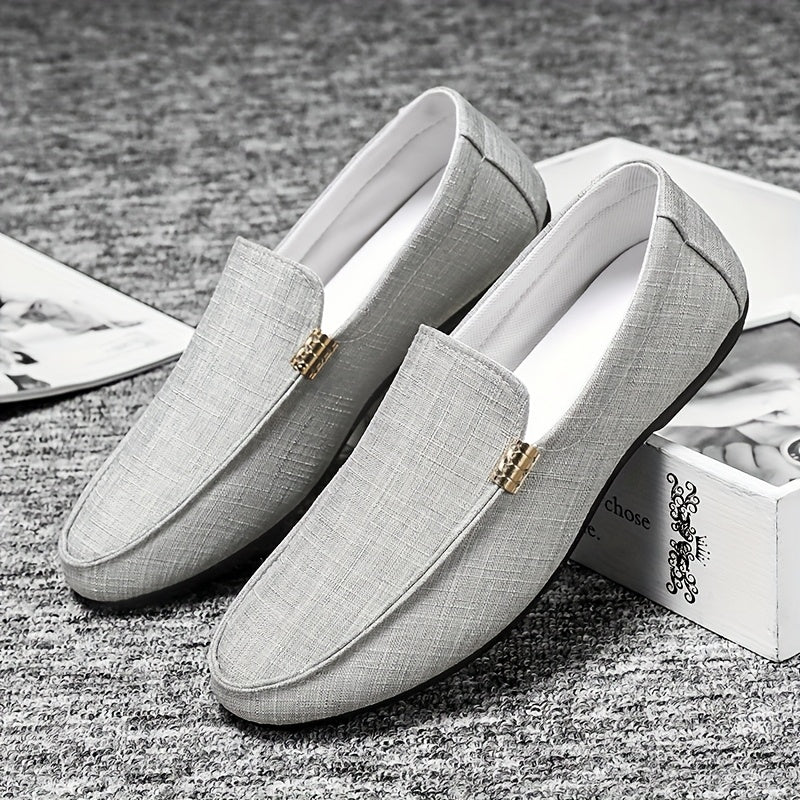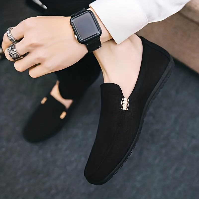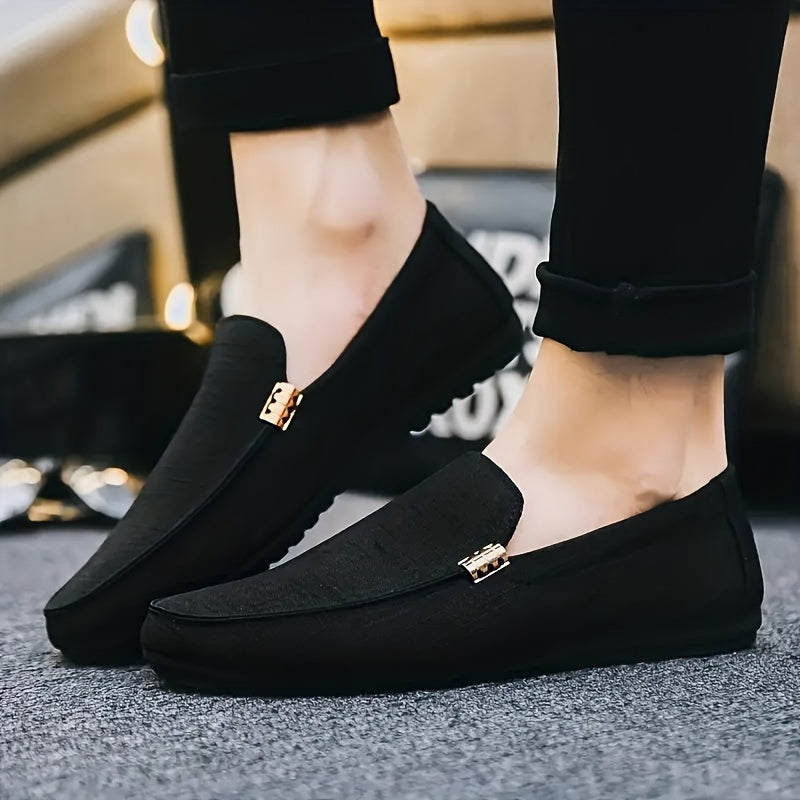 Canvas Loafers - Slip-On Shoe Style with Golden Emblem, Comfortable Non-Slip Sole, Suitable for Driving & Daily Office Use