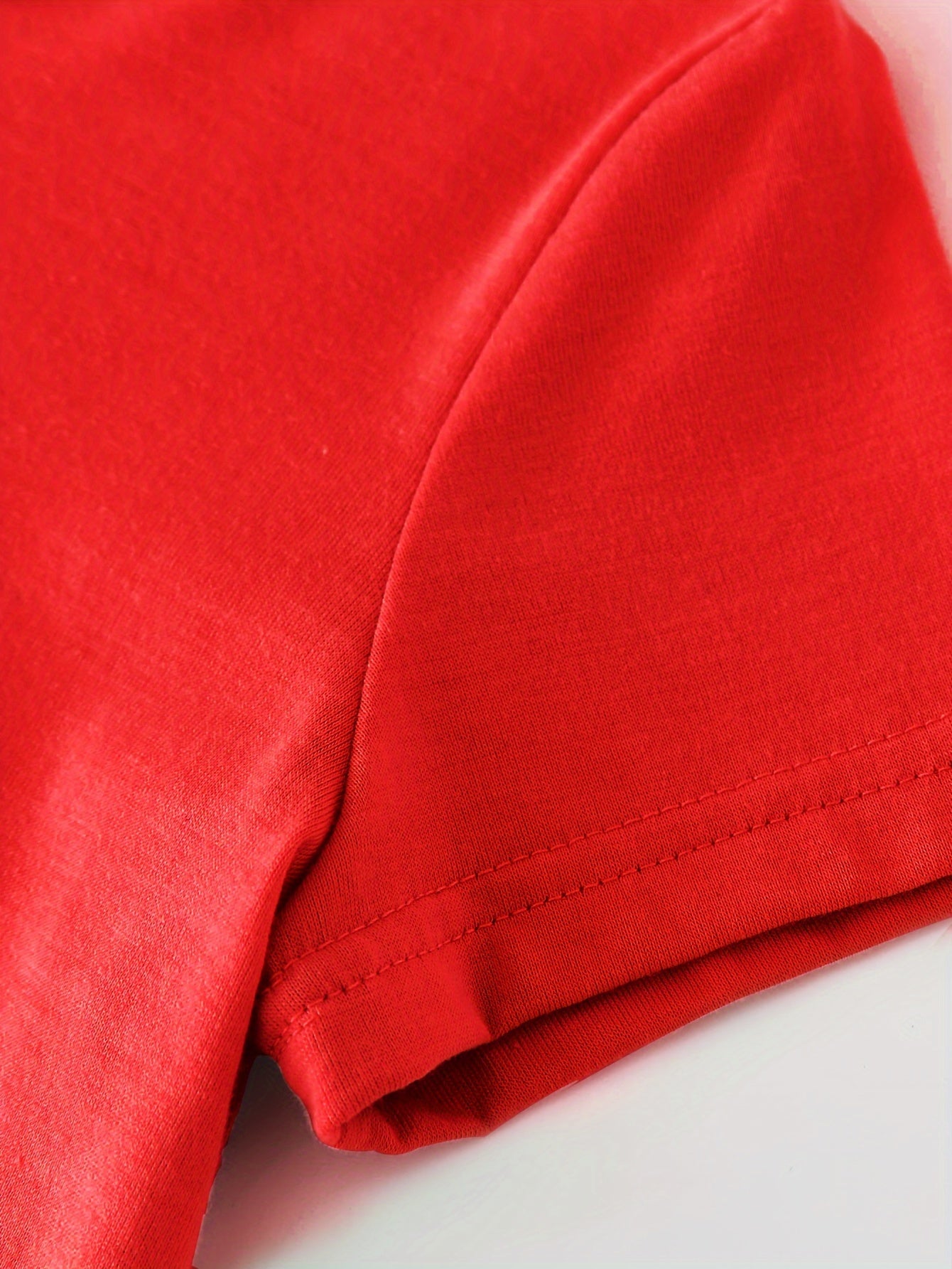 CHICFULL Girls' Personalized Name/Text Christmas Rudolph & Polka Bow T-Shirt - Red Smiling Reindeer Print with Golden Lettering, Soft Round Neck Casual Knit Top for Spring/Summer & Christmas, Machine Washable - Girls' Birthda